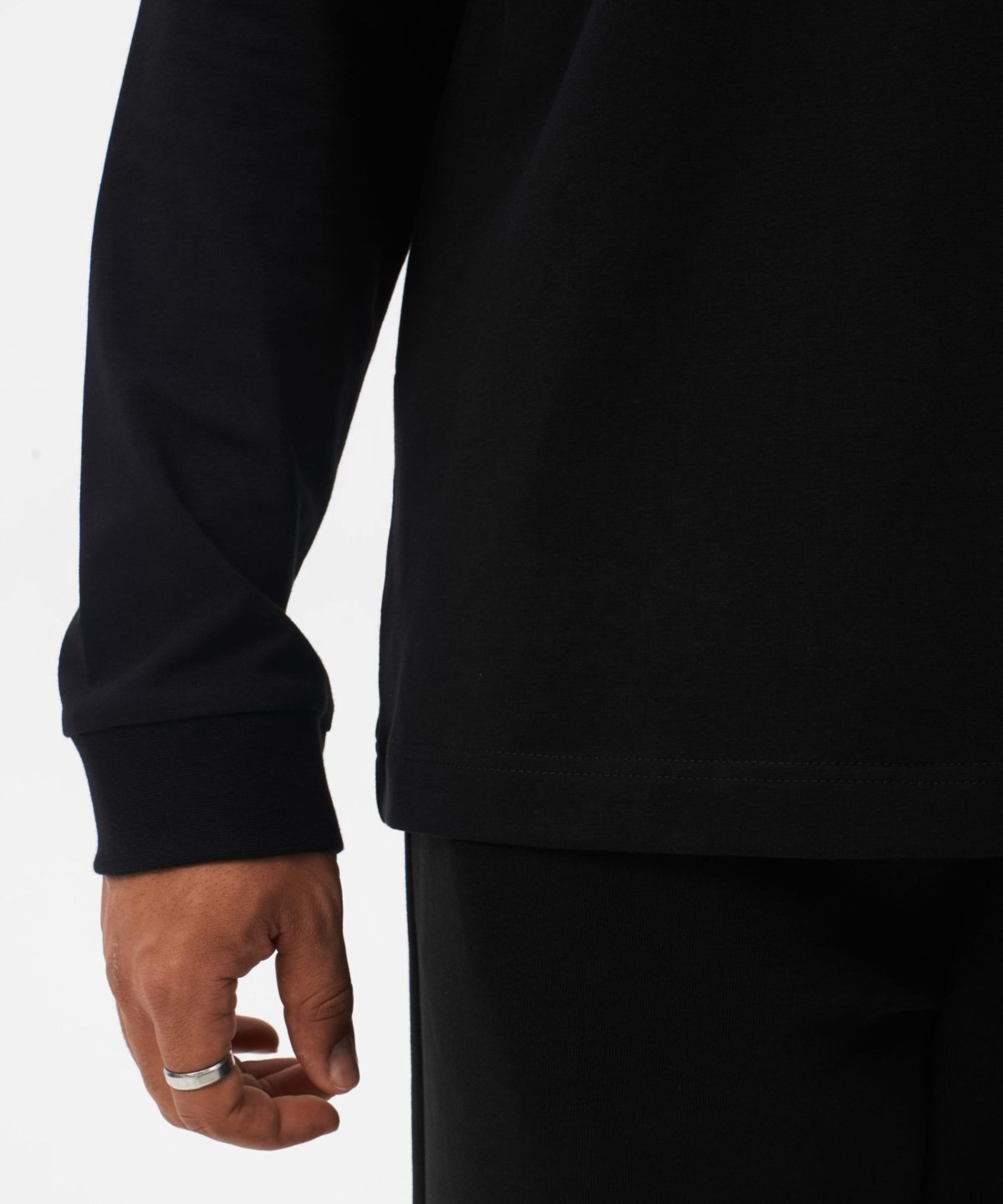 Лонгслив мужской свободного силуэта. В составе 92% хлопка и 8% эластана, что обеспечивает отличную посадку и долговечность изделия. Прямой крой, лаконичная лого-вышивка на спине, представлен в черном и белом цветах. Лонгслив прекрасно сочетается как с классическими повседневными, так и со спортивными образами