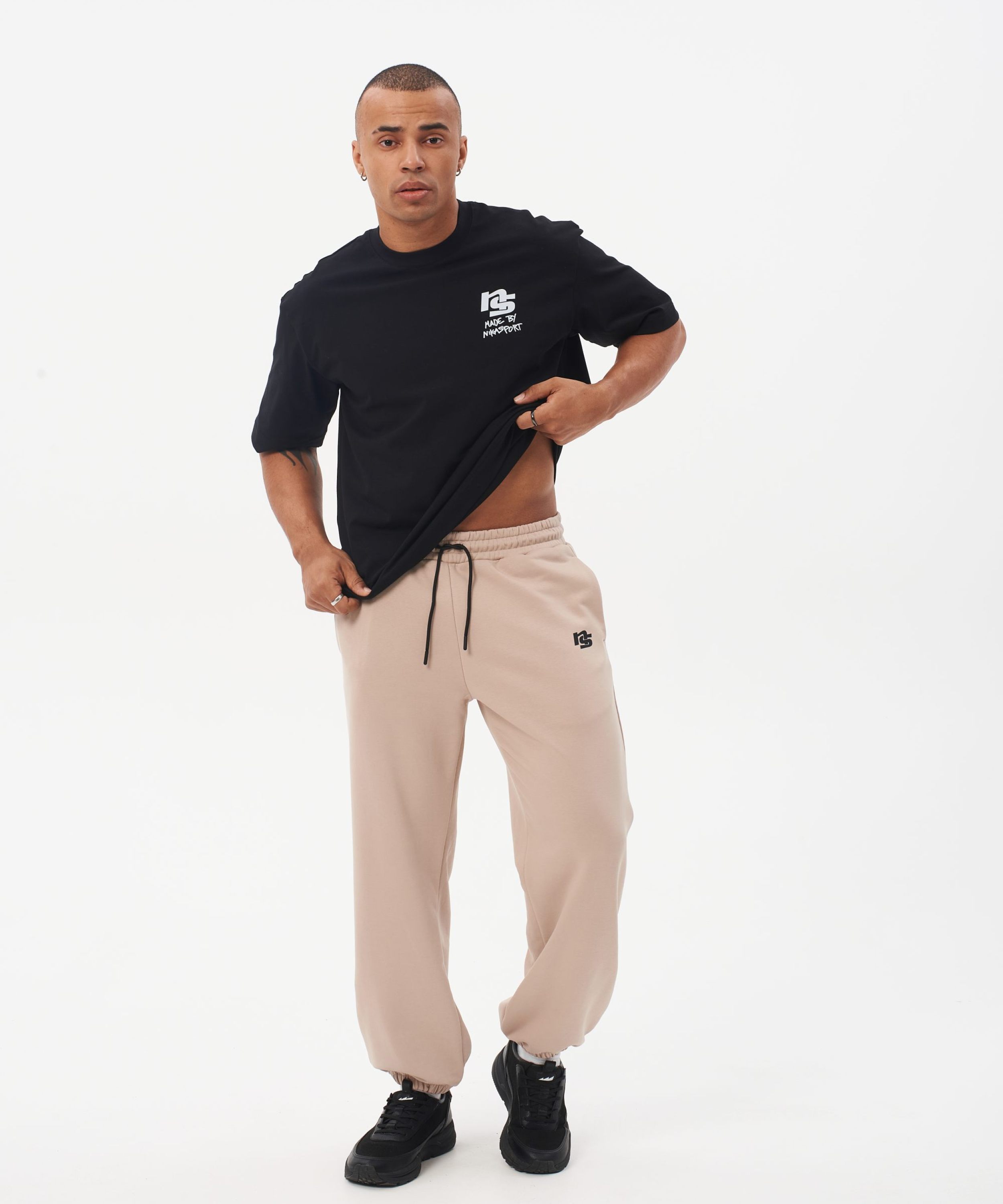 Мужские брюки-джоггеры свободного силуэта. Выполнены из материала, в составе которого 90% хлопка и 10% полиэстера, что обеспечивает отличную посадку и долговечность изделия. Брюки имеют два боковых кармана для хранения личных вещей и лаконичный фирменный лого-принт на левой ноге. Эластичный шнур в поясе помогает регулировать посадку. Представлены в универсальных цветах - черный и капучино. Модель создана для повседневных образов в спортивном стиле.