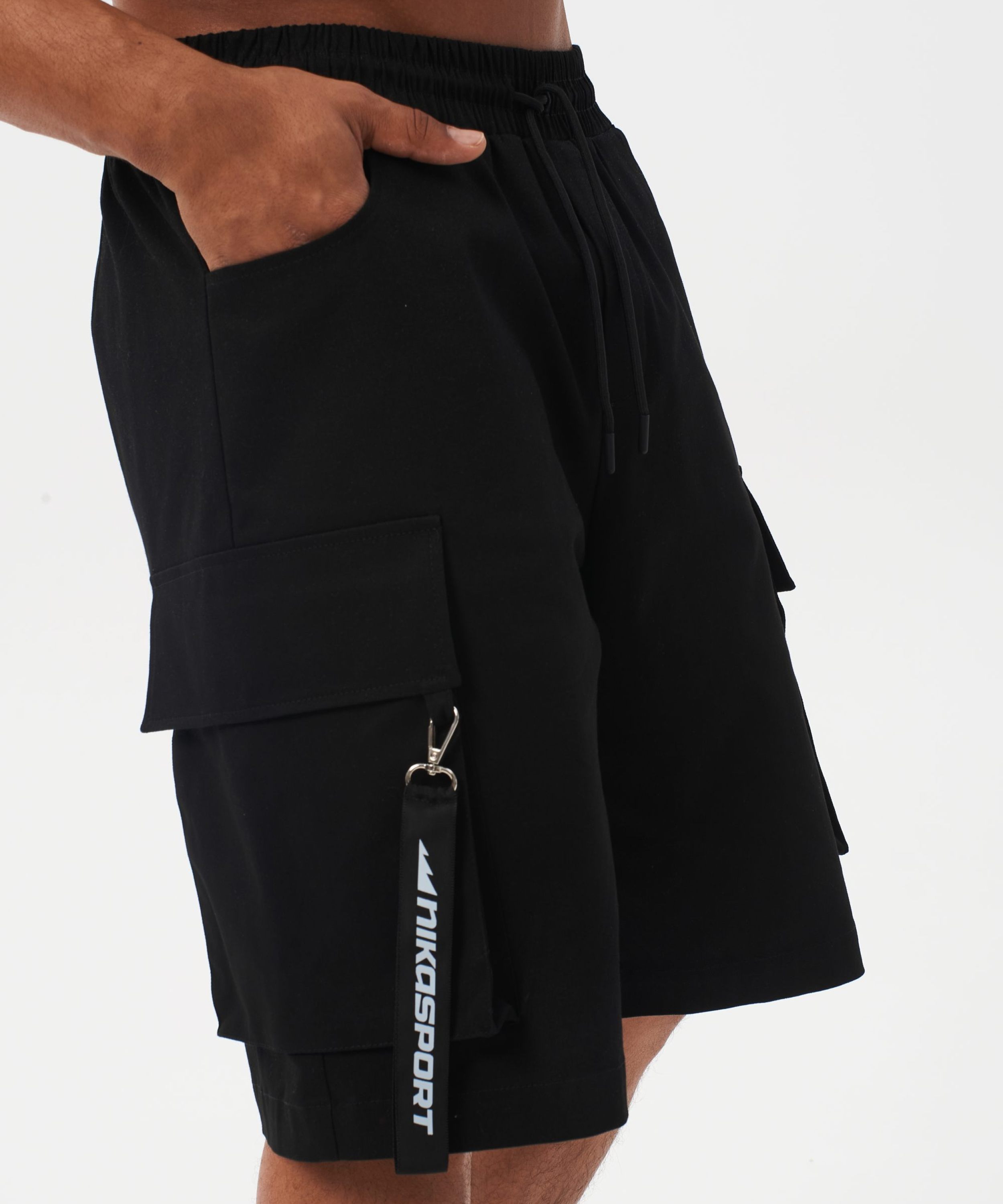 Оверсайз карго-шорты мужские трендового силуэта выполнены из материала "твил", в составе которого 97% хлопка и 3% эластана. Посадка шорт - средняя. Шорты имеют свободный крой, два набедренных кармана и два больших боковых кармана-портфель с клапанами. На правом кармане расположена петля для карабина. Эластичный шнур в поясе помогает регулировать посадку. Шорты выполнены в двух цветах: светло-бежевый и черный. Легкий и приятный к телу материал шорт, трендовый силуэт и нейтральные цвета позволяют создавать классные образы в спортивном стиле на весну/лето.
