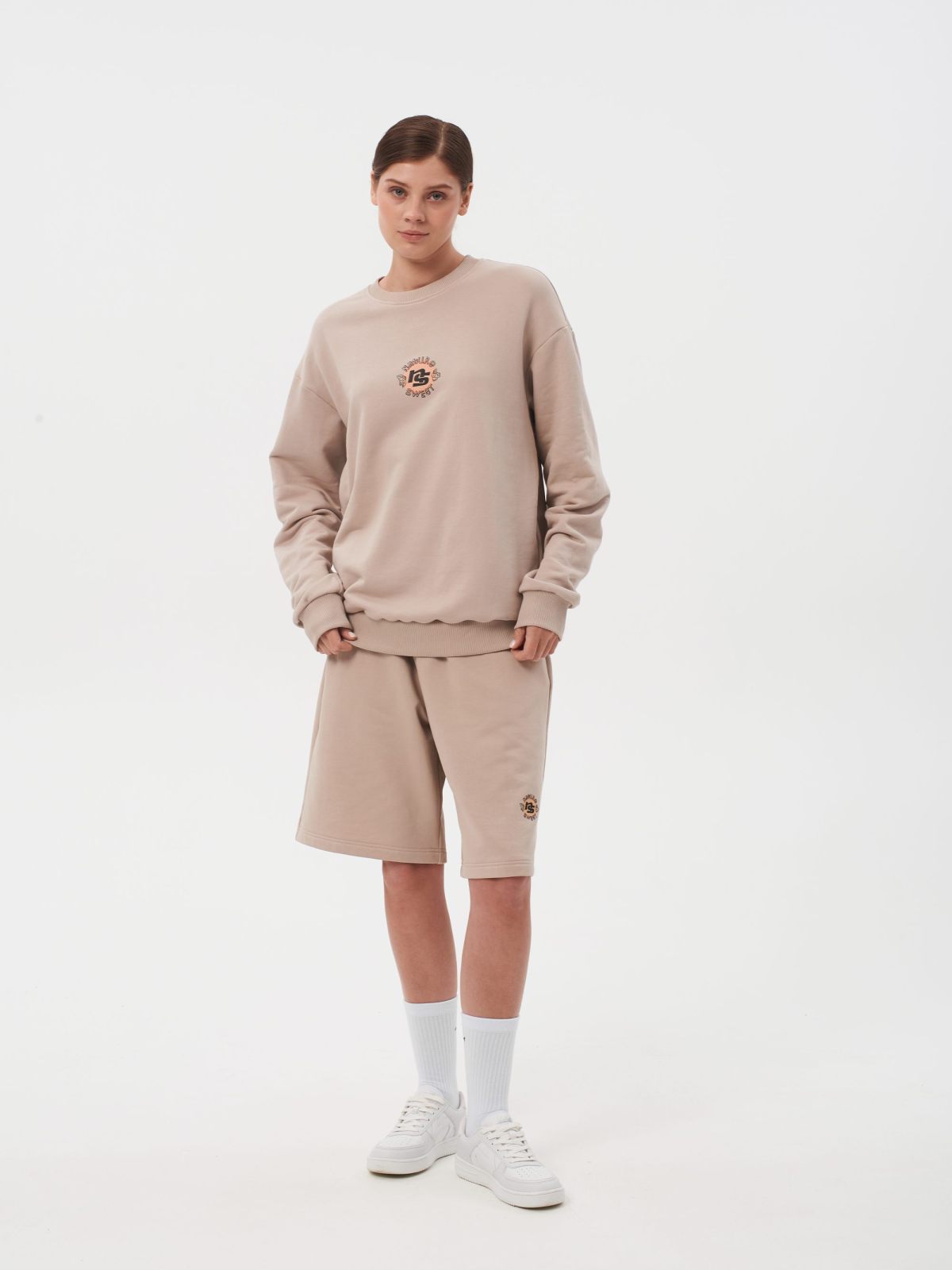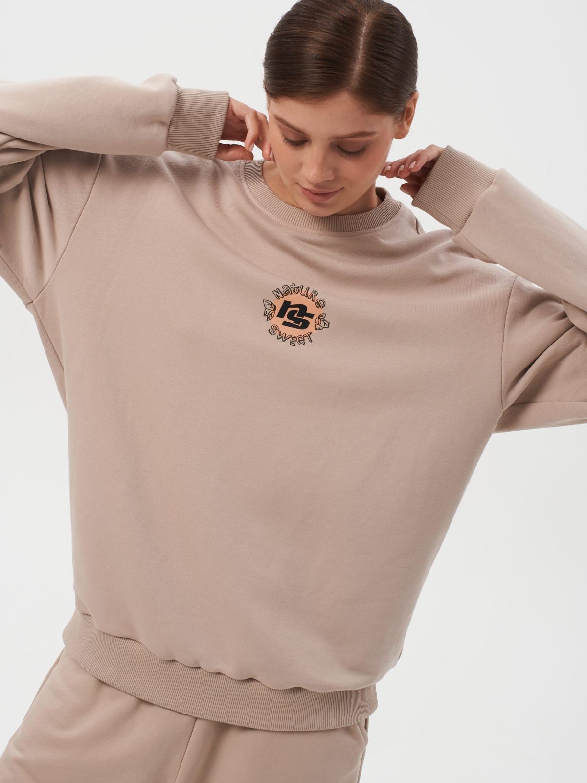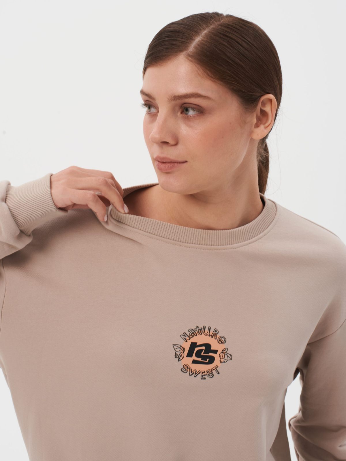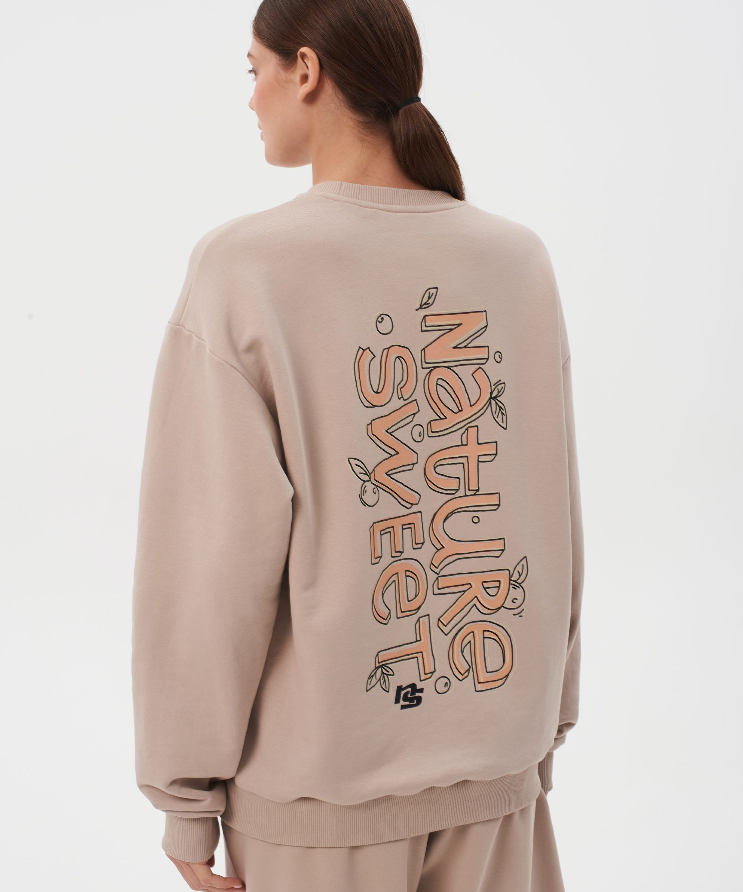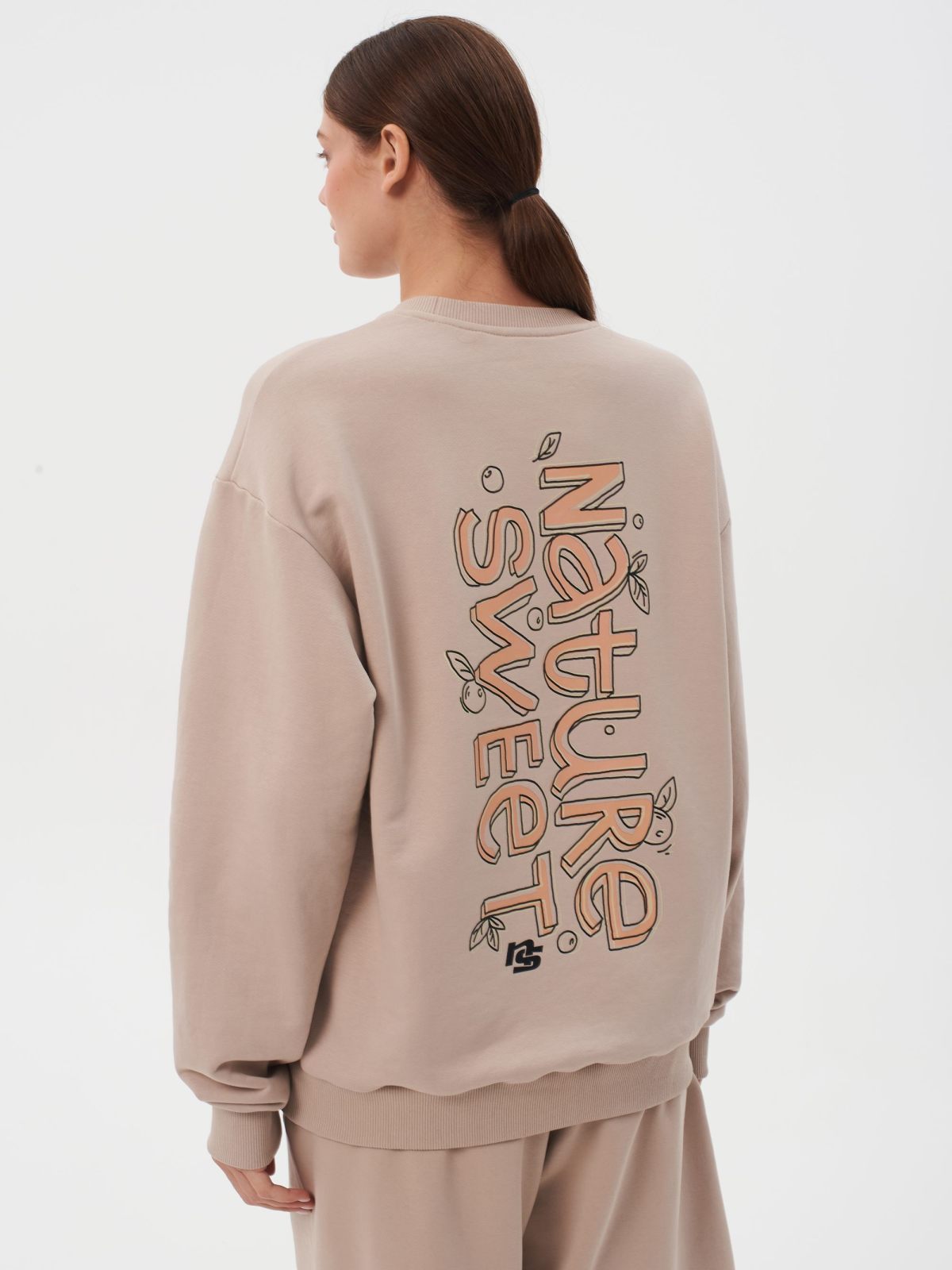 Свитшот женский oversize силуэта. В составе 90% хлопка и 10% полиэстера, что обеспечивает отличную посадку и долговечность изделия. На спине расположен нежный принт коллекции "Sweet Nature" - ты прекрасна такая, какая ты есть! Свитшот представлен в нежных цветах персик и капучино и удачно дополнит как спортивный, так и классический образ.