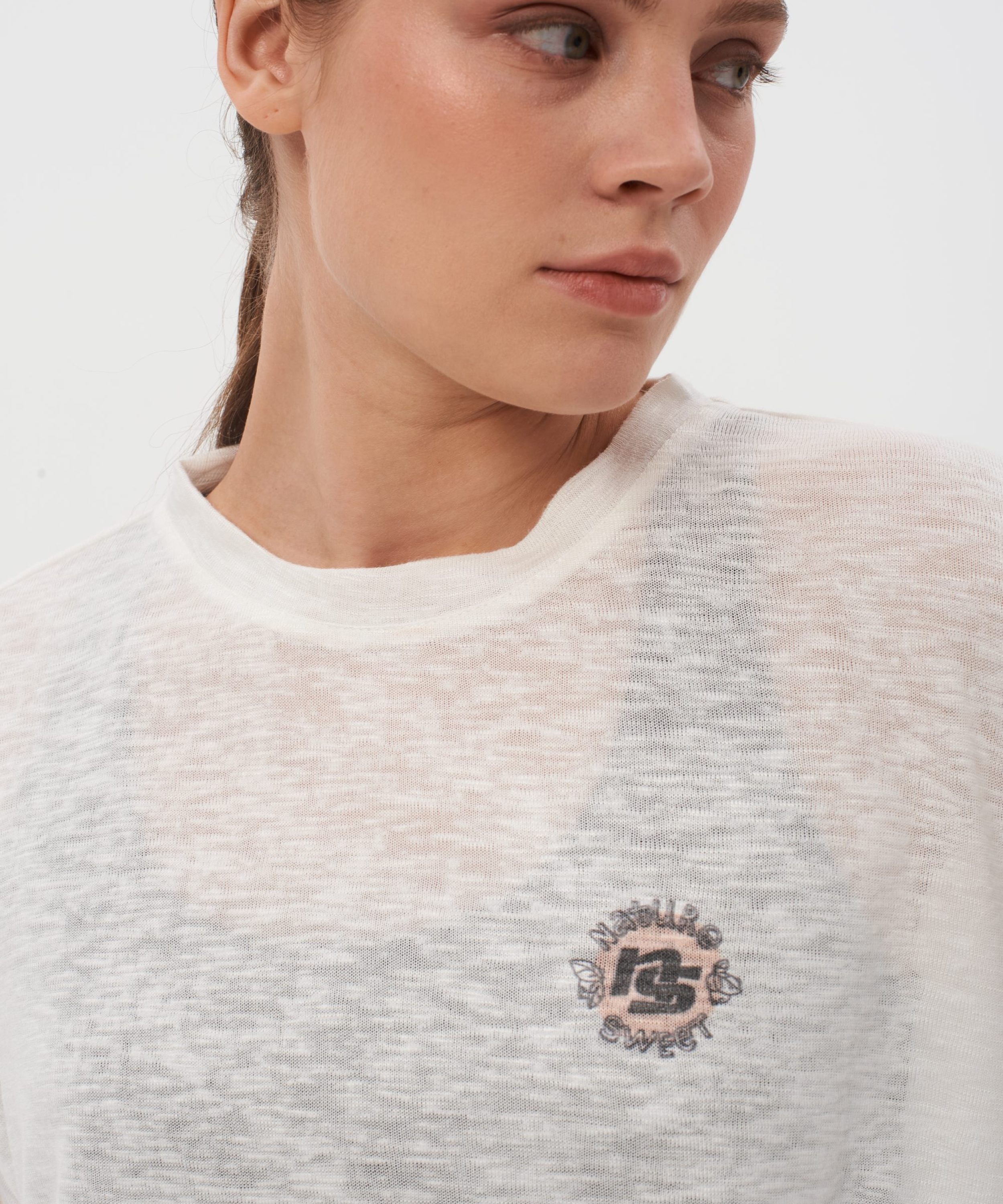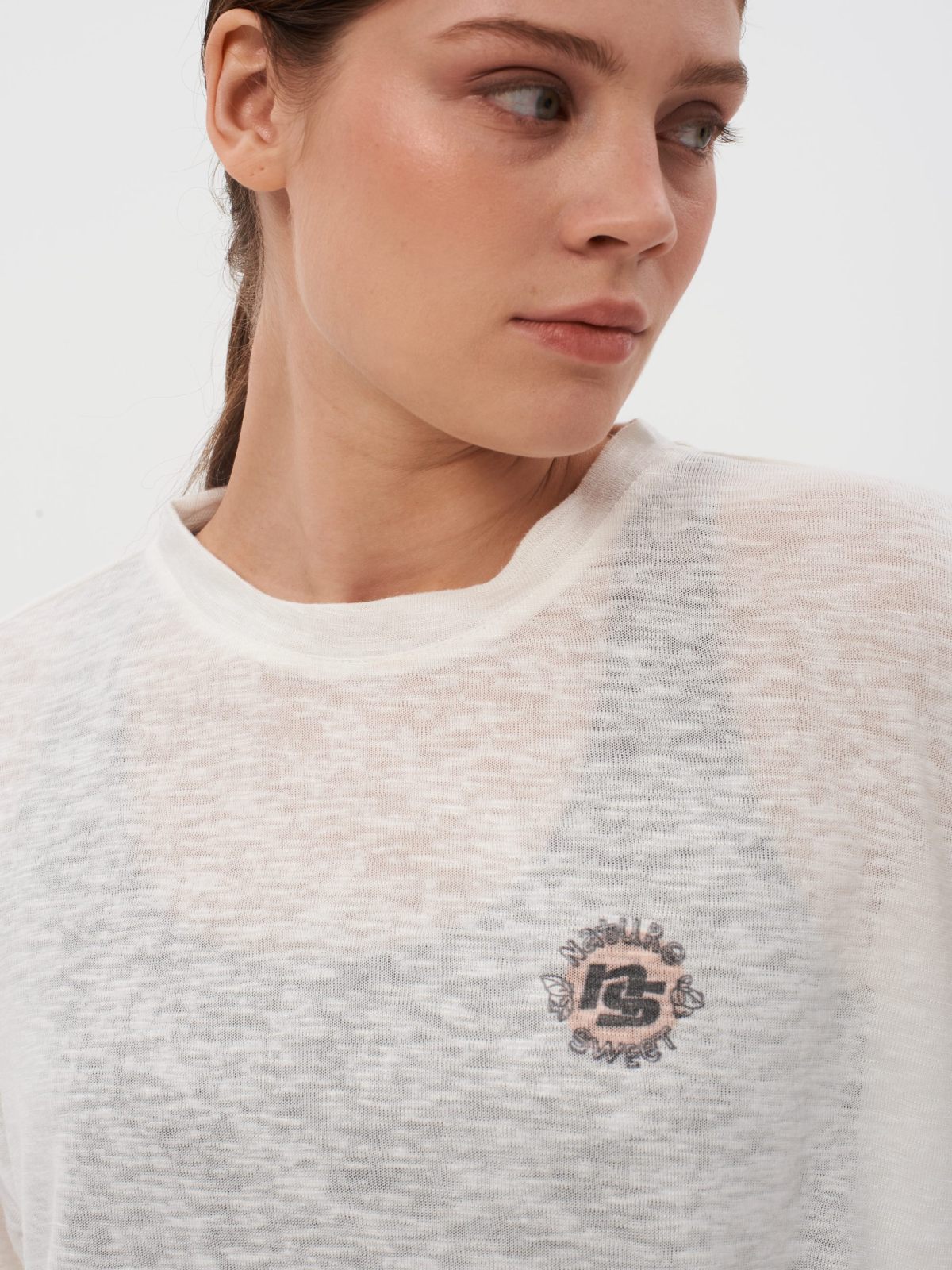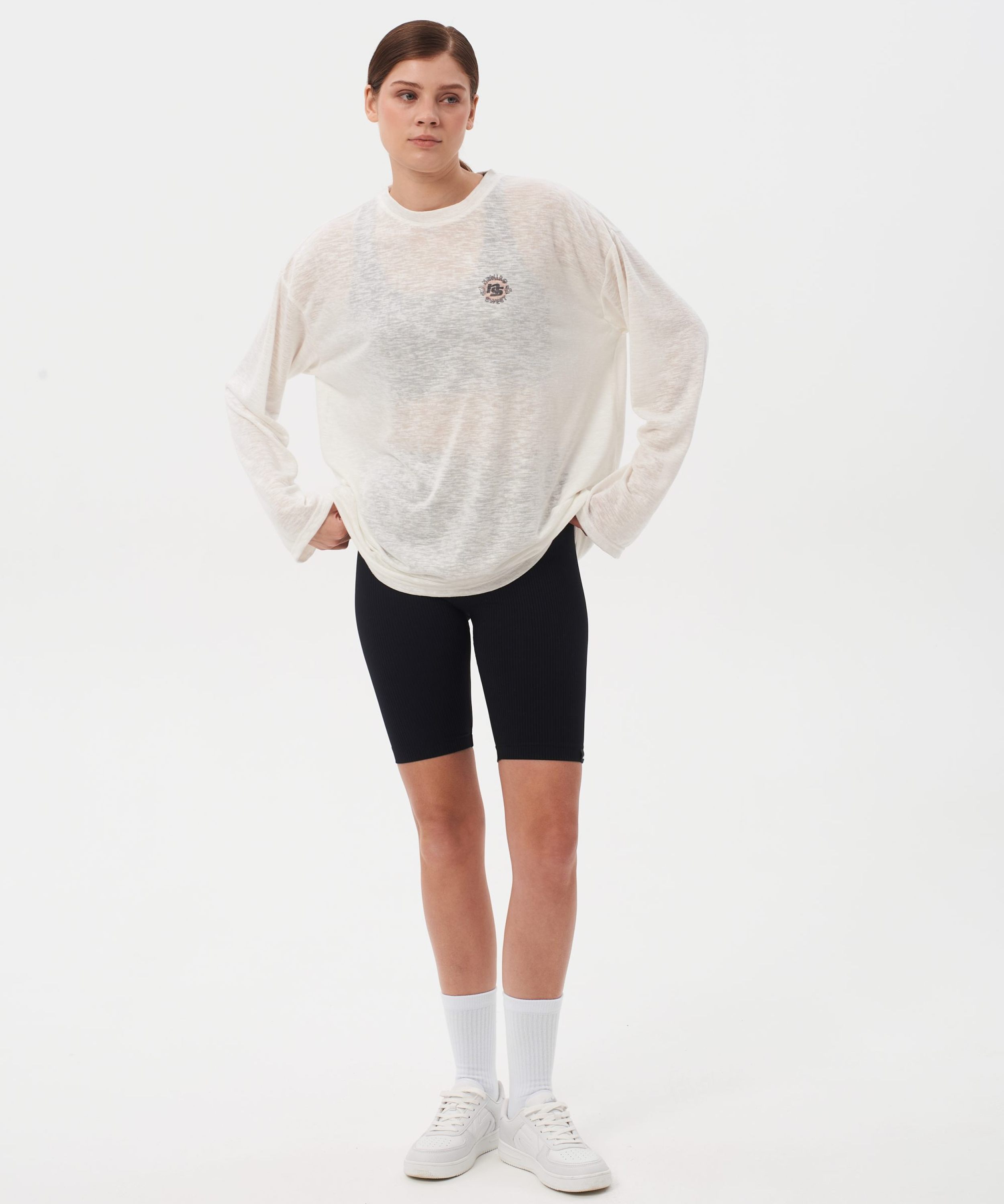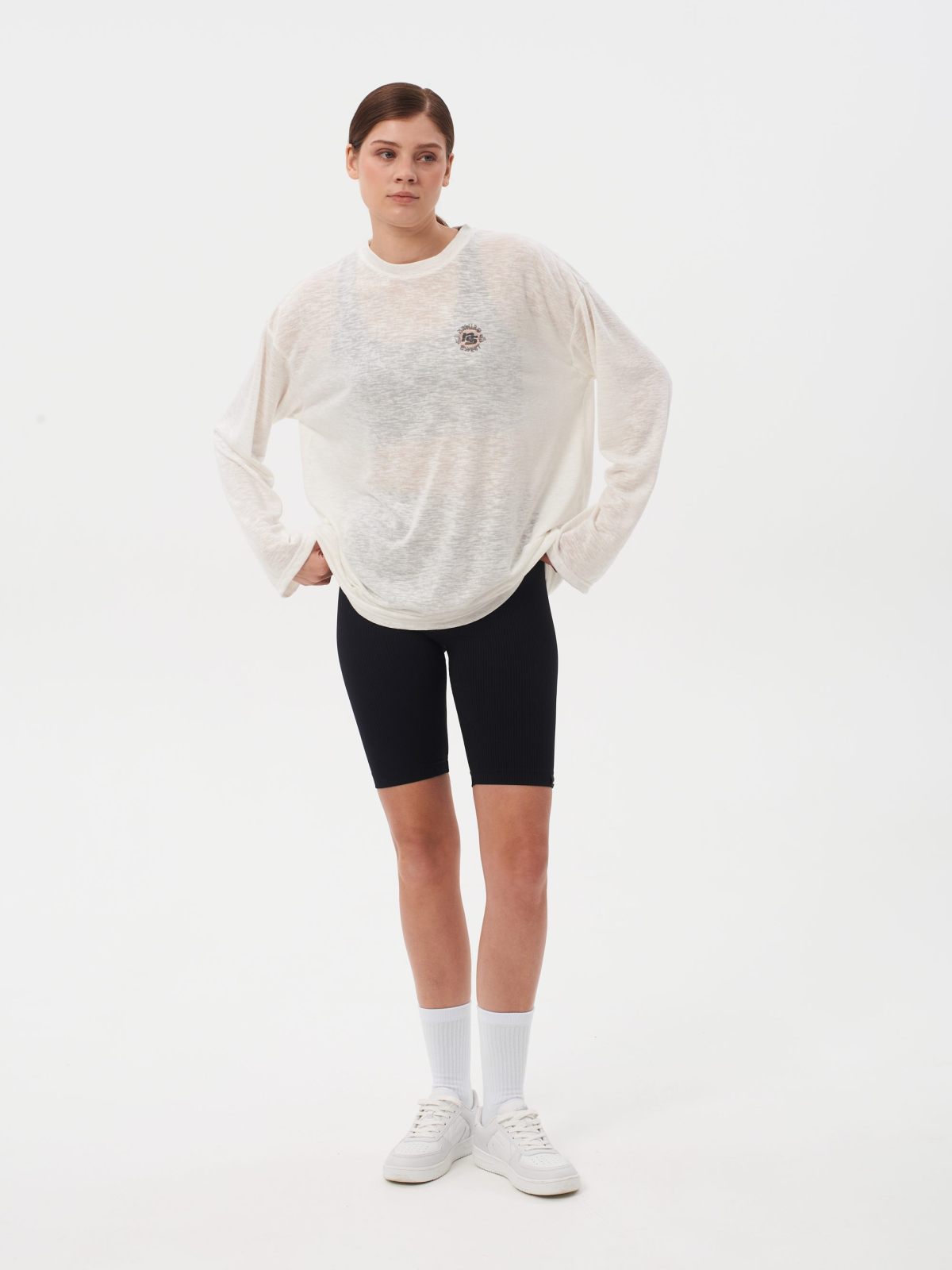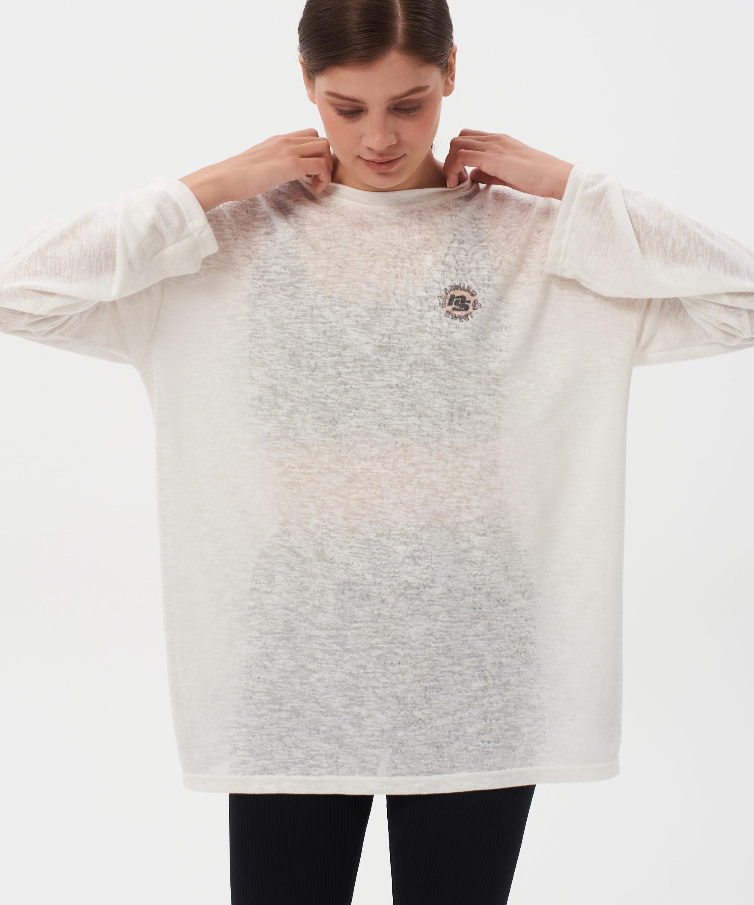 Лонгслив женский oversize силуэта. В составе 65% вискозы и 35% полиэстера, что делает лонгслив невероятно легким и приятным на ощупь. Ткань полупрозрачная, имеет сдвоенные размеры. На груди расположен нежный принт коллекции "Sweet Nature" - ты прекрасна такая, какая ты есть! Лонгслив представлен в черном и белом цветах и отлично дополнит как спортивный, так и классический образ.