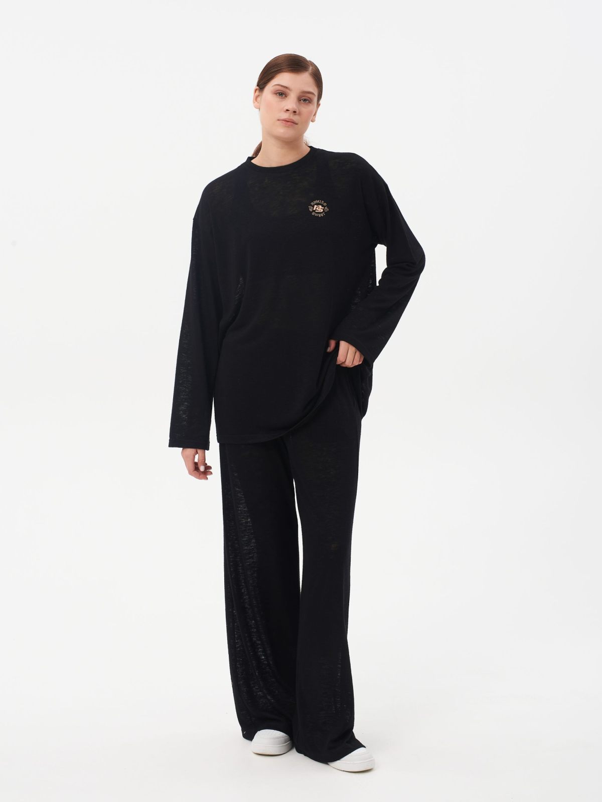 Женские прямые широкие брюки oversize силуэта. В составе 65% вискозы и 35% полиэстера. Материал является главным преимуществом этой модели - брюки легкие, мягкие, практически не ощущаются на теле. Выполнены в классическом черном цвете и отлично подходят для летних образов.