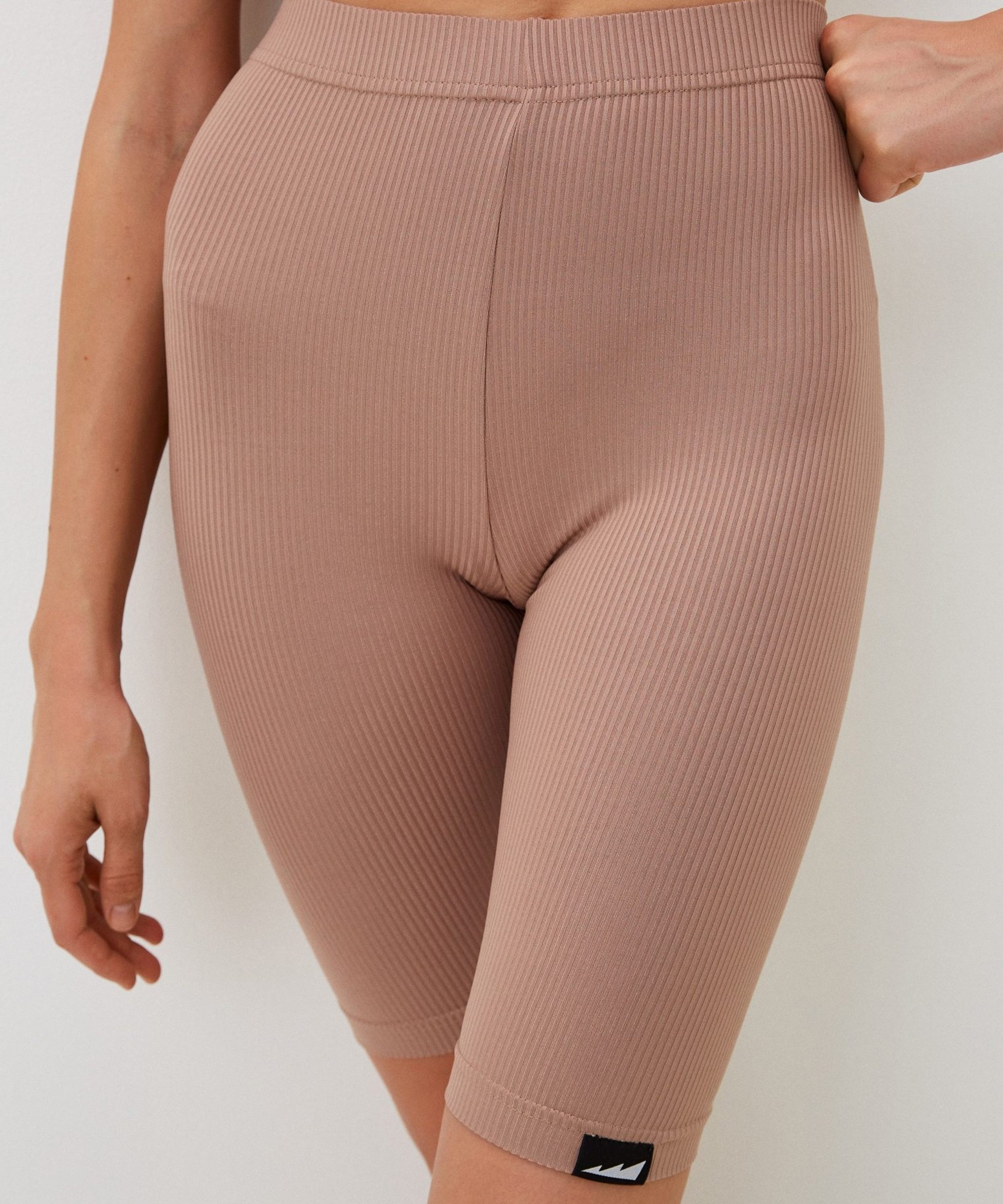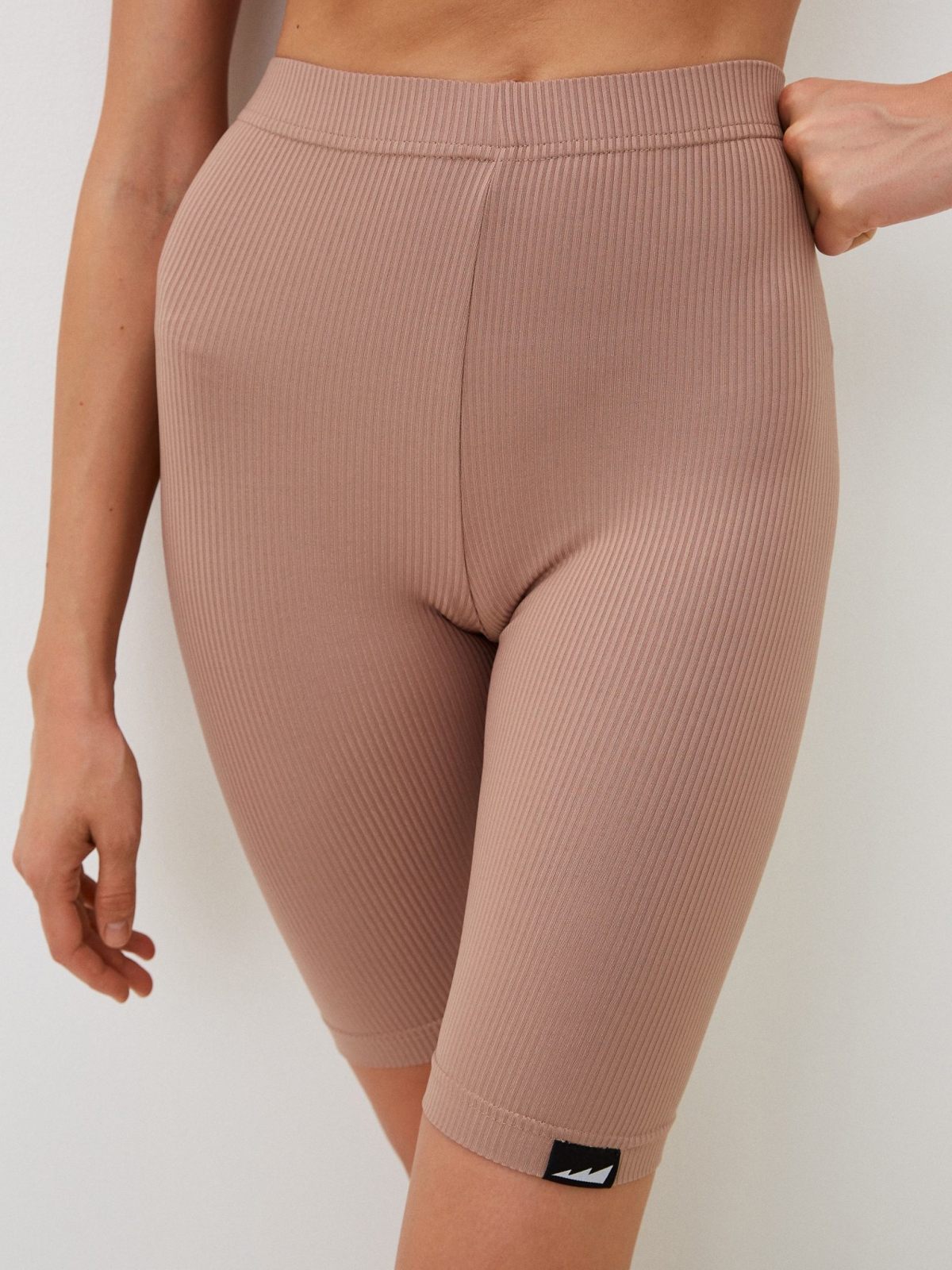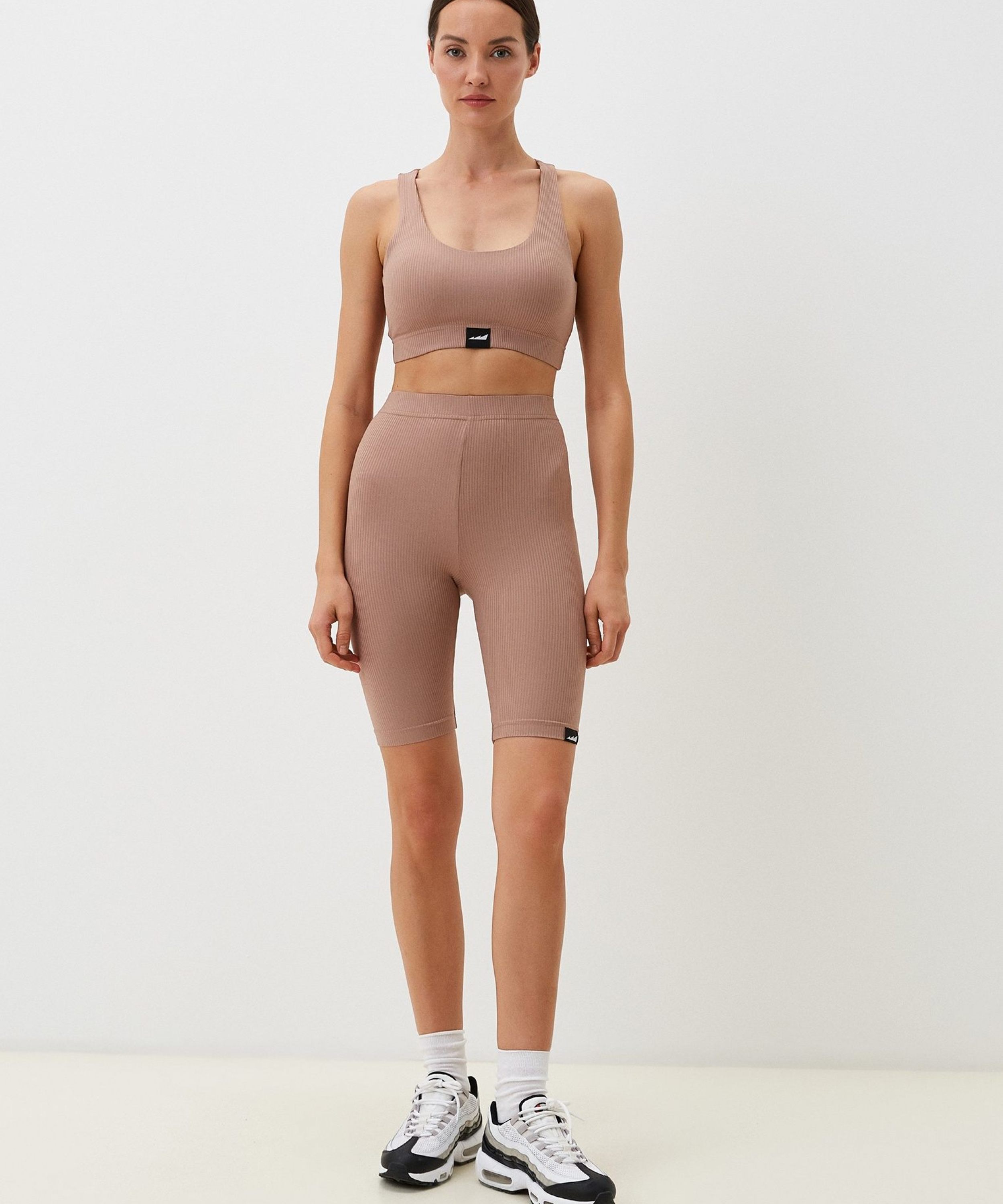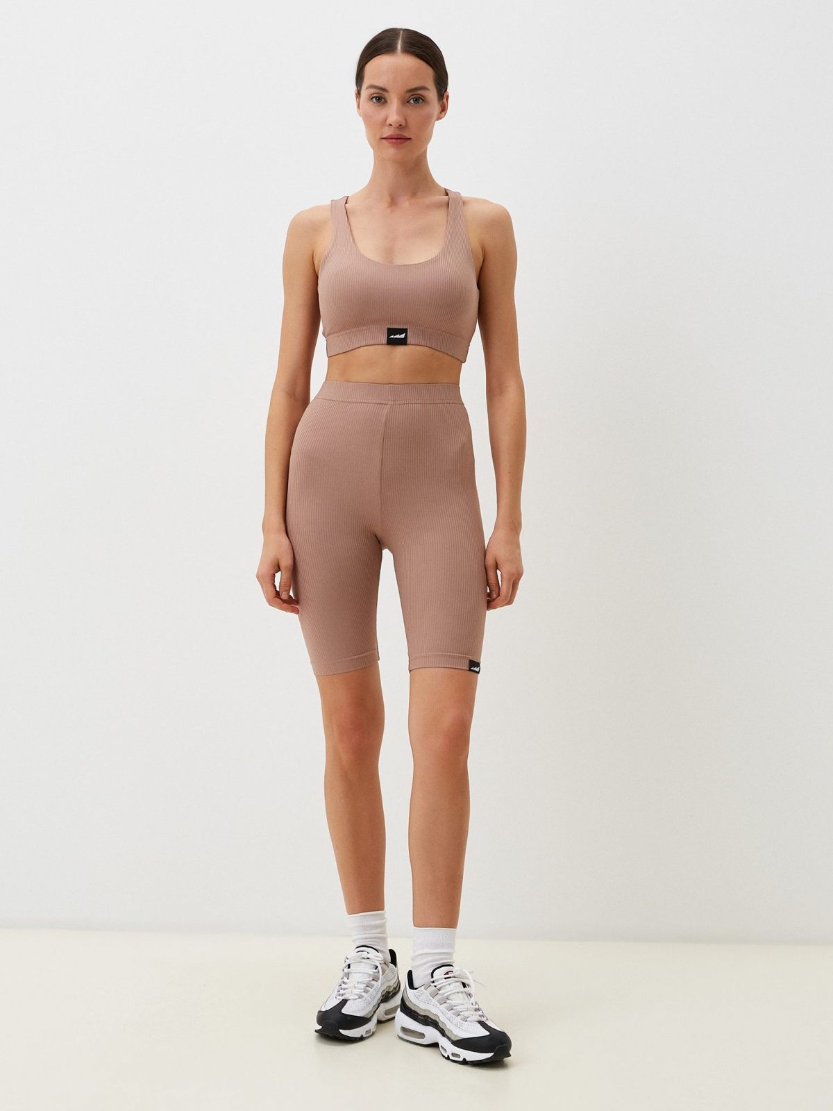 На левой ноге внизу расположен флажок с логотипом. Шорты представлены в двух цветах: бежевый и черный. Нейтральные цвета отлично подойдут не только для фитнес-образов, но и для классных летних образов в спортивном стиле.