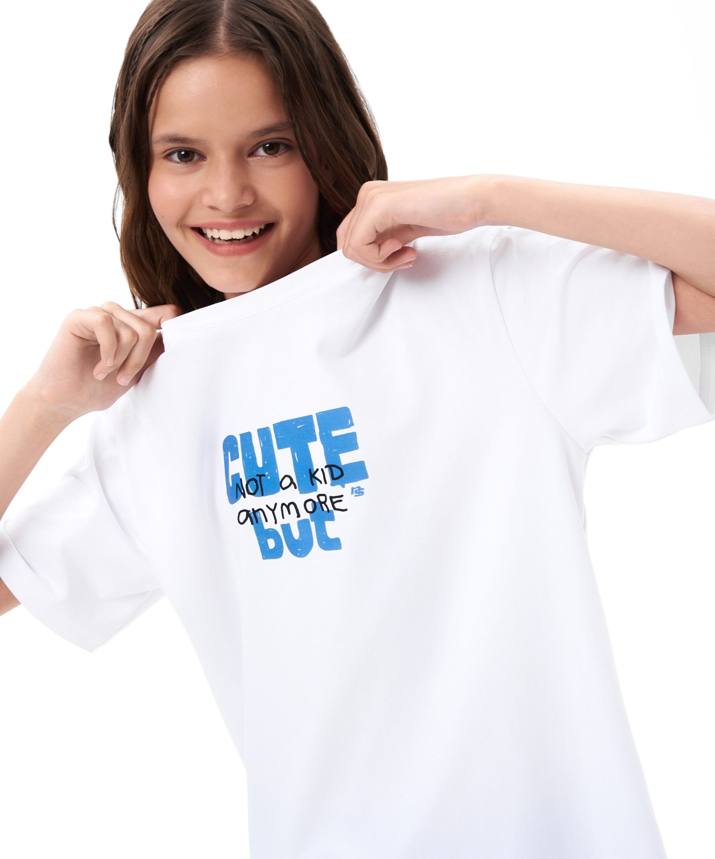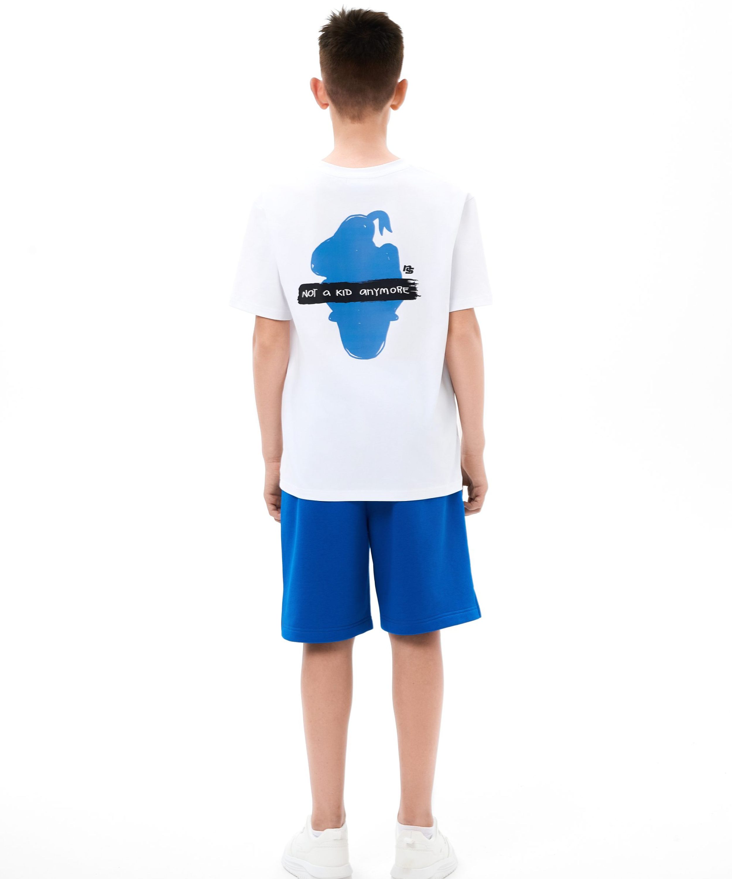 Детская футболка силуэта oversize из коллекции Naka. Выполнена из материала, в составе которого 92% хлопка и 8% эластана, что обеспечивает отличную посадку и долговечность изделия. На груди и спине расположены большие принты с дизайнерскими слоганами и символами капсулы "Not A Kid Anymore" - любимыми детскими персонажами для тех, кто уже не ребенок! Представлена классическом в белом цвете. Модель создана для комфортного и запоминающегося образа на каждый день.