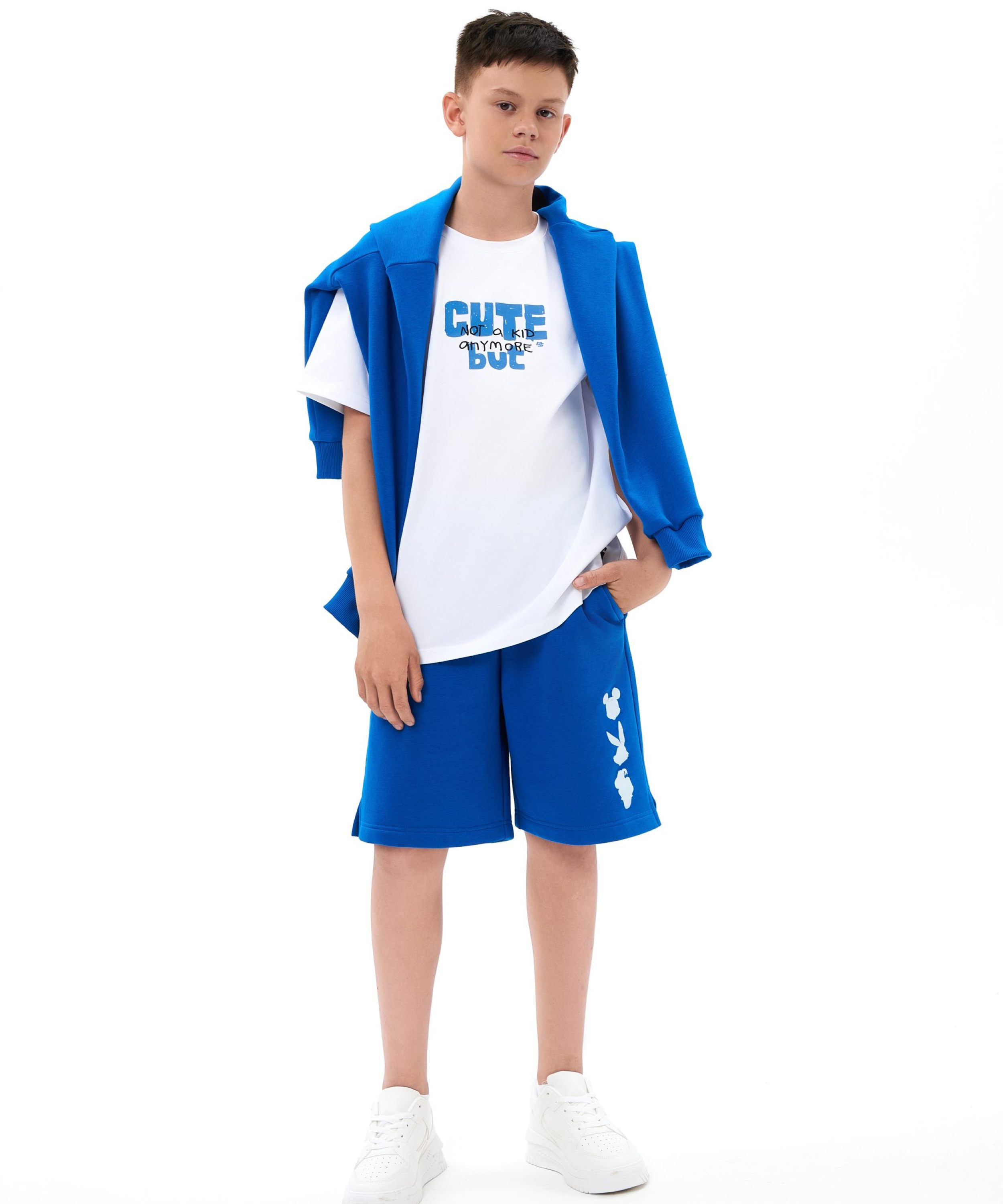 Детские шорты прямого силуэта из коллекции Naka. Выполнены из футера 3х-нитки, в составе которого 90% хлопка и 10% полиэстера, - гипоаллергенного, пропускающего воздух, мягкого и плотного материала. На левой ноге расположен принт с дизайнерскими символами капсулы "Not A Kid Anymore" - любимыми детскими персонажами для тех, кто уже не ребенок! Представлены в 2 цветах: ярком синем и глубоком графитовом. Модель создана для комфортного и запоминающегося образа на каждый день.