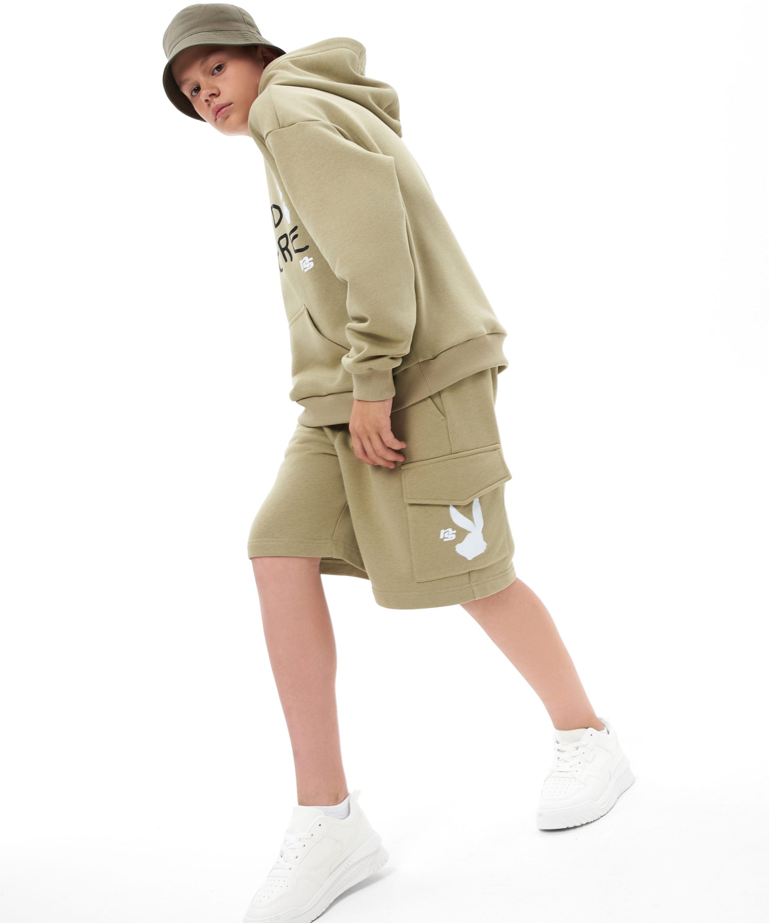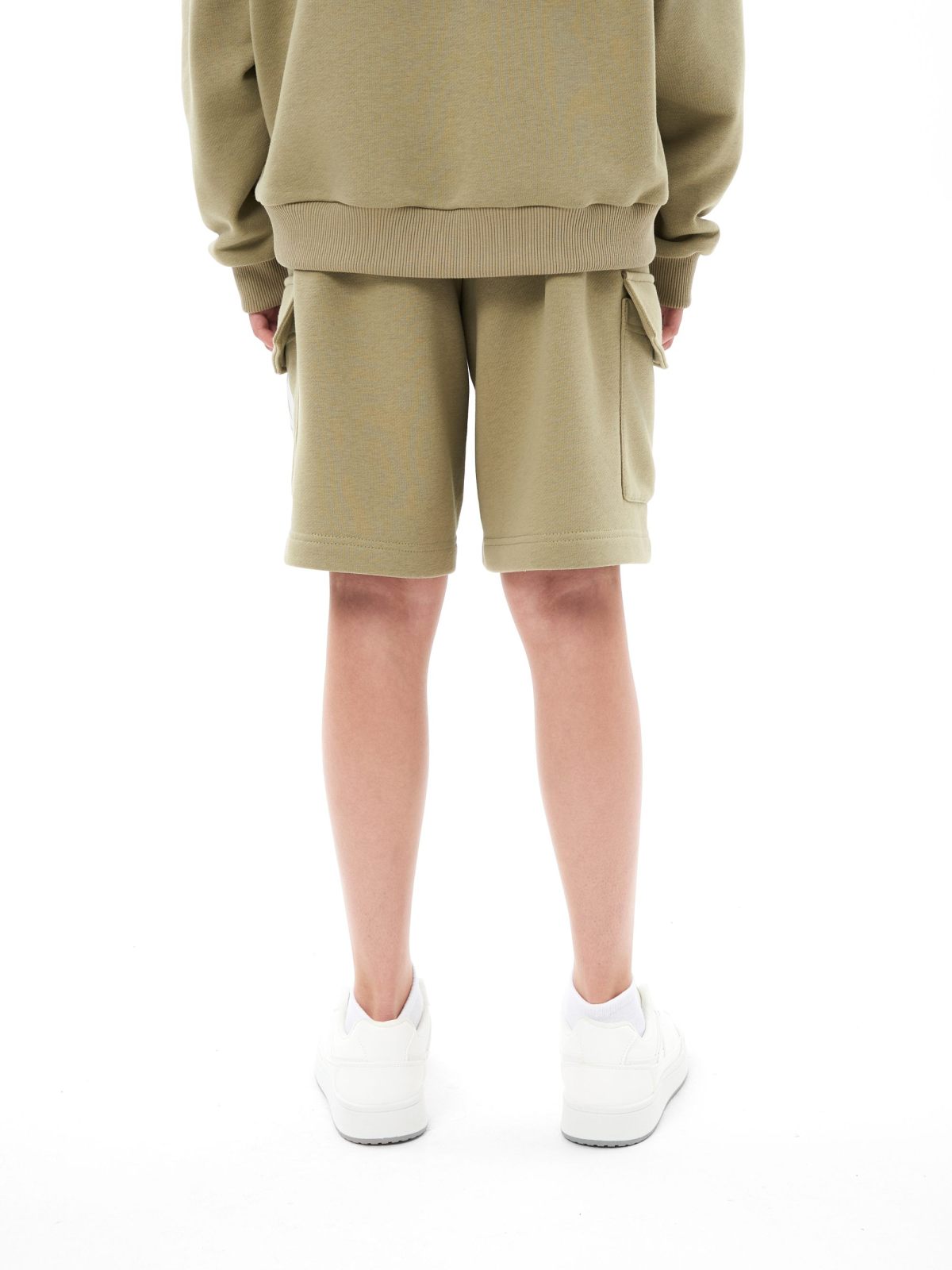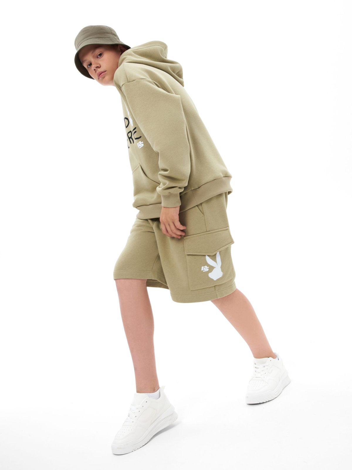 Детские карго-шорты прямого силуэта из коллекции Naka. Выполнены из футера 3х-нитки, в составе которого 92% хлопка и 8% эластана - гипоаллергенного, пропускающего воздух, мягкого и плотного материала. Особенностью модели являются два кармана-портфель на правой и левой ноге, эластичный шнур в поясе для регулировки посадки, а также большой принт с дизайнерским логотипом и символом капсулы "Not A Kid Anymore" - любимым дестким персонажем для тех, кто уже не ребенок! Представлены в трендовом оливковом цвете. Модель создана для комфортного и запоминающегося образа на каждый день.