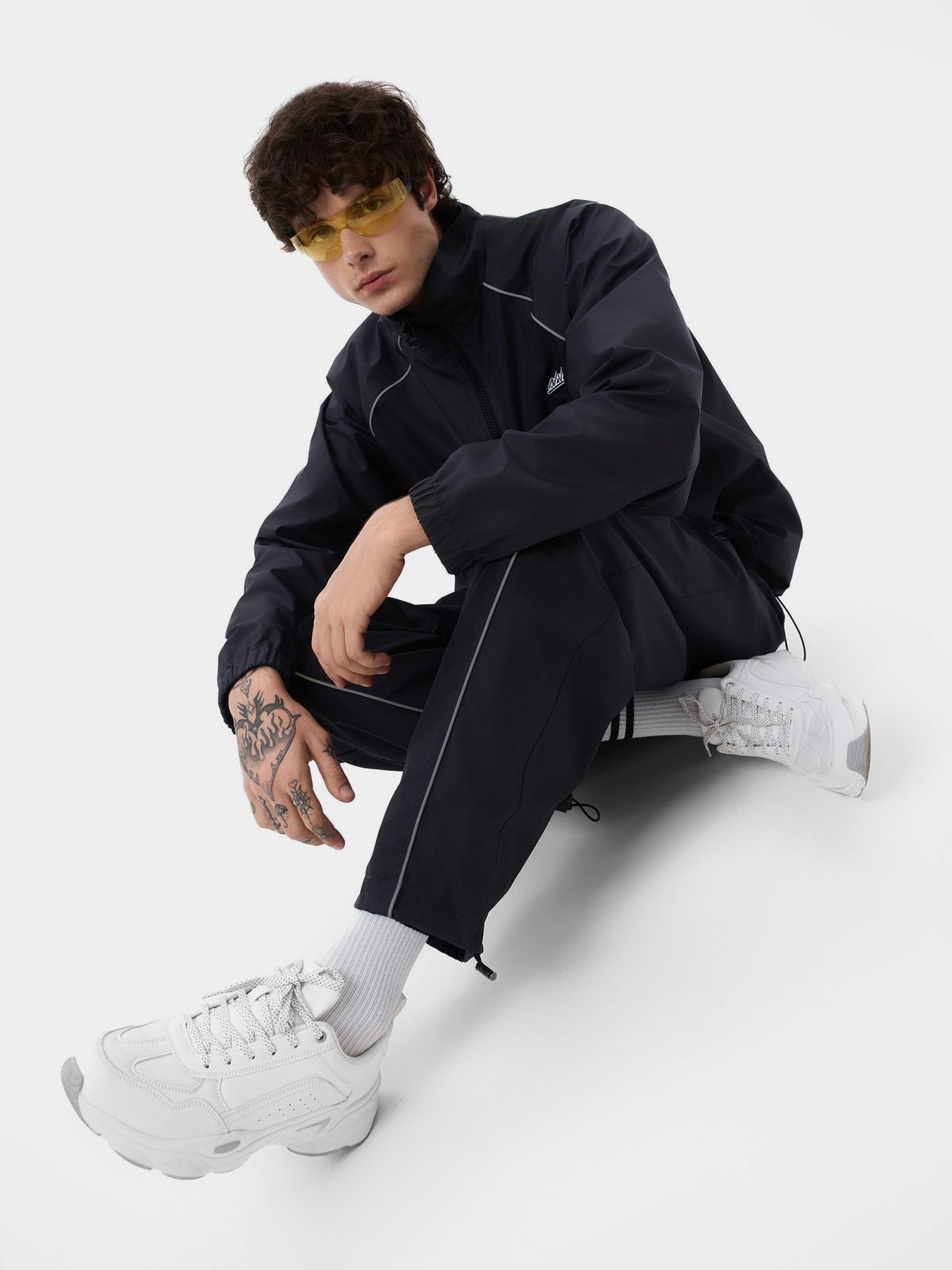 Мужская ветровка из лимитированной коллекции Indigo. Выполнена из 100% полиэстера, свободного силуэта Loose. У модели высокий воротник, два боковых кармана для необходимых вещей, утяжка по низу для защиты от ветра и прохлады. Представлена в насыщенном графитовом цвете. Яркие контрастные светоотражающие канты и стильная лого-вышивка на груди делают модель практичной и запоминающейся. Прекрасный выбор как для спортивного, так и для повседневного стиля