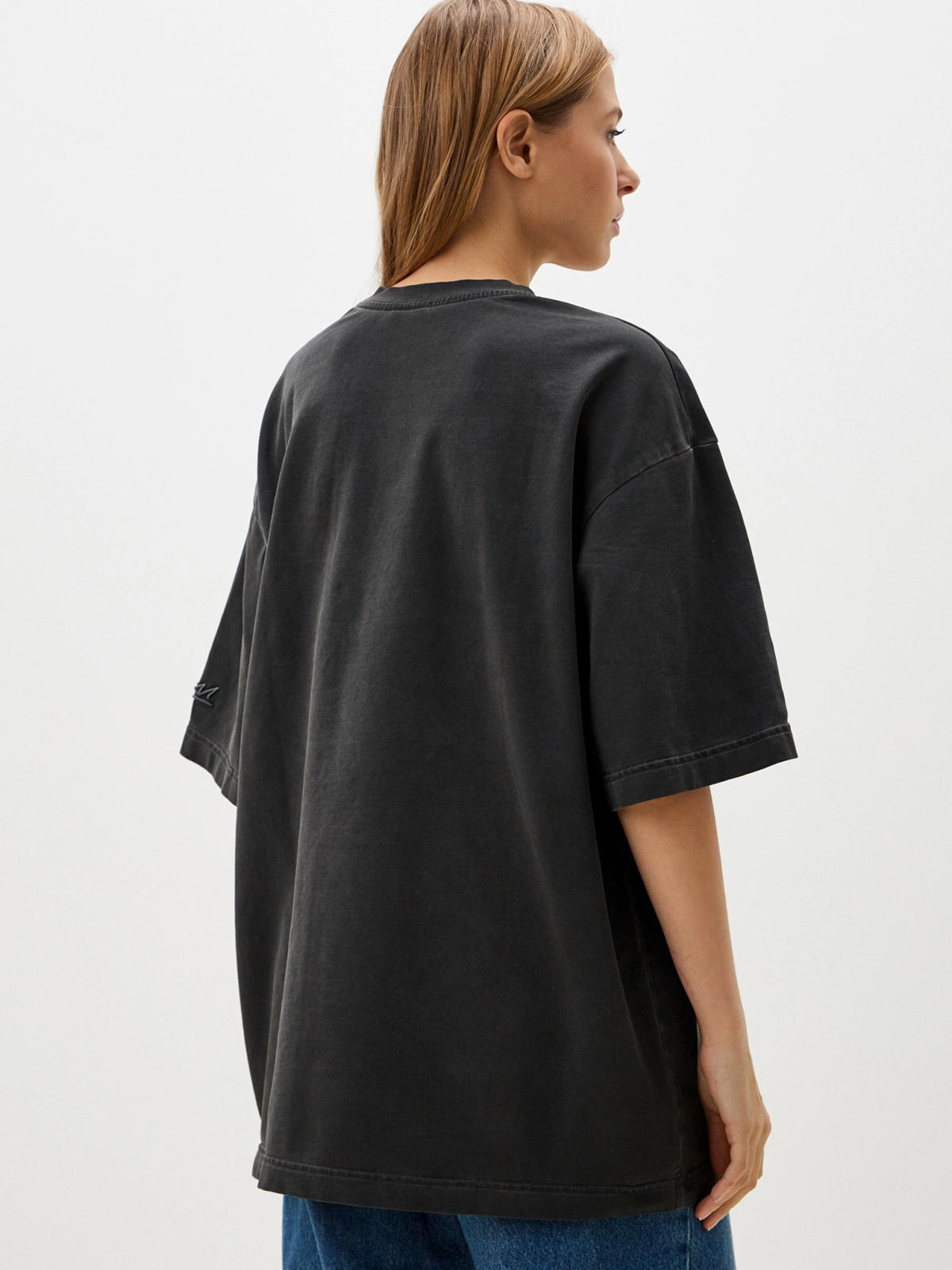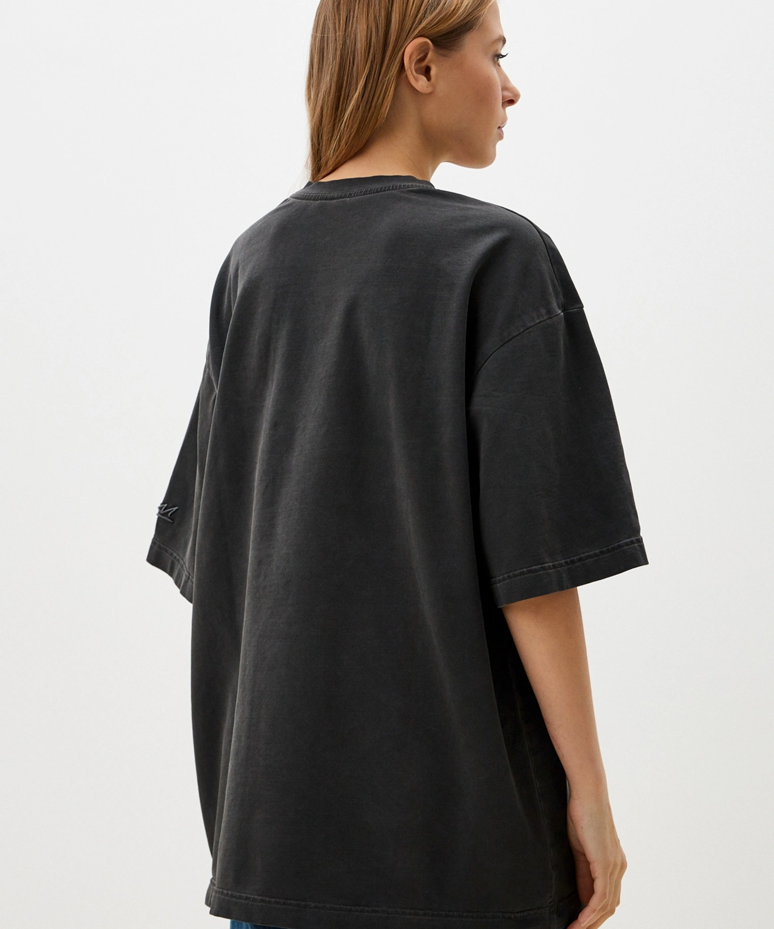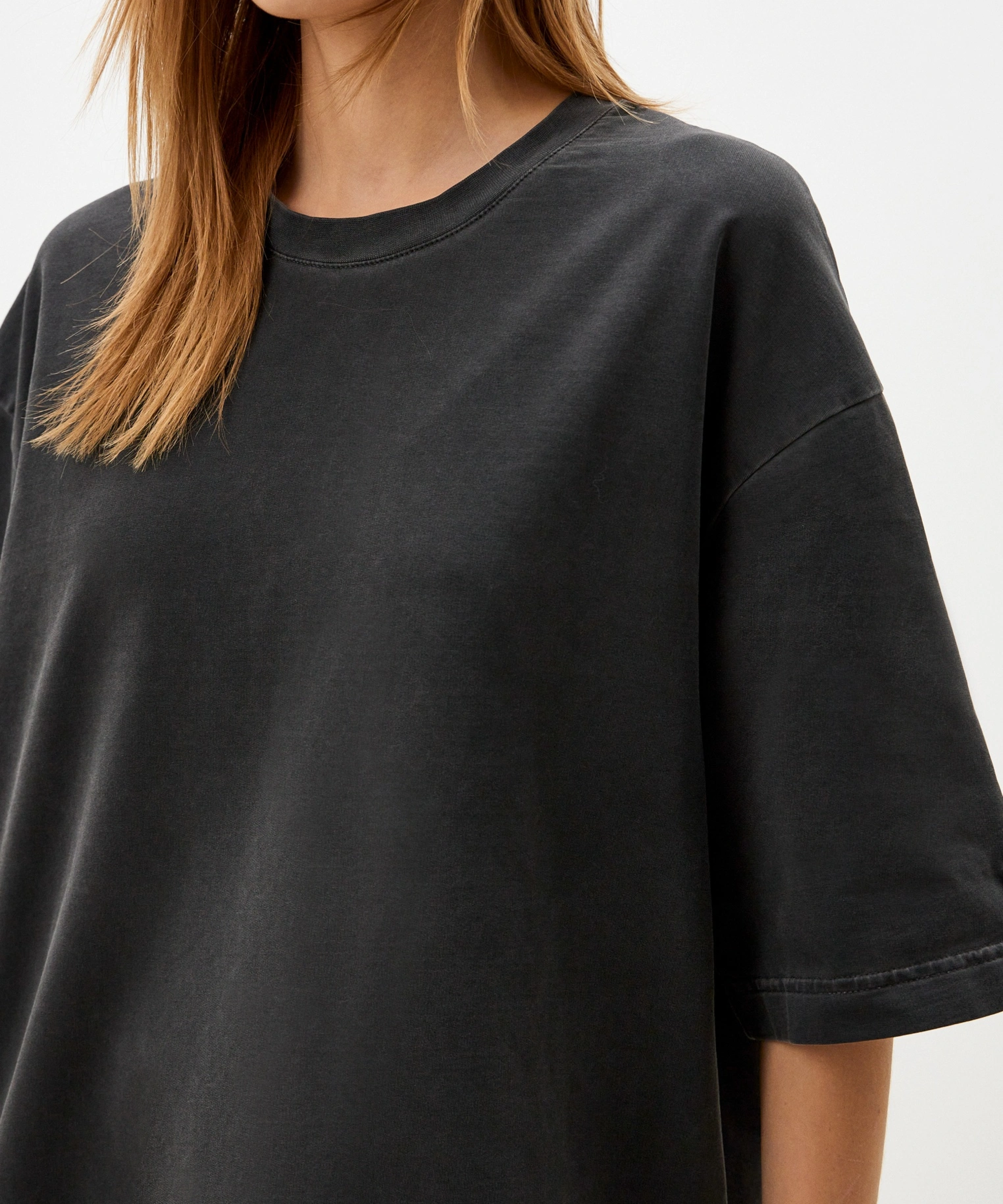Футболка oversize силуэта. Выполнена из материала, в составе которого 92% хлопка и 8% эластана, за счет чего футболка лучше держит форму. Спущенная линия плеча делает крой футболки более молодежным. Представлены в двух трендовых цветах: графитовая и голубая варка. Отлично подходит для повседневных образов в спортивном стиле и позволяют создавать крутые комплекты с любой вещью в вашем гардеробе.