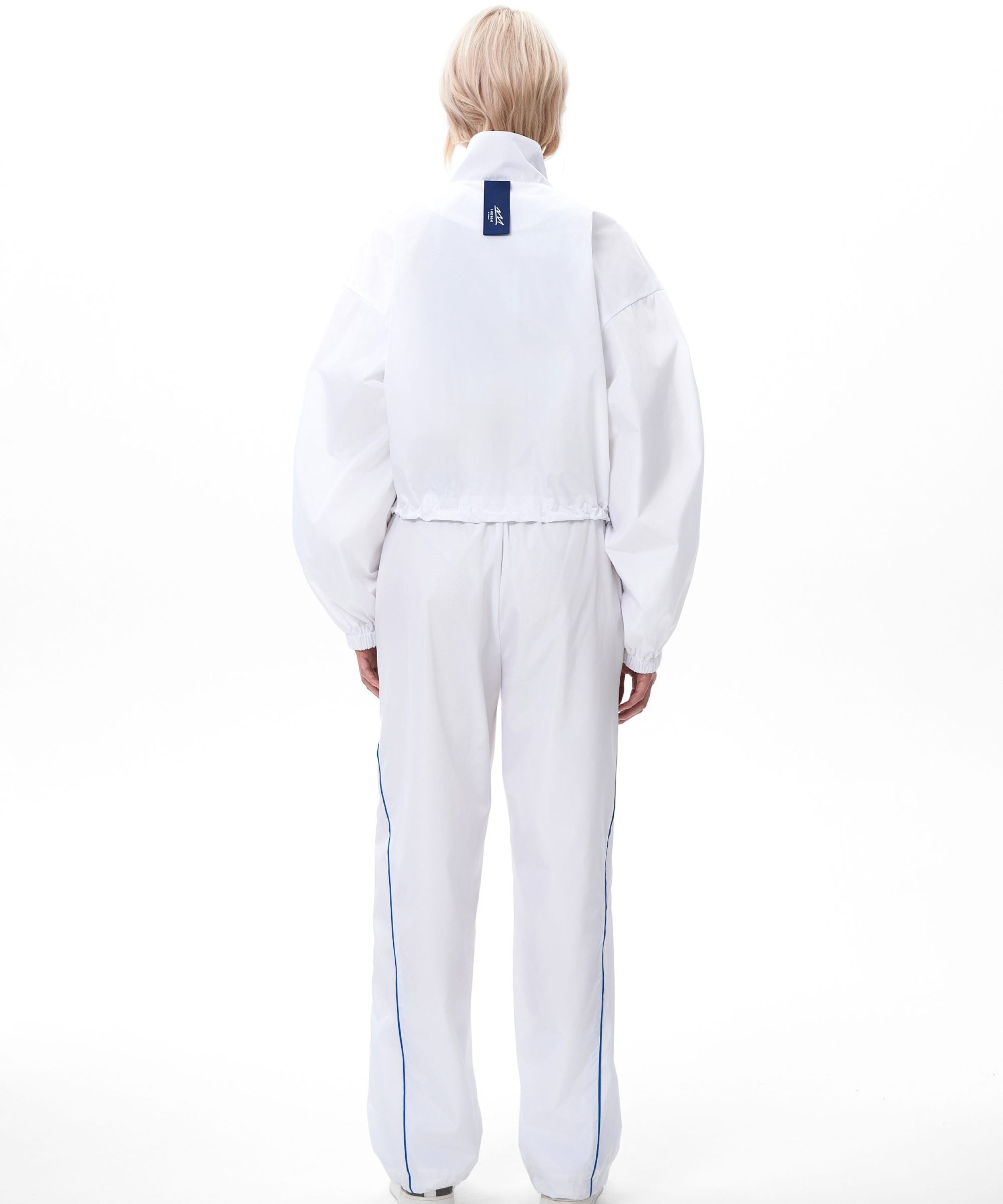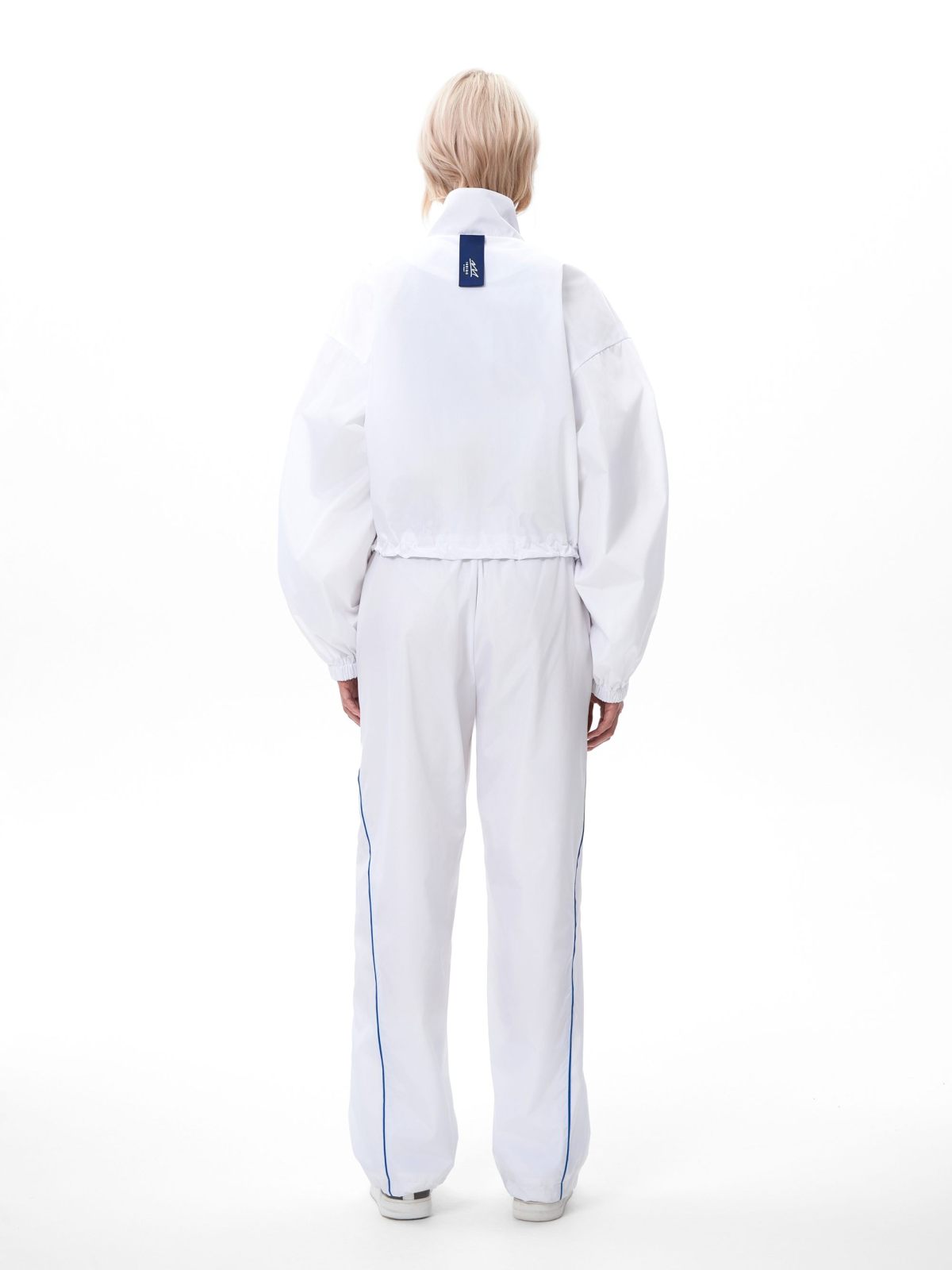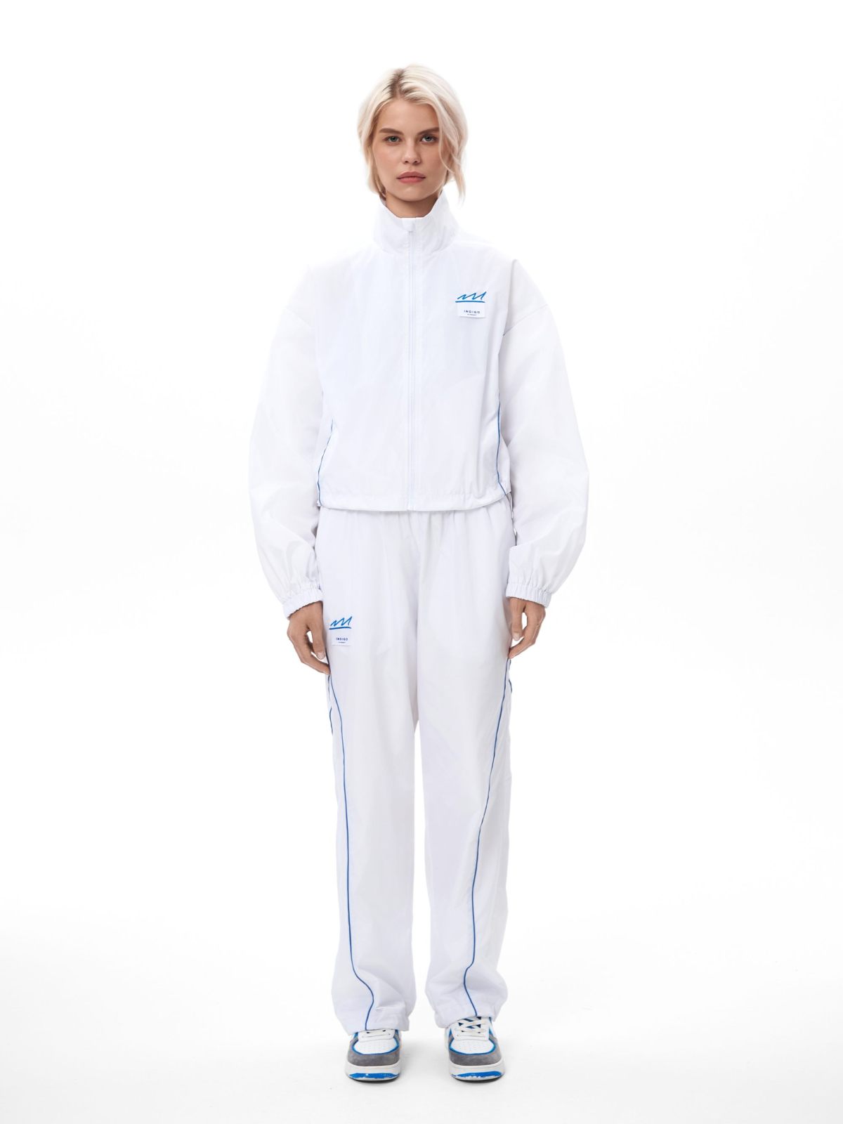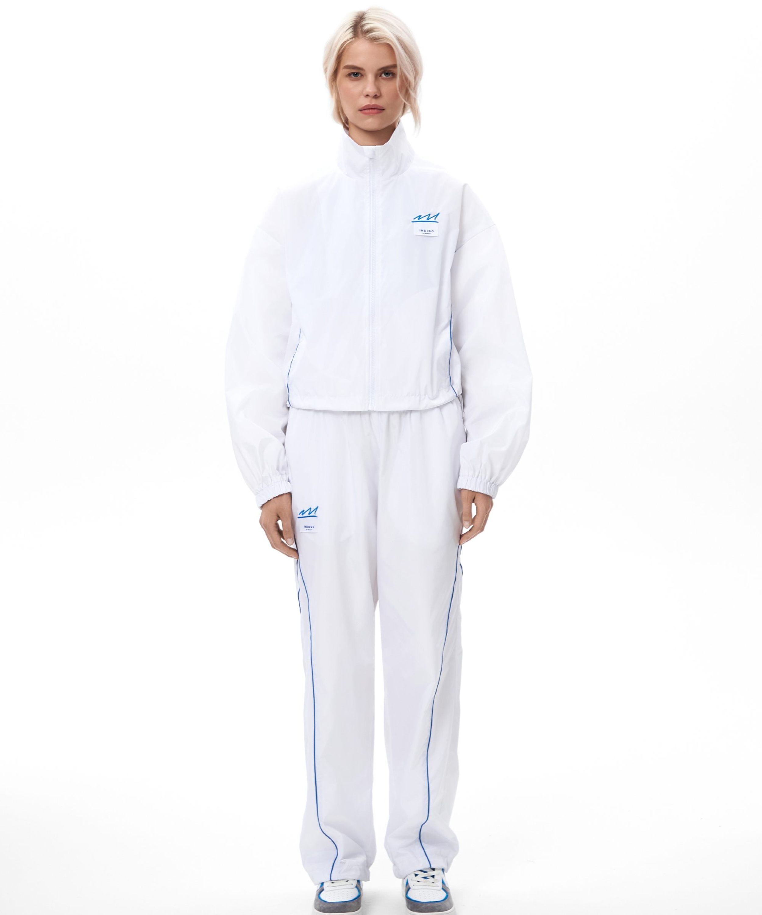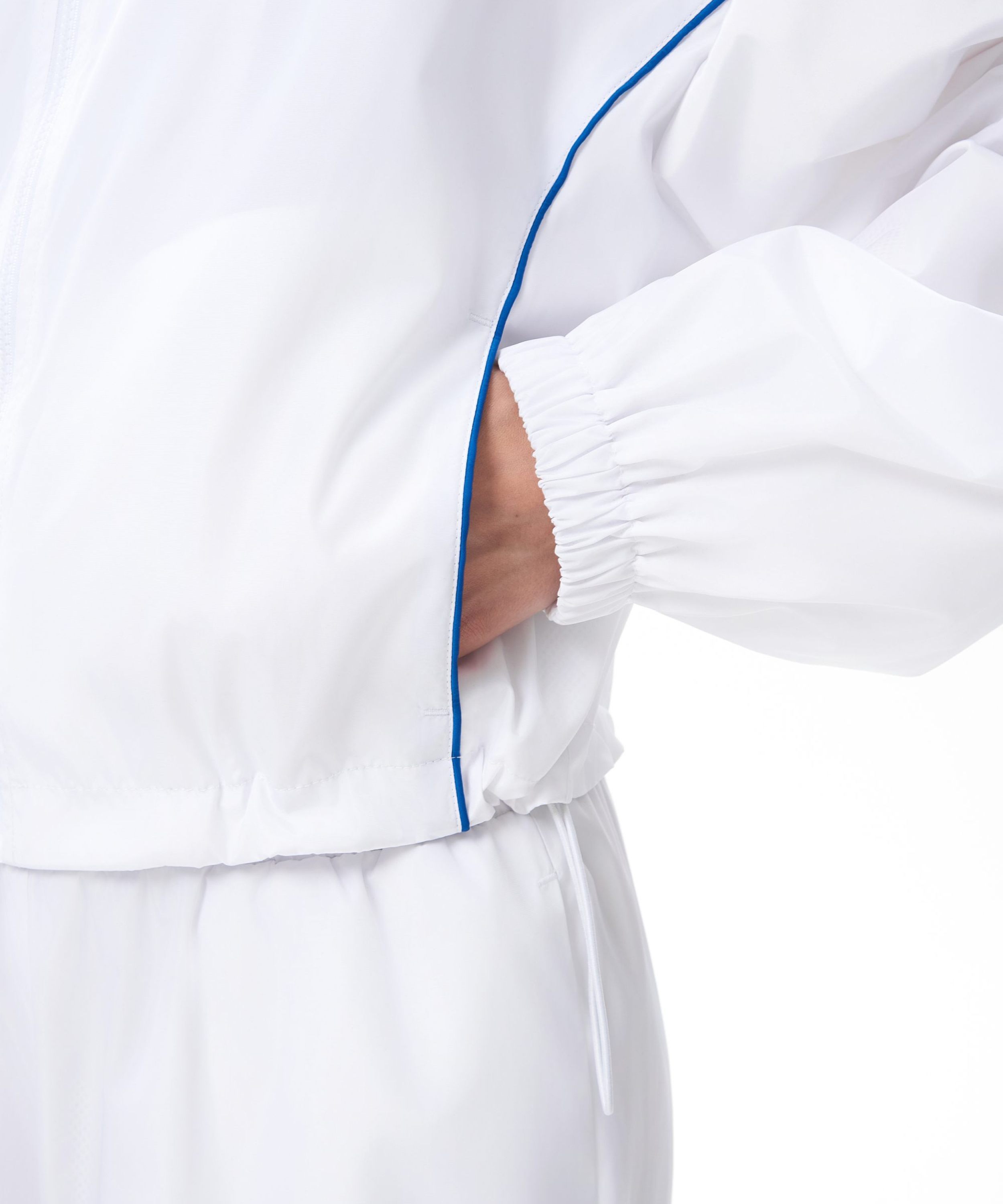Женская ветровка из коллекции Indigo. Выполнена из 100% полиэстера, свободного силуэта Loose. У модели высокий воротник, два боковых кармана для необходимых вещей, утяжка по низу для защиты от ветра и прохлады. Кипельно-белый цвет, контрастные канты, стильные ярлыки-логотипы на груди и спине помогут создать дерзкий и запоминающийся образ. Прекрасный выбор как для спортивного, так и для повседневного стиля