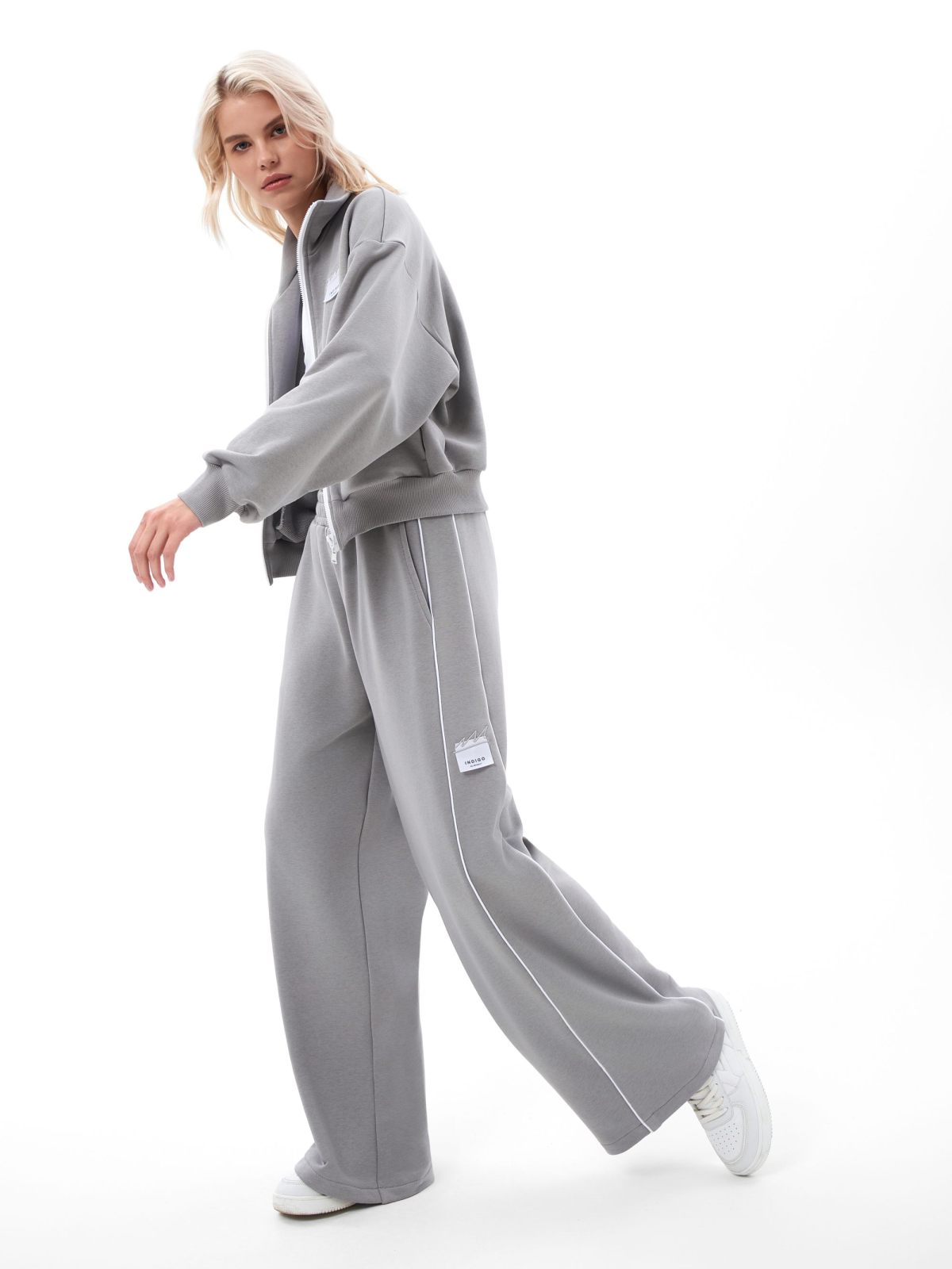 Женские прямые широкие брюки из лимитированной коллекции Indigo. Выполнены из материала, в составе которого 90% хлопка и 10% полиэстера, что обеспечивает отличную посадку и долговечность изделия. Представлены в насыщенных синем и графитовом цветах. Свободный крой, контрастные канты, фирменный логотип и стильный ярлык на левой ноге - все это прекрасно подходит для создания дерзкого спортивного или повседневного образа.