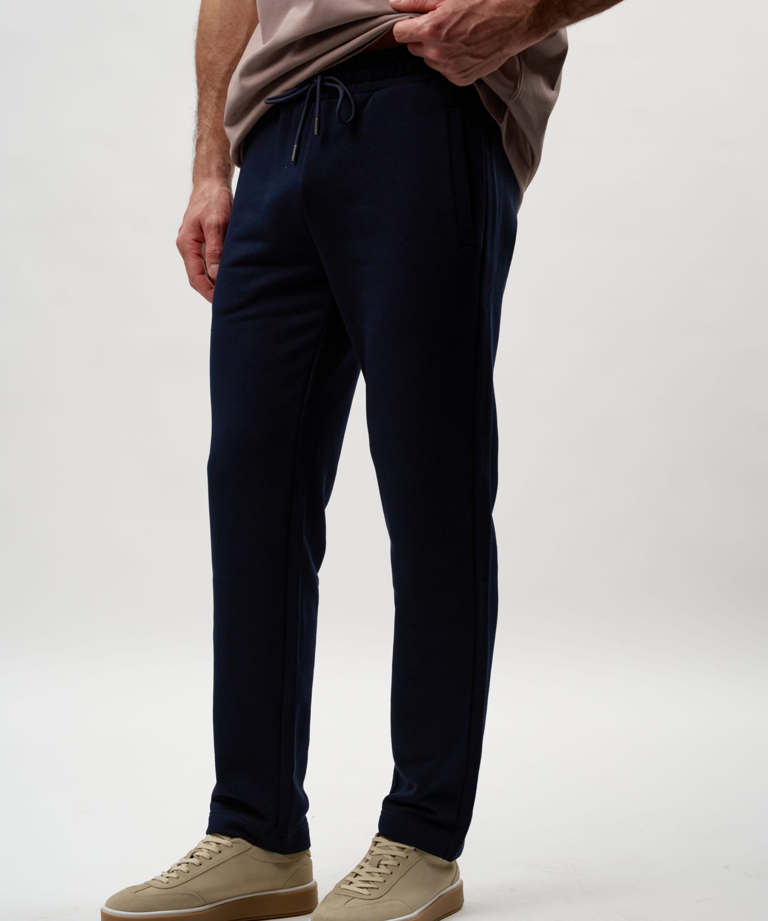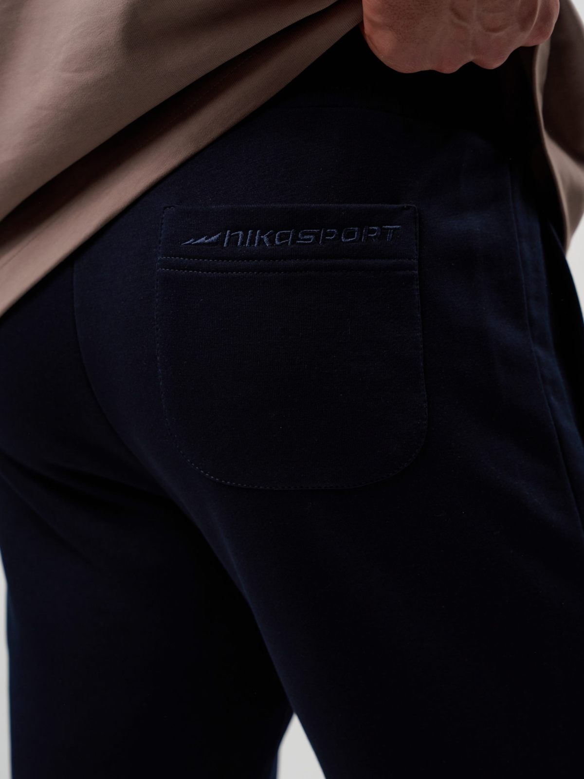 Мужские легкие спортивные брюки прямого кроя. Выполнены из материала, в составе которого 92% хлопка и 8% эластана, что обеспечивает отличную посадку и долговечность изделия. Брюки имеют два боковых кармана для хранения личных вещей, шнурок, обеспечивающий фиксацию на поясе, а также лаконичный принт с логотипом бренда на заднем кармане. Представлены в трех универсальных цветах: темно-синем, темно-сером и сером меланже. Брюки отлично подходят для повседневных образов.