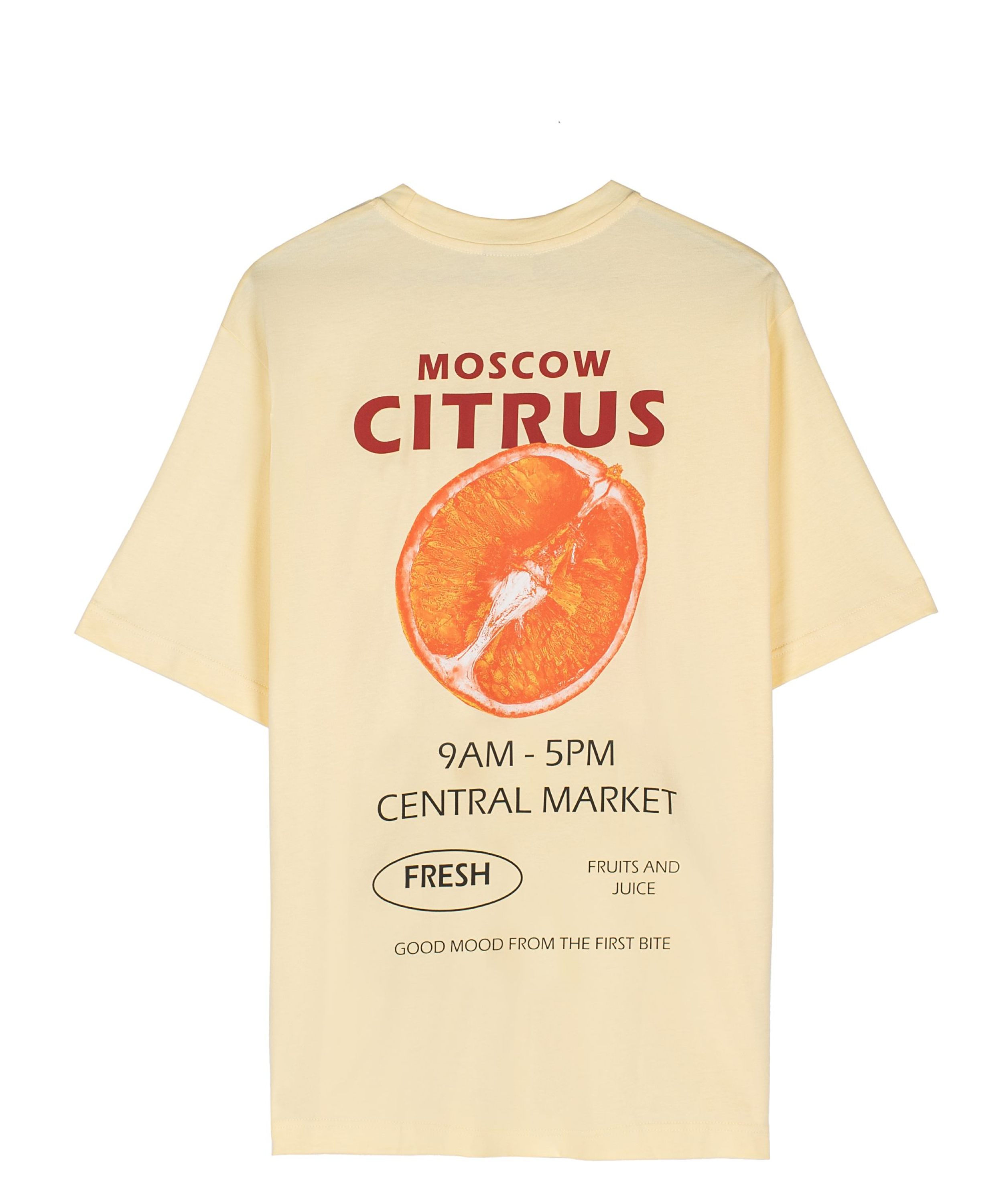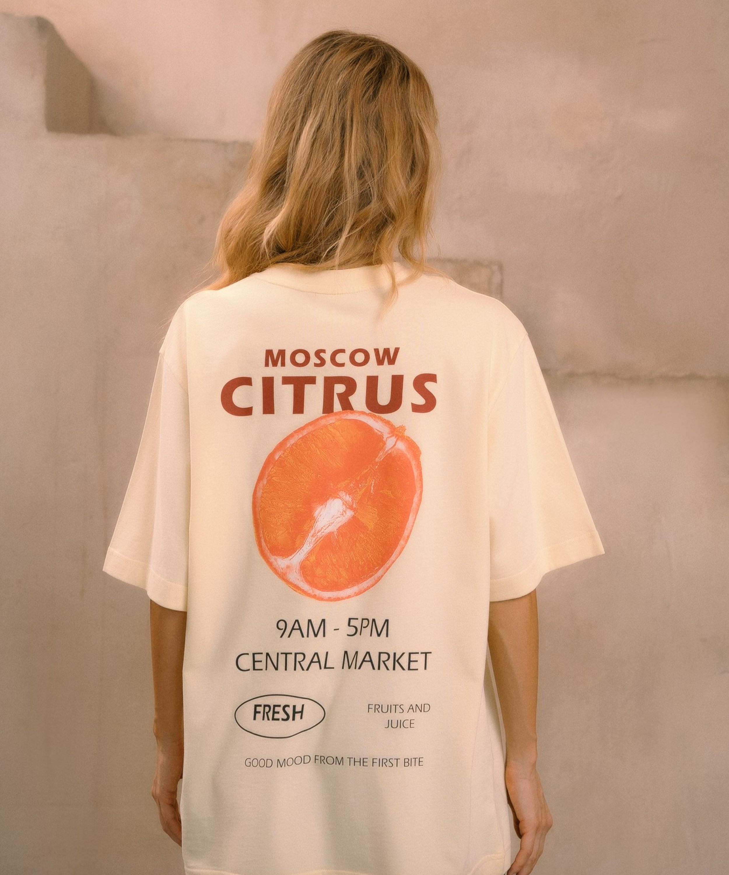 Футболка oversize силуэта из лимитированной коллекции "Фрукты". Выполнена из материала с эффектом peach, в составе которого 92% хлопка и 8% эластана, за счет чего футболка лучше держит форму и очень мягкая на ощупь. Спущенная линия плеча делает крой футболки более молодежным. Представлены в 3 цветах: классический белый, нежный голубой и ваниль, каждая с уникальным дизайнерским тематическим принтом на спине. Созданы для повседневных образов в спортивном стиле и позволяют создавать крутые комплекты с любой вещью в вашем гардеробе.