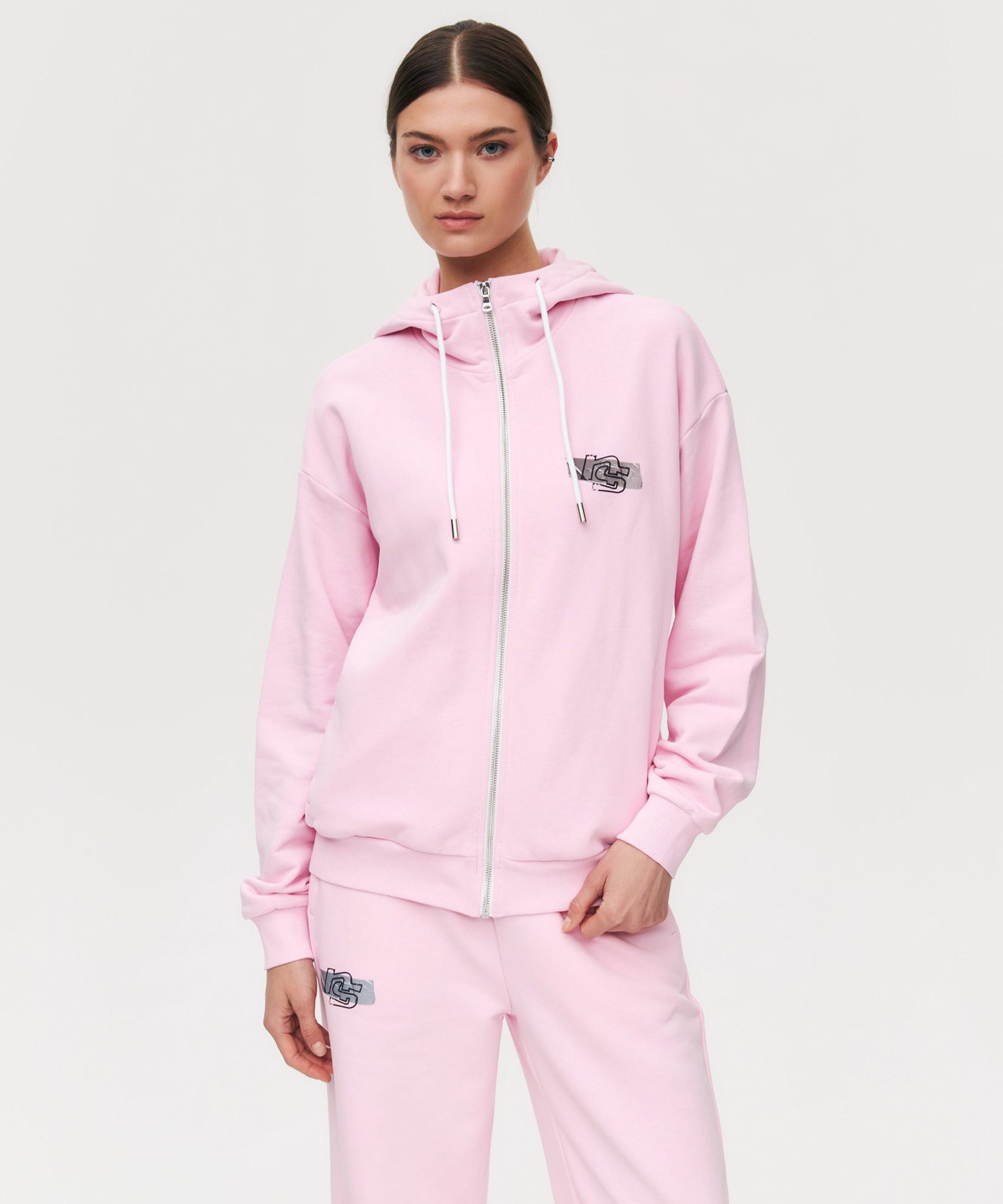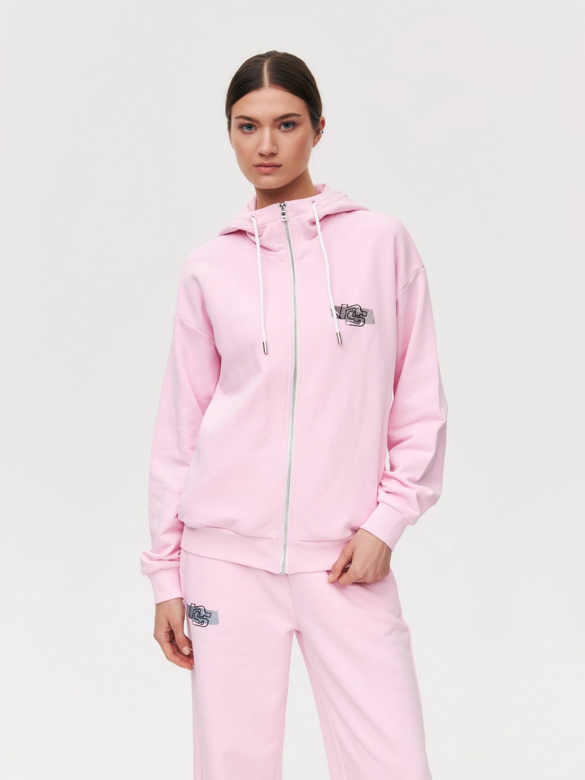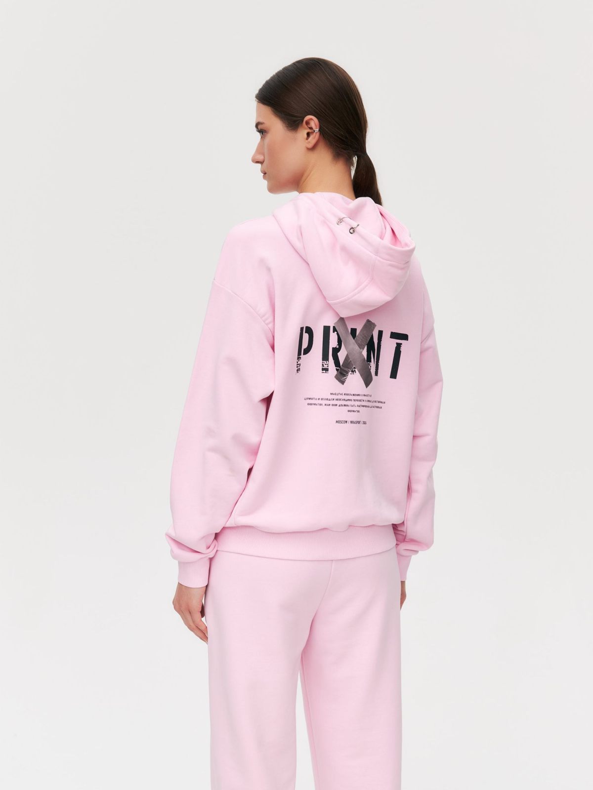 Женский худи на молнии свободного кроя с принтом на спине из коллекции Oops выполнен из материала, в составе которого 90% хлопка 10% полиэстра, что обеспечивает отличную посадку и долговечность изделия. На груди расположен принт с логотипом бренда в стиле Oops. На капюшоне есть несколько люверсов, которые можно использовать для пирсинга (колечки, брелки и любой другой ваш креатив). Модель представлена в двух цветах: трендовый шоколадный и нежный розовый. Стильный худи с объемным капюшоном, спущенным плечом и с боковыми карманами отлично дополнит ваш классный образ. В комплекте к худи в ассортименте представлены брюки W4OPS83.