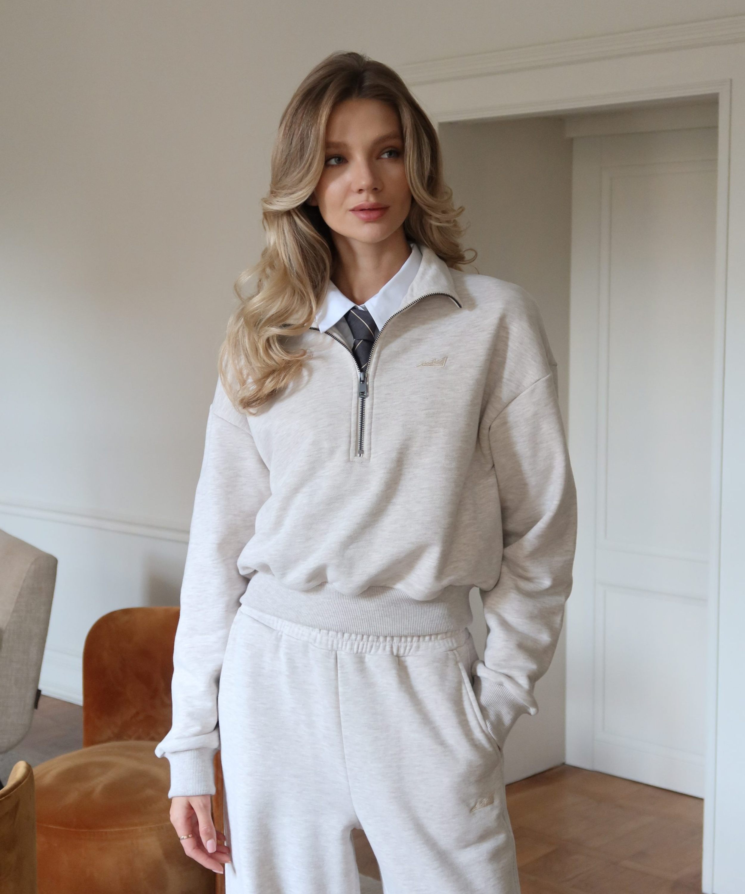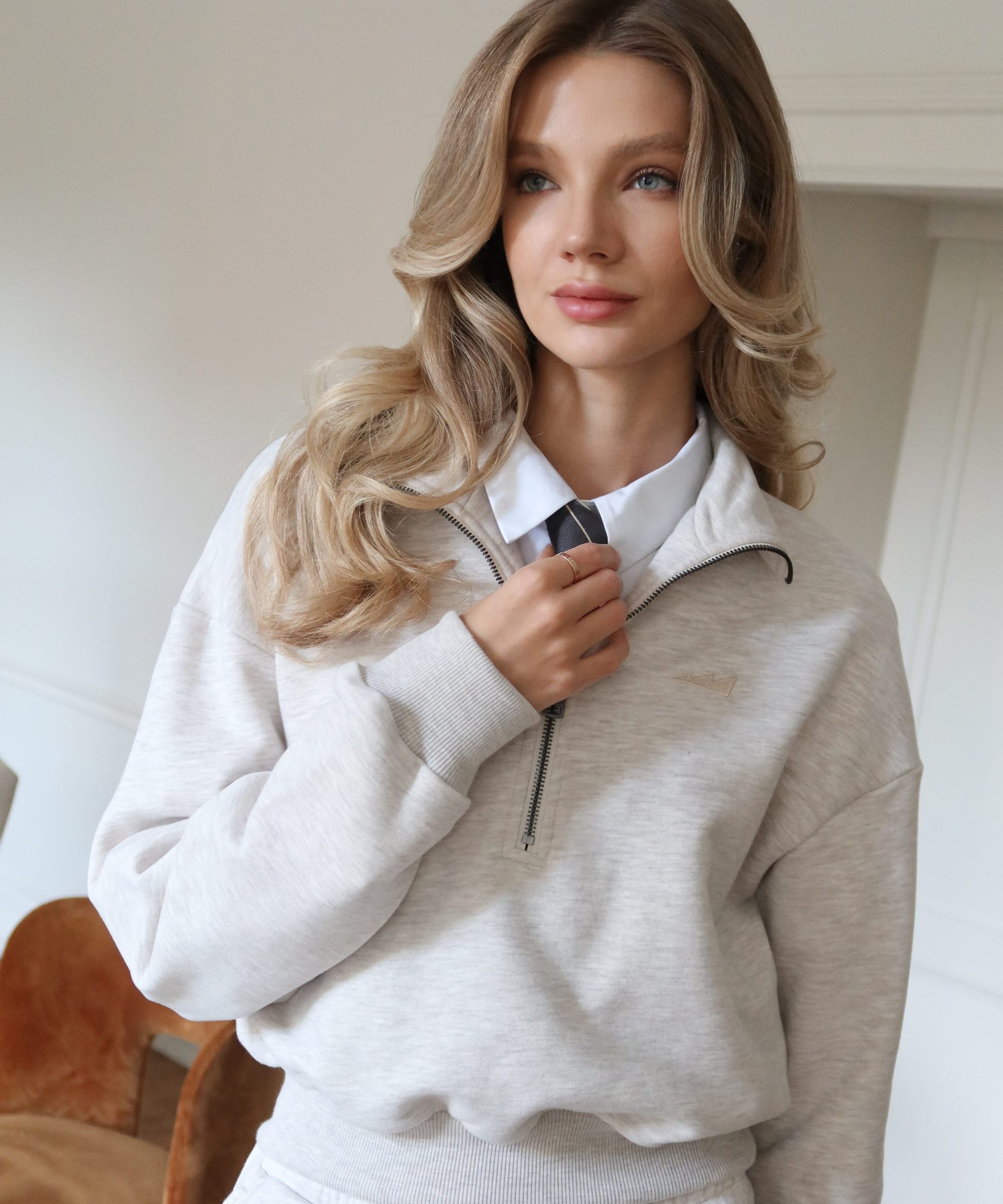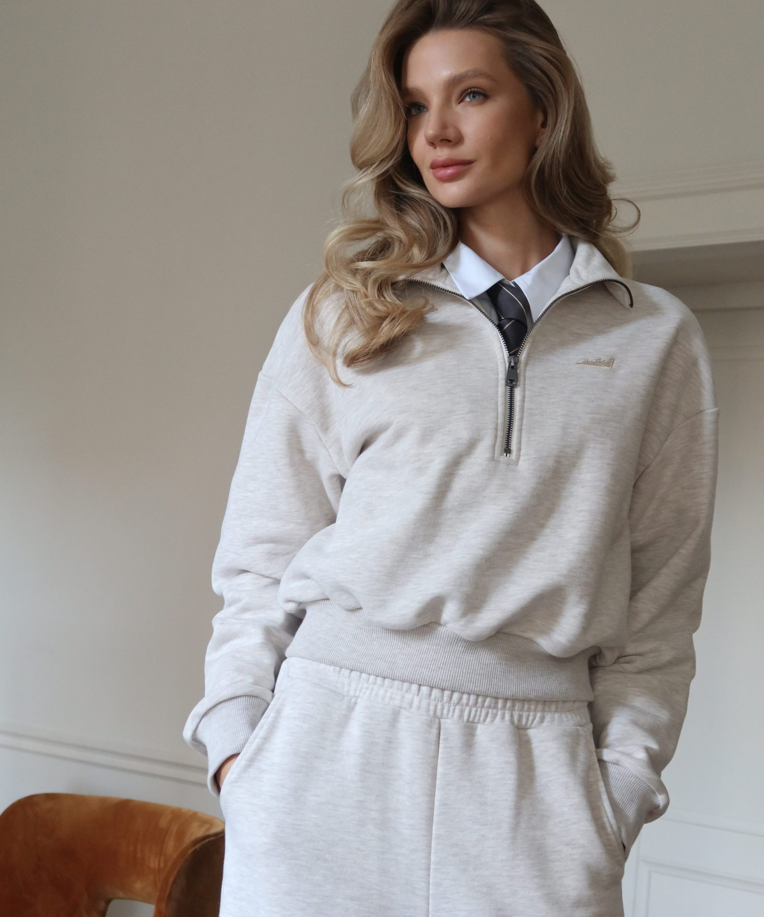 Женский джемпер half-zip с воротником-стойкой и контрастным логотипом-вышивкой на груди. Джемпер выполнен из материала с эффектом peach, в состав которого входит 90% хлопка и 10% полиэстра, поэтому джемпер невероятно мягкий и приятный на ощупь. Данная модель подчеркивает ваш уникальный стиль и дополнит любой ваш образ.