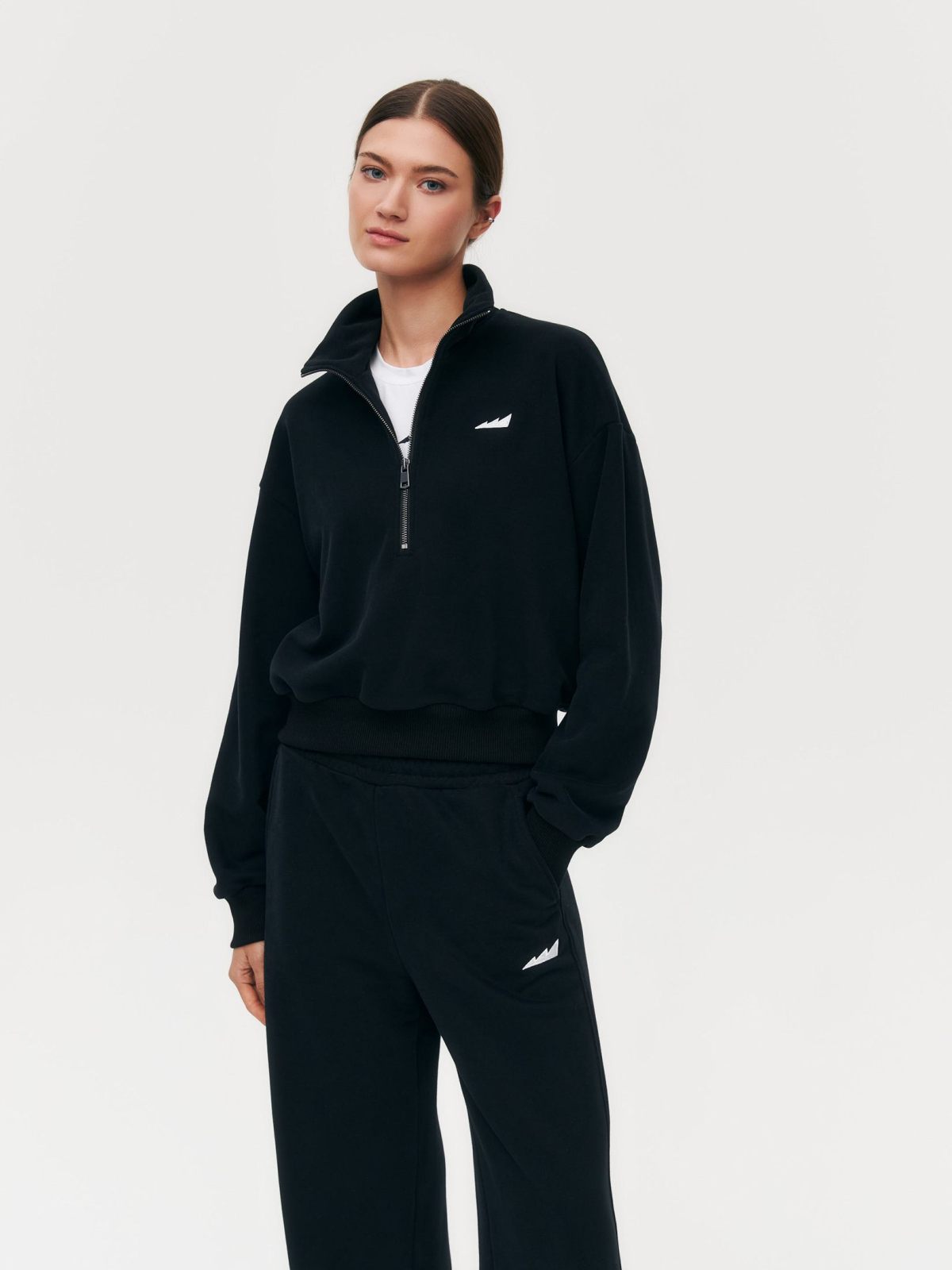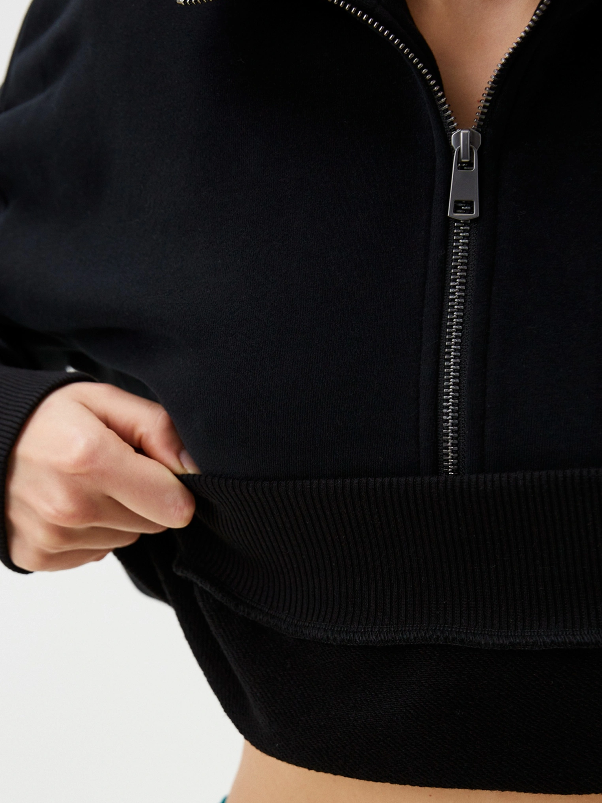 Женский джемпер half-zip с воротником-стойкой и контрастным логотипом-вышивкой на груди. Джемпер выполнен из материала с эффектом peach, в состав которого входит 90% хлопка и 10% полиэстера, поэтому джемпер невероятно мягкий и приятный на ощупь. Данная модель подчеркивает ваш уникальный стиль и дополнит любой ваш образ.