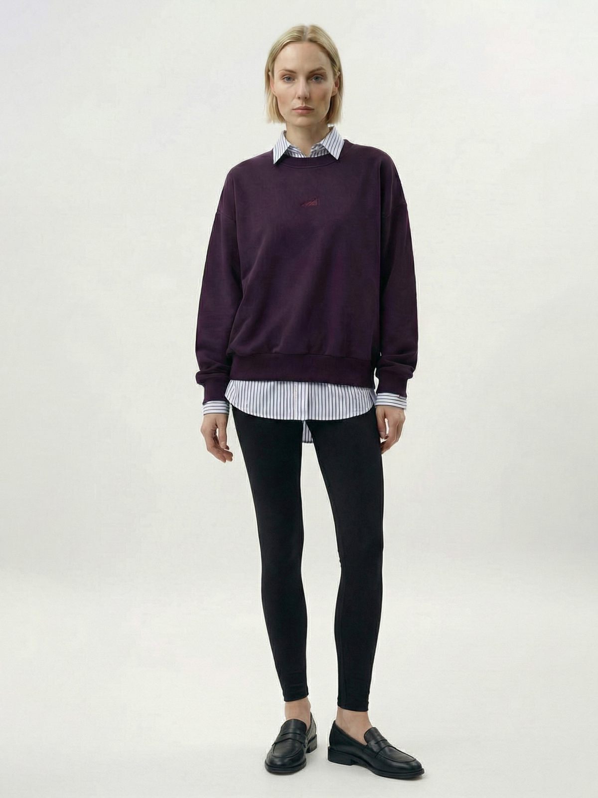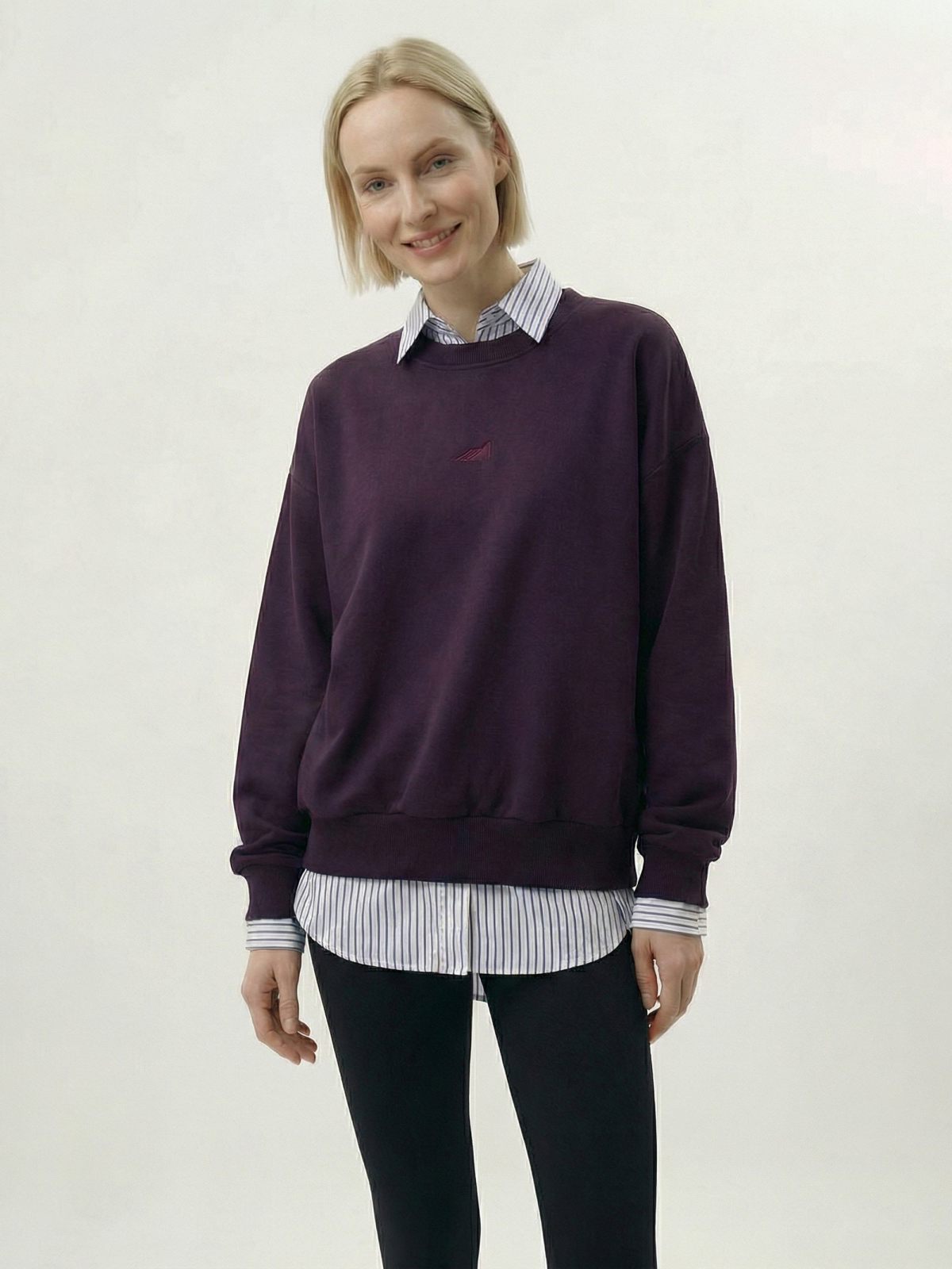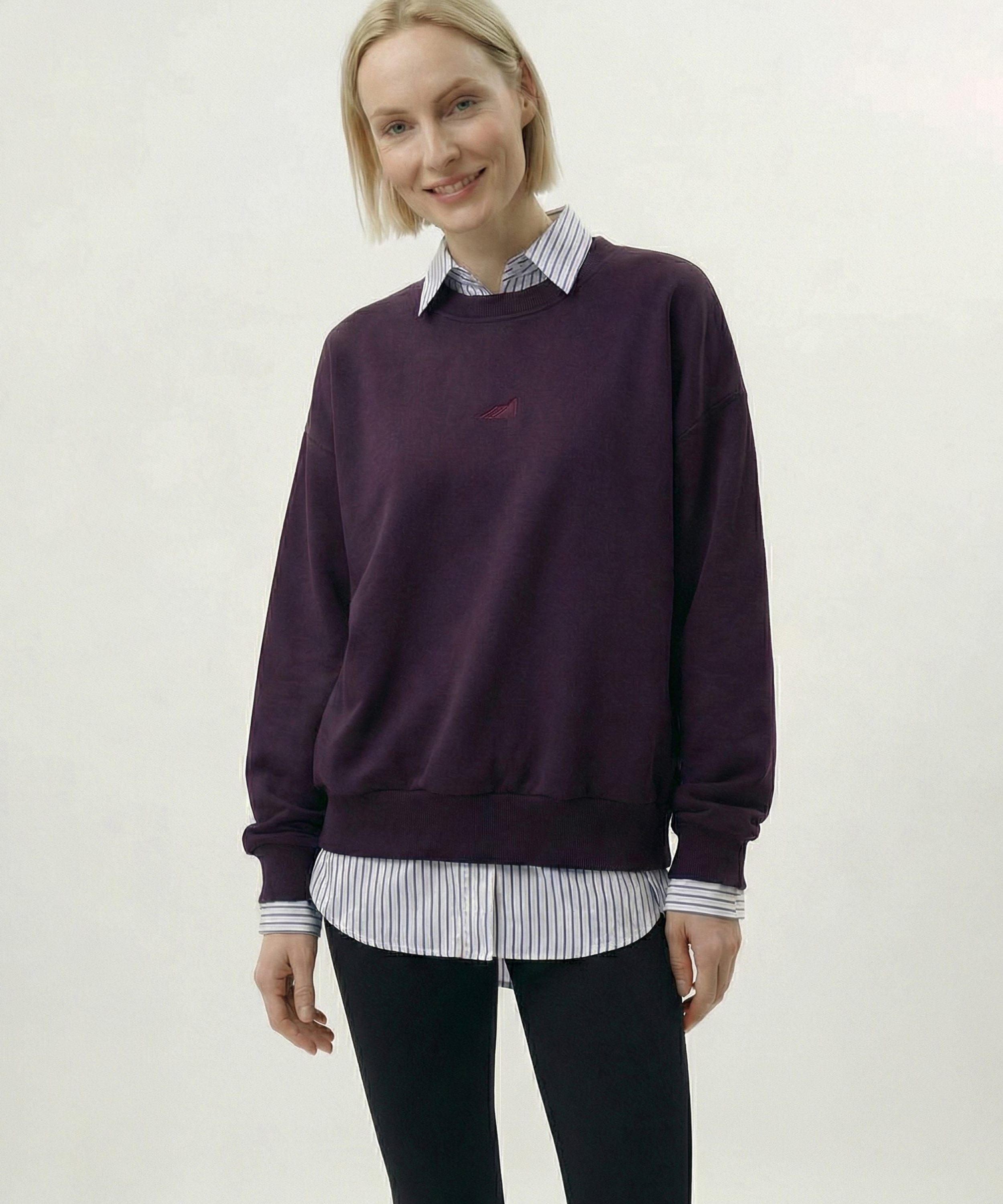 Женский свитшот свободного кроя выполнен из материала с эффектом peach, в состав которого входит 90% хлопка и 10% полиэстера, поэтому джемпер невероятно мягкий и приятный на ощупь. На груди расположена тональная вышивка с логотипом бренда. Насыщенный осенний цвет сливы подчеркивает ваш уникальный стиль.