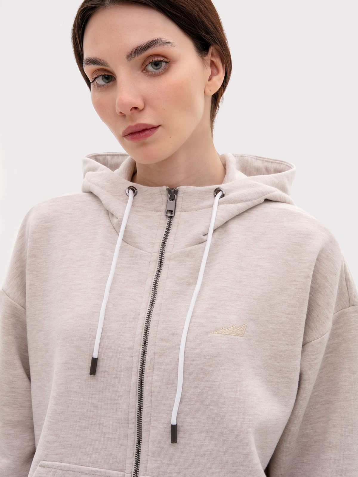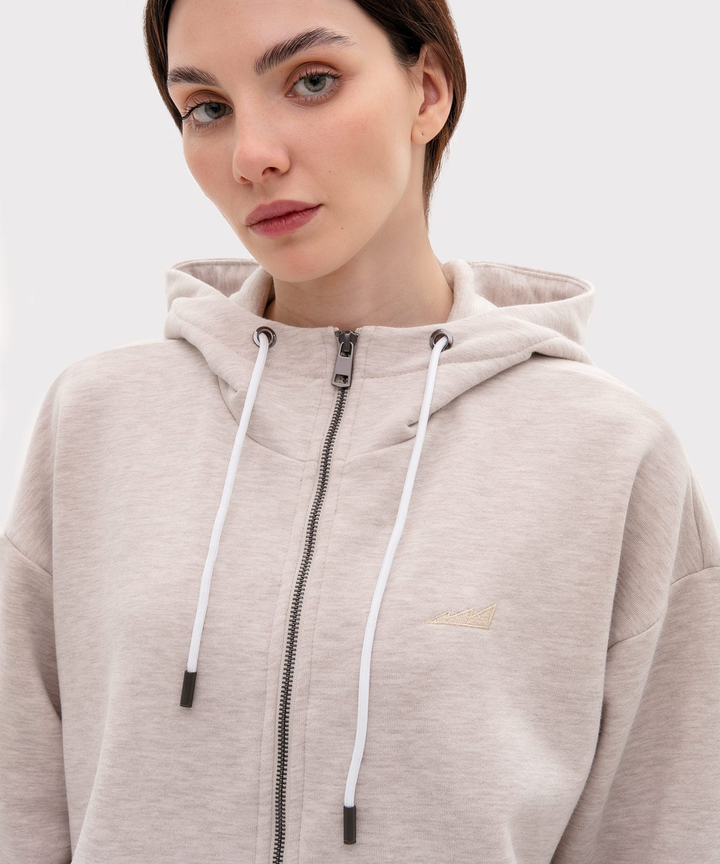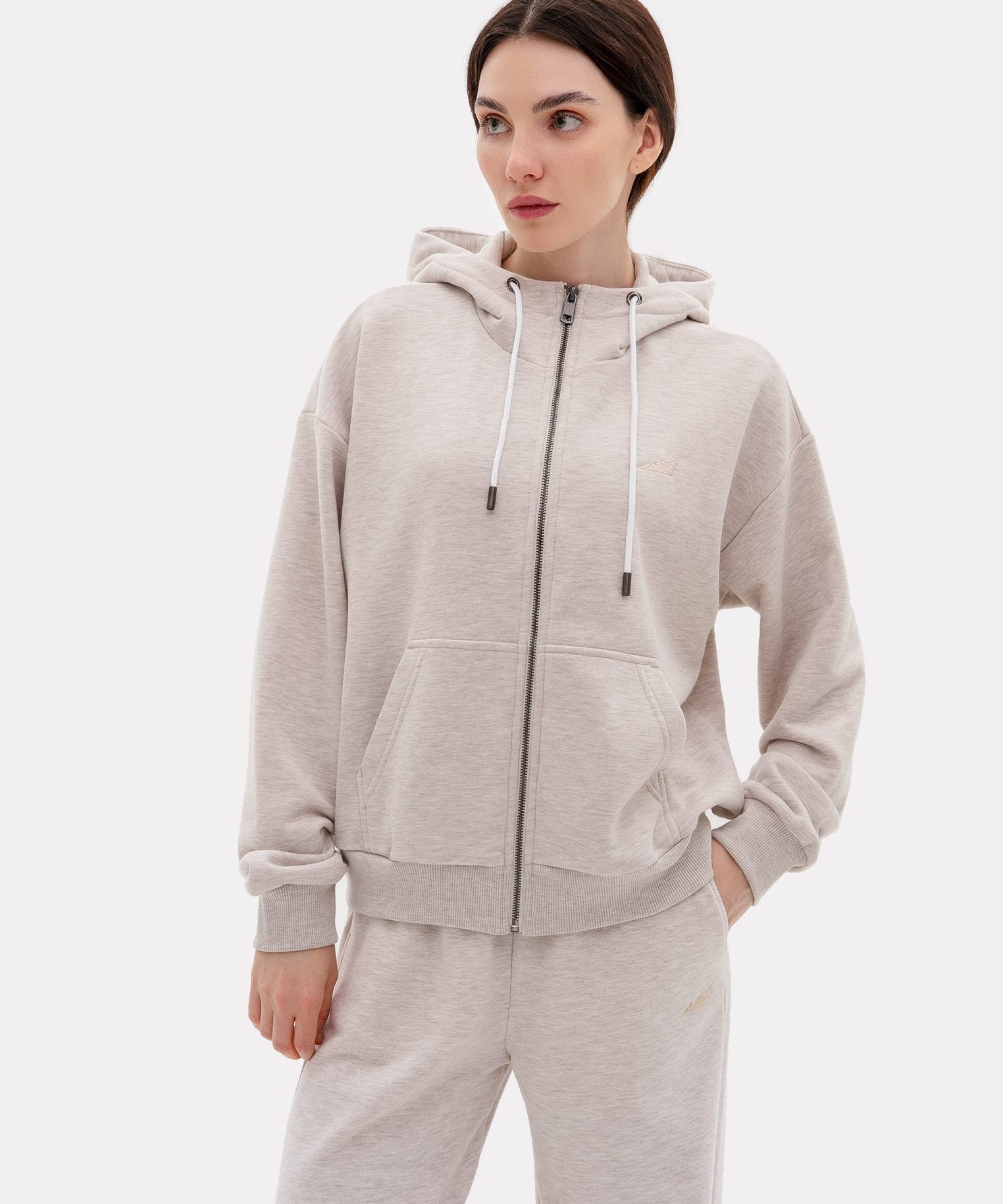 Женский классический худи на молнии прямого кроя выполнен из материала с эффектом peach, в состав которого входит 90% хлопка и 10% полиэстера, поэтому данная модель невероятно мягкая и приятная на ощупь. Худи имеет два кармана кенгуру, шнурок для утяжки капюшона и лаконичную тональную вышивку с логотипом бренда на груди. Невероятно мягкий и комфортный худи отлично подойдет для прохладной погоды, а классический цвет бежевый меланж подчеркивает ваш уникальный стиль.