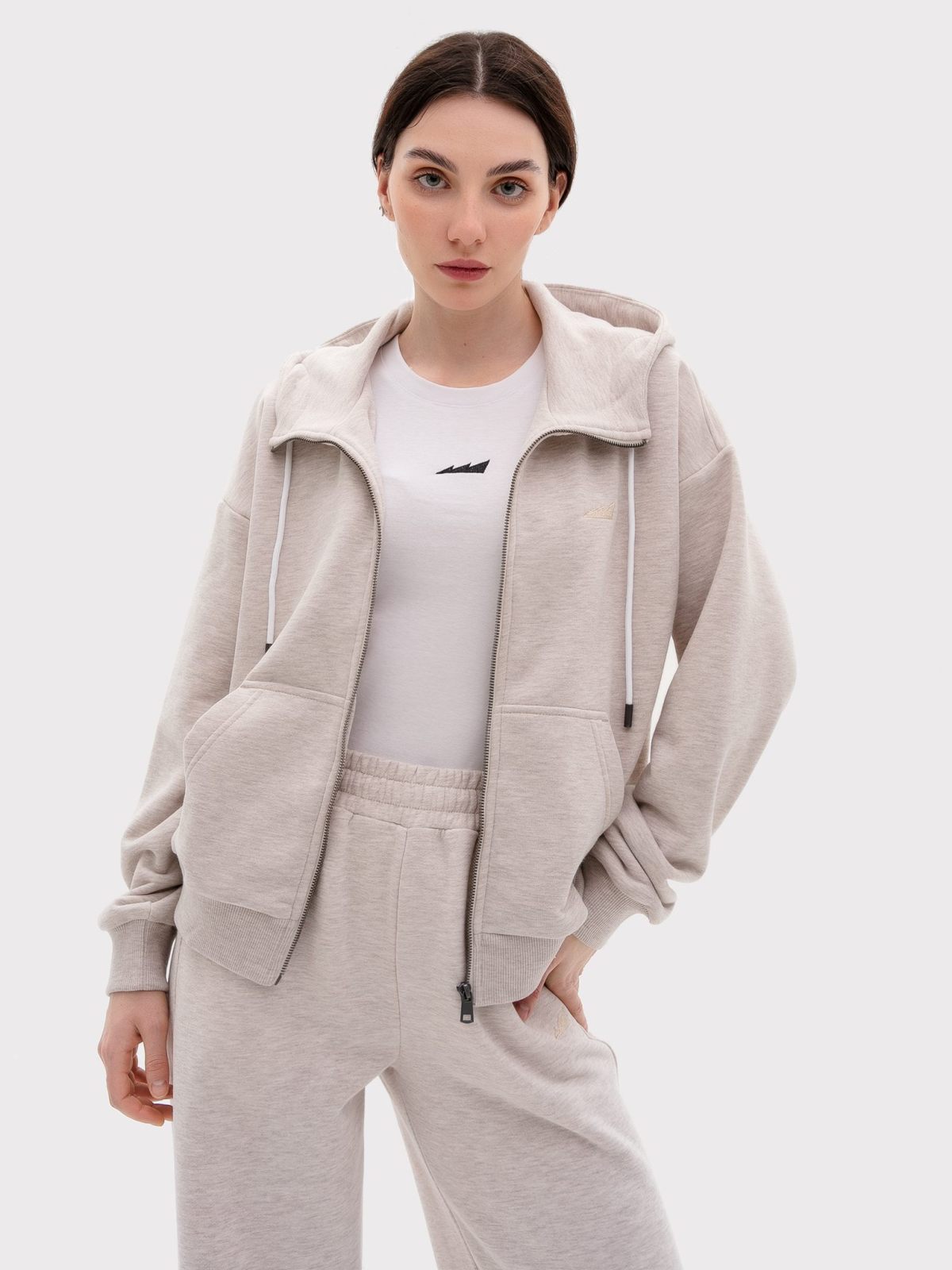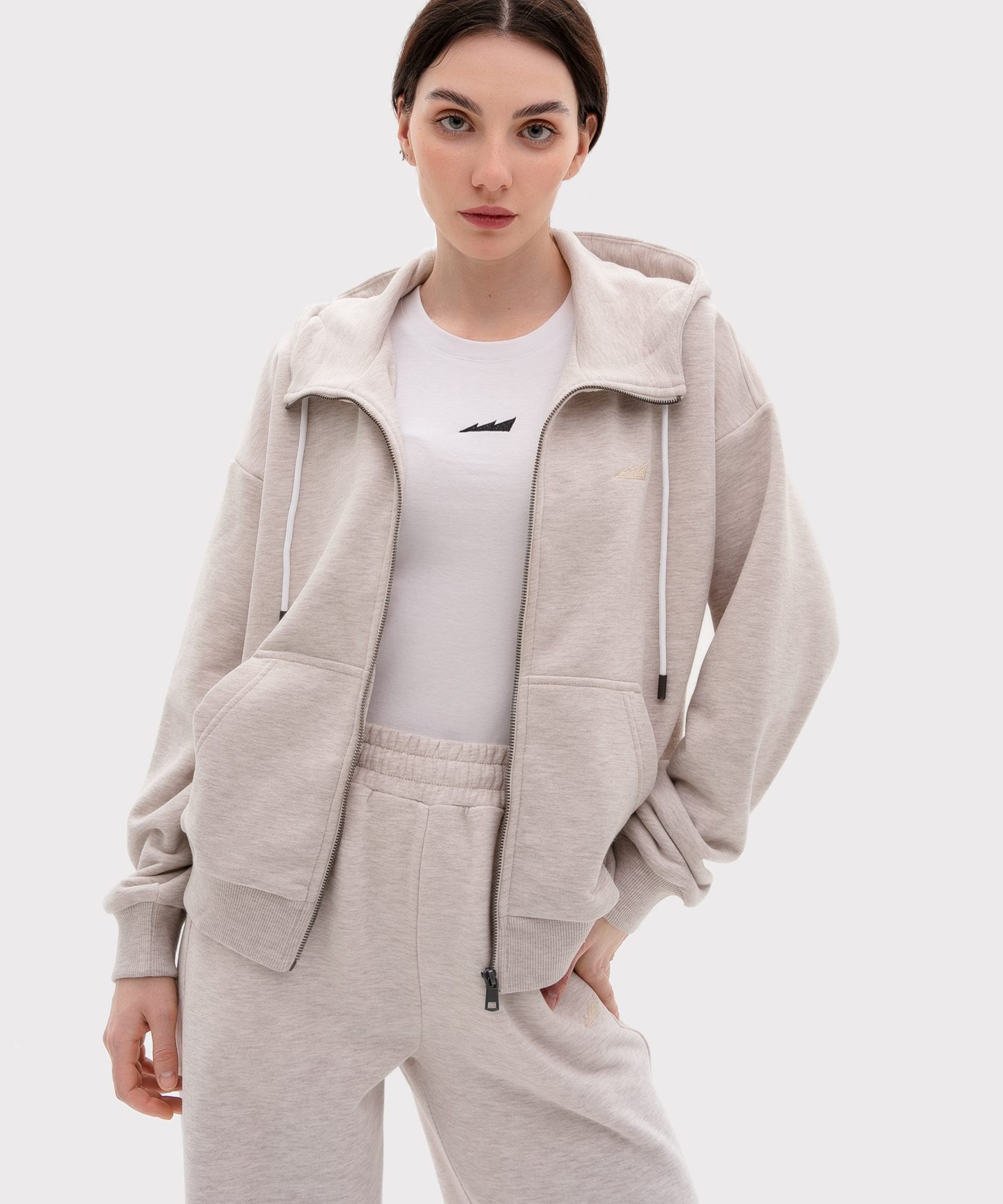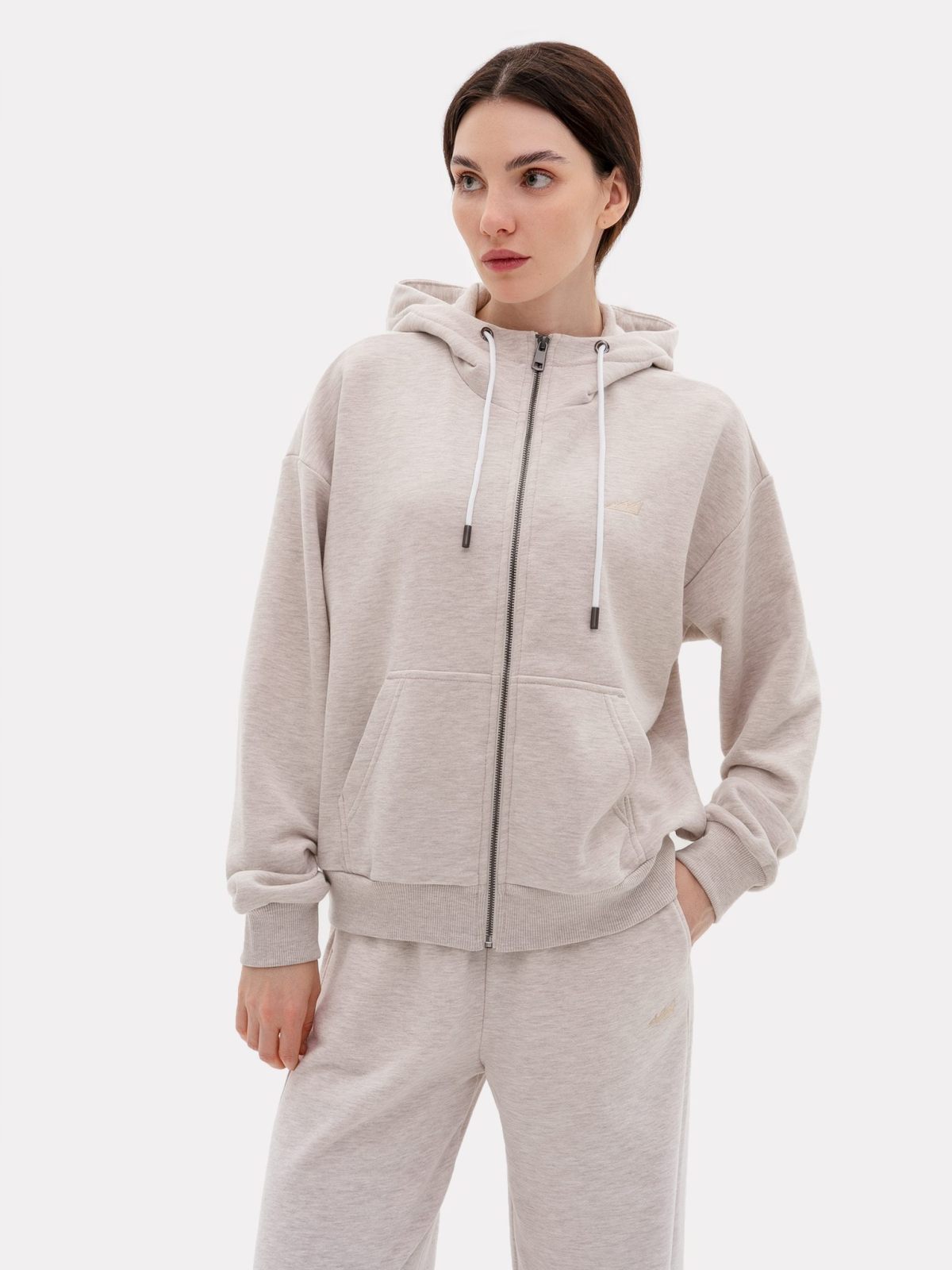 Женский классический худи на молнии прямого кроя выполнен из материала с эффектом peach, в состав которого входит 90% хлопка и 10% полиэстера, поэтому данная модель невероятно мягкая и приятная на ощупь. Худи имеет два кармана кенгуру, шнурок для утяжки капюшона и лаконичную тональную вышивку с логотипом бренда на груди. Невероятно мягкий и комфортный худи отлично подойдет для прохладной погоды, а классический цвет бежевый меланж подчеркивает ваш уникальный стиль.