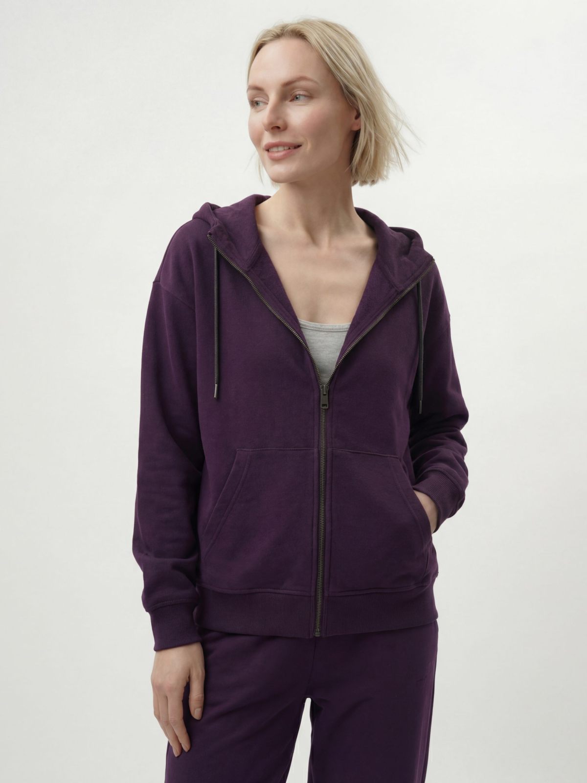 Женский классический худи на молнии прямого кроя выполнен из материала с эффектом peach, в состав которого входит 90% хлопка и 10% полиэстера, поэтому данная модель невероятно мягкая и приятная на ощупь. Худи имеет два кармана кенгуру, шнурок для утяжки капюшона и лаконичную тональную вышивку с логотипом бренда на груди. Невероятно мягкий и комфортный худи отлично подойдет для прохладной погоды, а насыщенный осенний цвет сливы подчеркивает ваш уникальный стиль.
