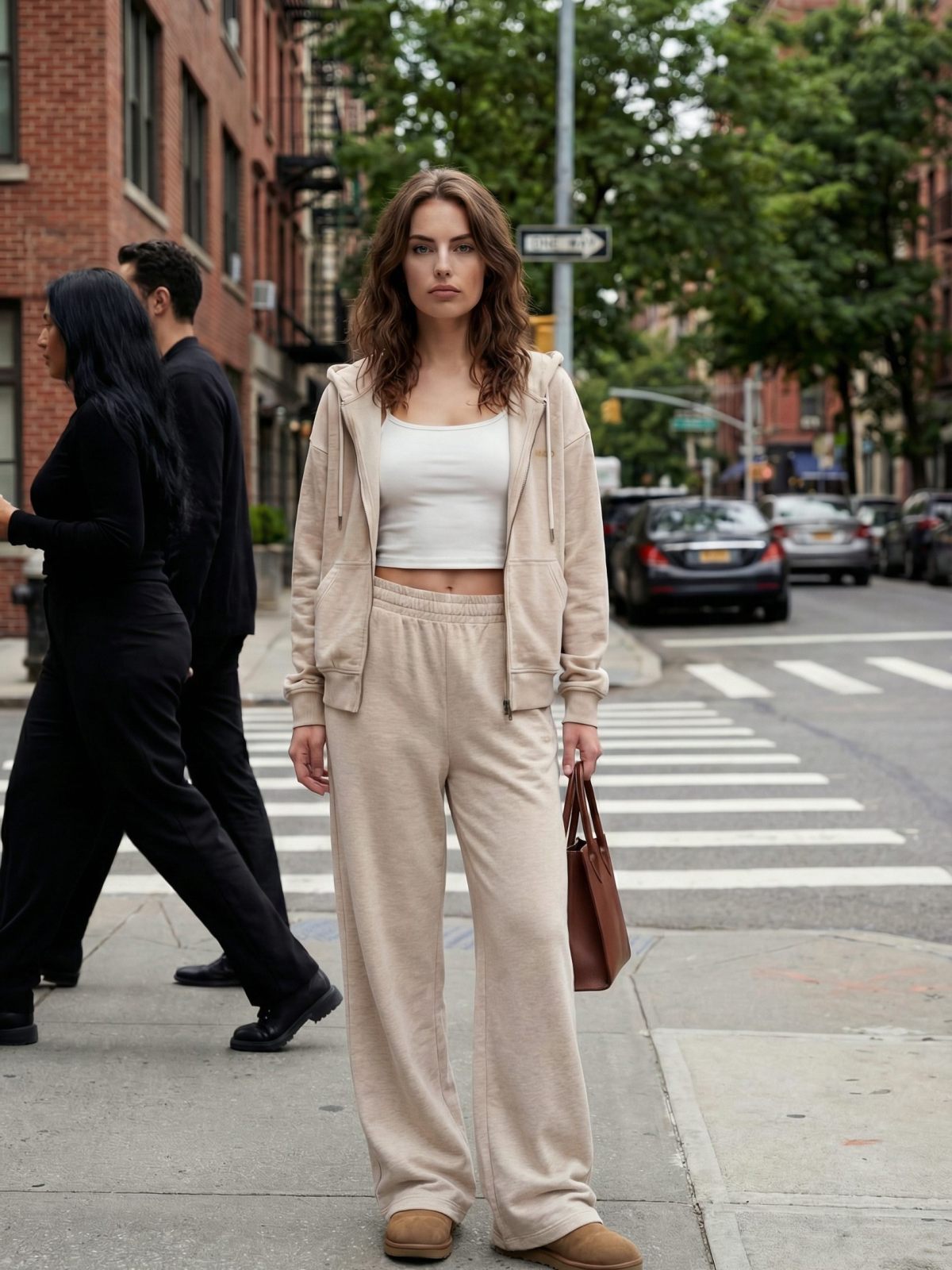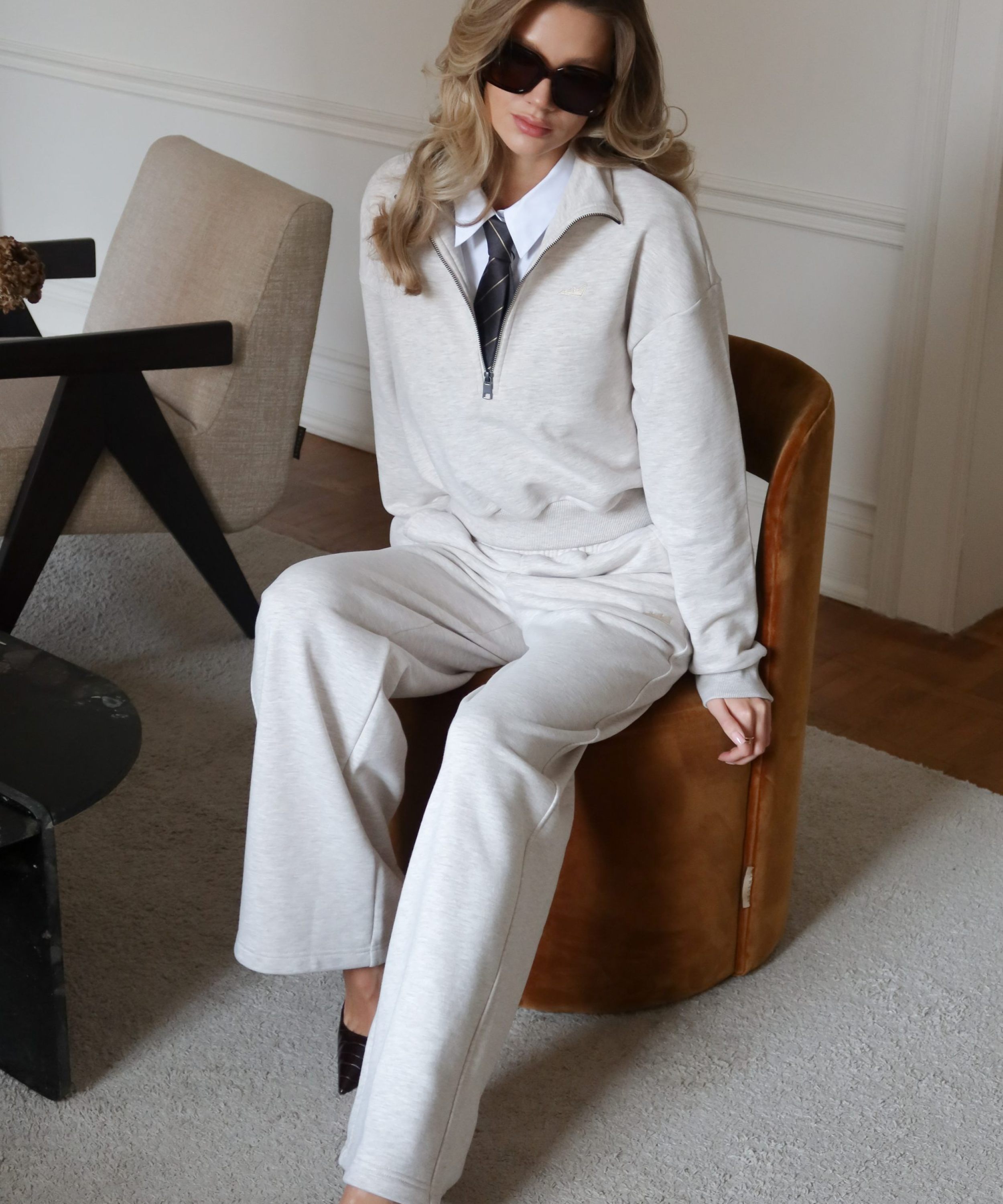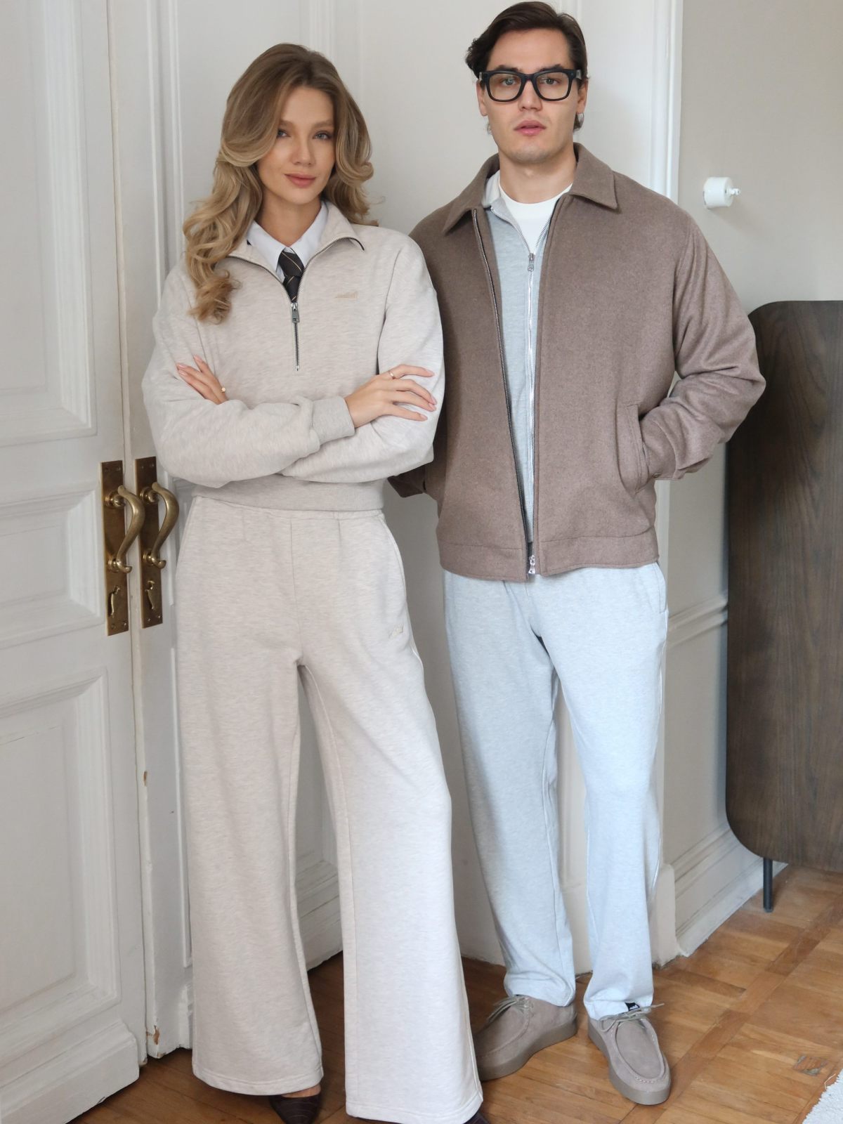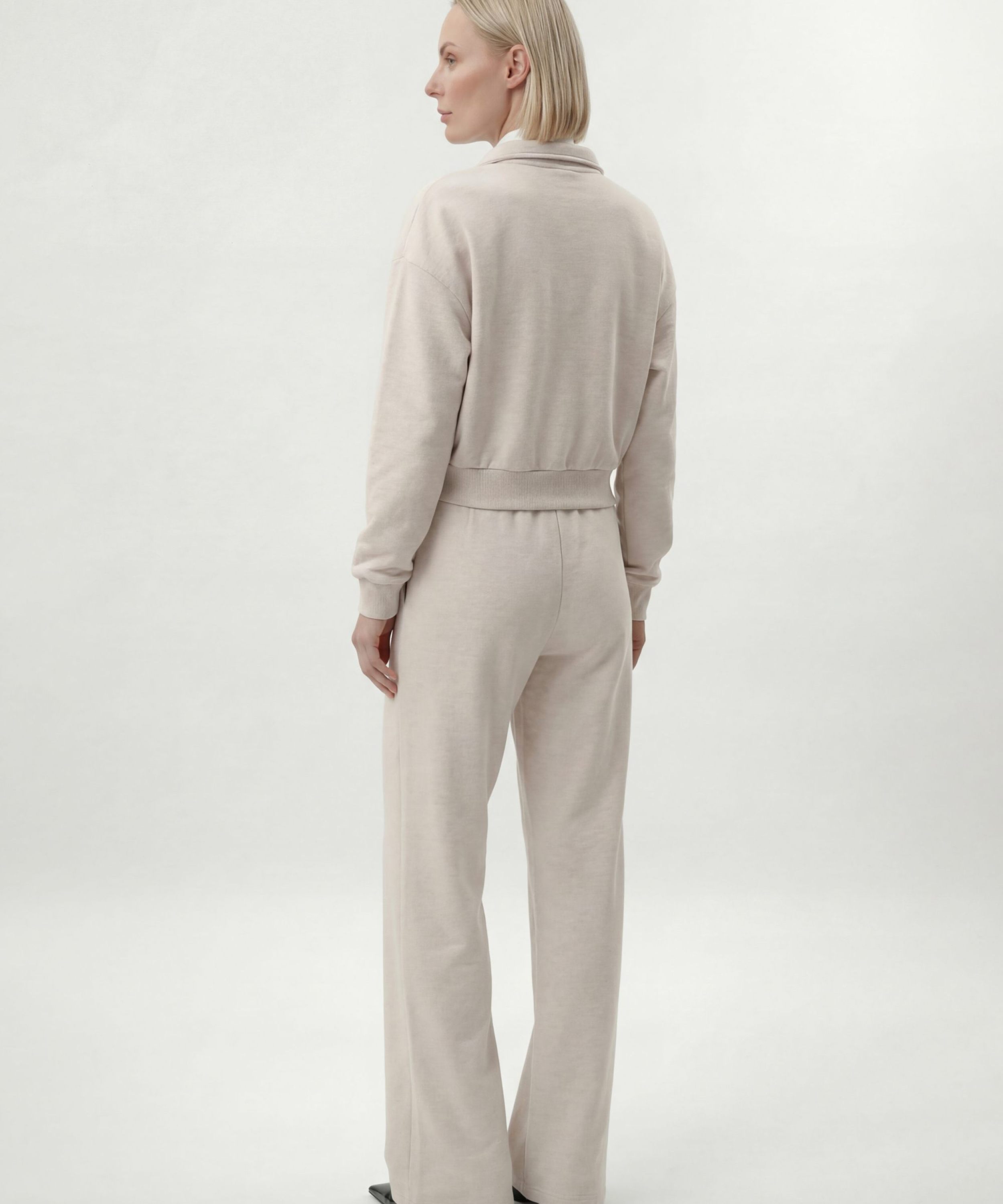 Широкие прямые женские брюки свободного силуэта выполнены из материала с эффектом peach, в состав которого входит 90% хлопка и 10% полиэстера, поэтому данная модель невероятно мягкая и приятная на ощупь. Брюки имеют два боковых кармана для хранения личных вещей, на левой ноге расположена контрастная вышивка с логотипом бренда. Эластичный шнур в поясе помогает регулировать посадку. Классический цвет бежевый меланж отлично подойдет для стильных повседневных образов.