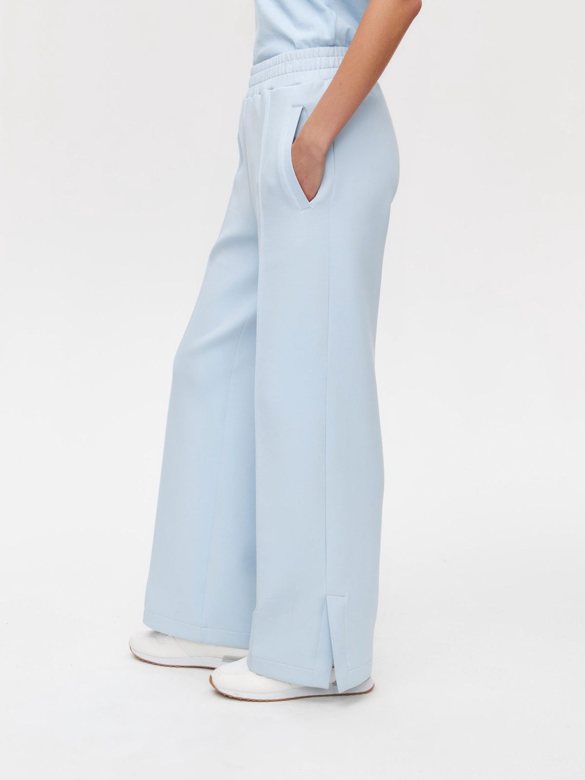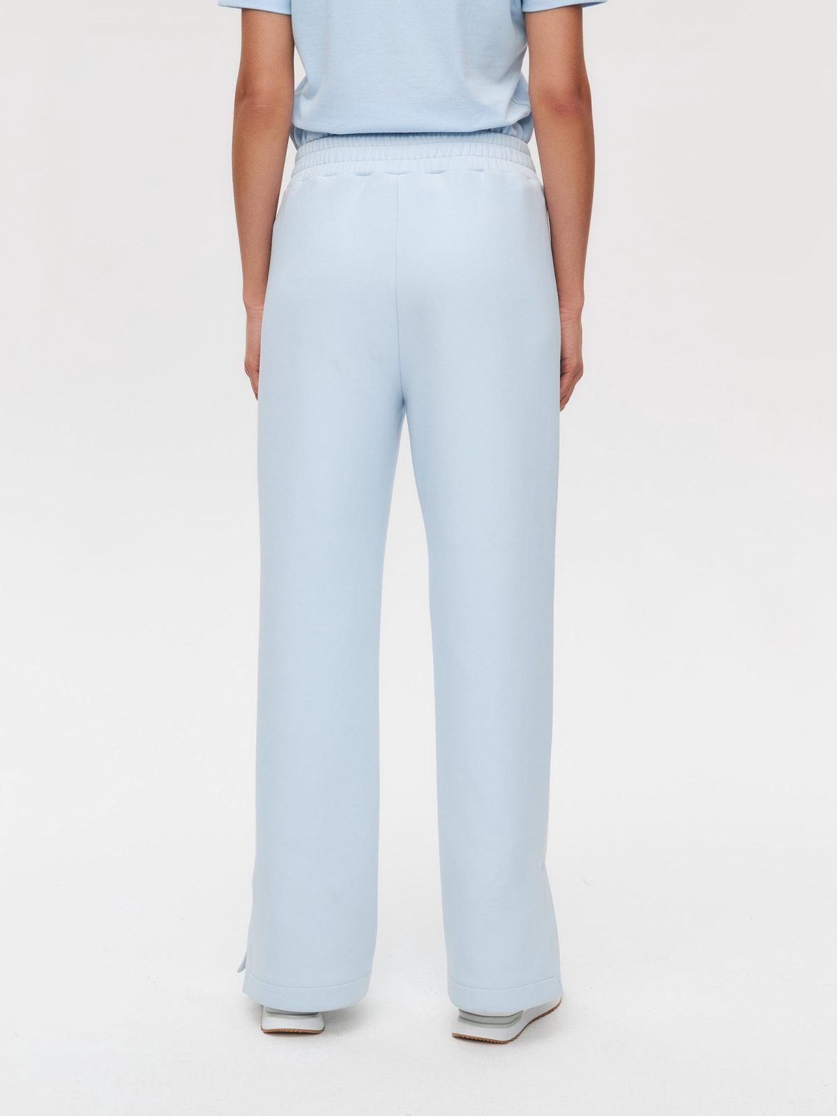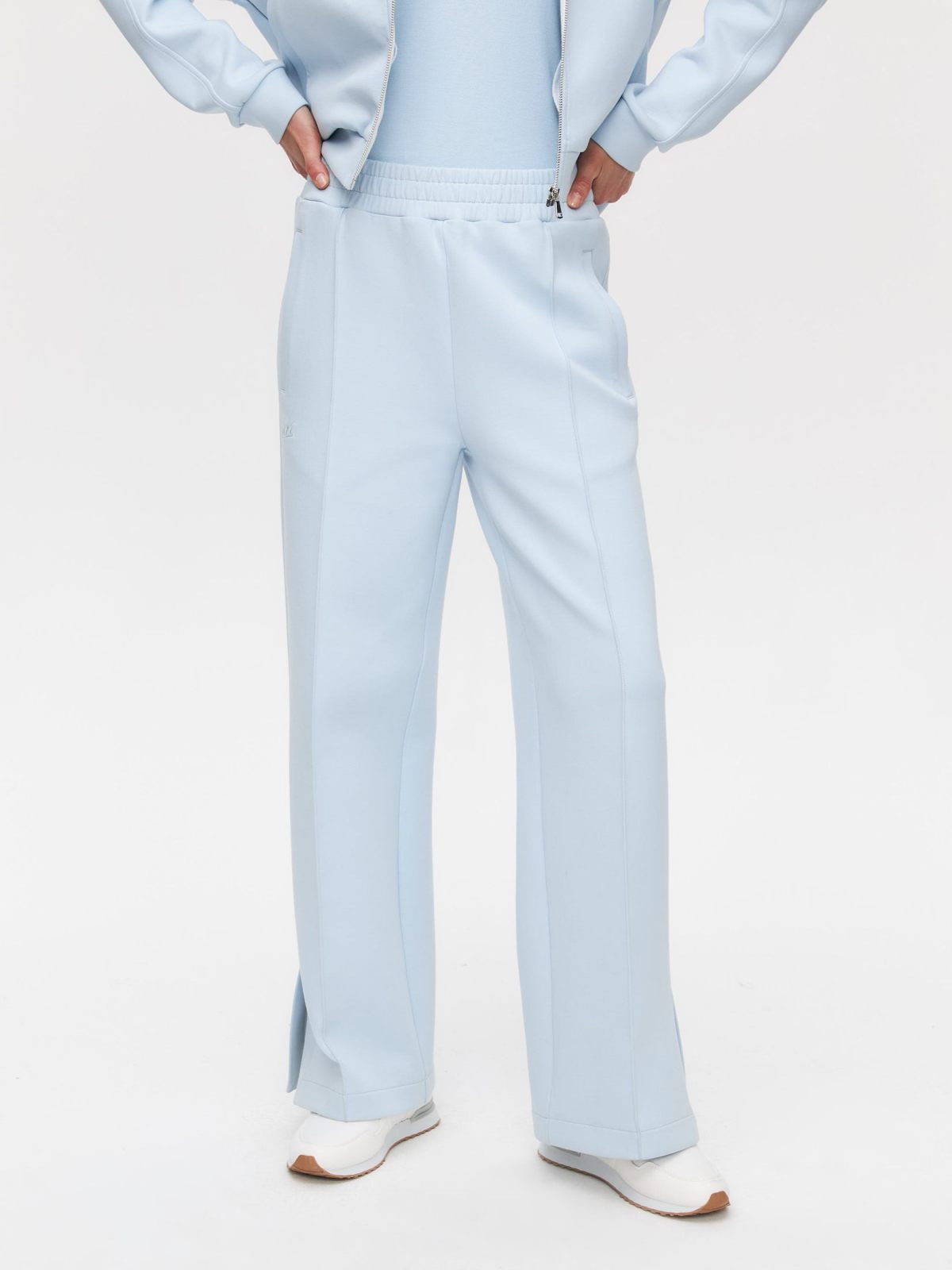 Женские широкие прямые брюки со стрелками в классическом стиле из новой коллекции Classic Pure выполнены из материала скуба, в состав которого входит 82% хлопка, 12% полиэстера, 6% эластана, за счет чего брюки отлично держат форму и долговечные в носке. Благодаря большой доле хлопка в изделии, данная скуба является гипоаллергенной. Посадка брюк - средняя. Брюки представлены в трех цветах: классический черный, нежный голубой и сочный красный. На левой ноге расположена лаконичная тональная вышивка с логотипом бренда. Внизу брюк по бокам имеются небольшие разрезы, что делает силуэт более женственным и игривым. В комплекте к брюкам в ассортименте имеются джемперы W5CLP33, худи на молнии с капюшоном W5CLP34 и жилеты W5CLP21. Костюм отлично подойдет не только для повседневных образов, но и для офиса, так как отлично сочетаются с классической белой рубашкой.
