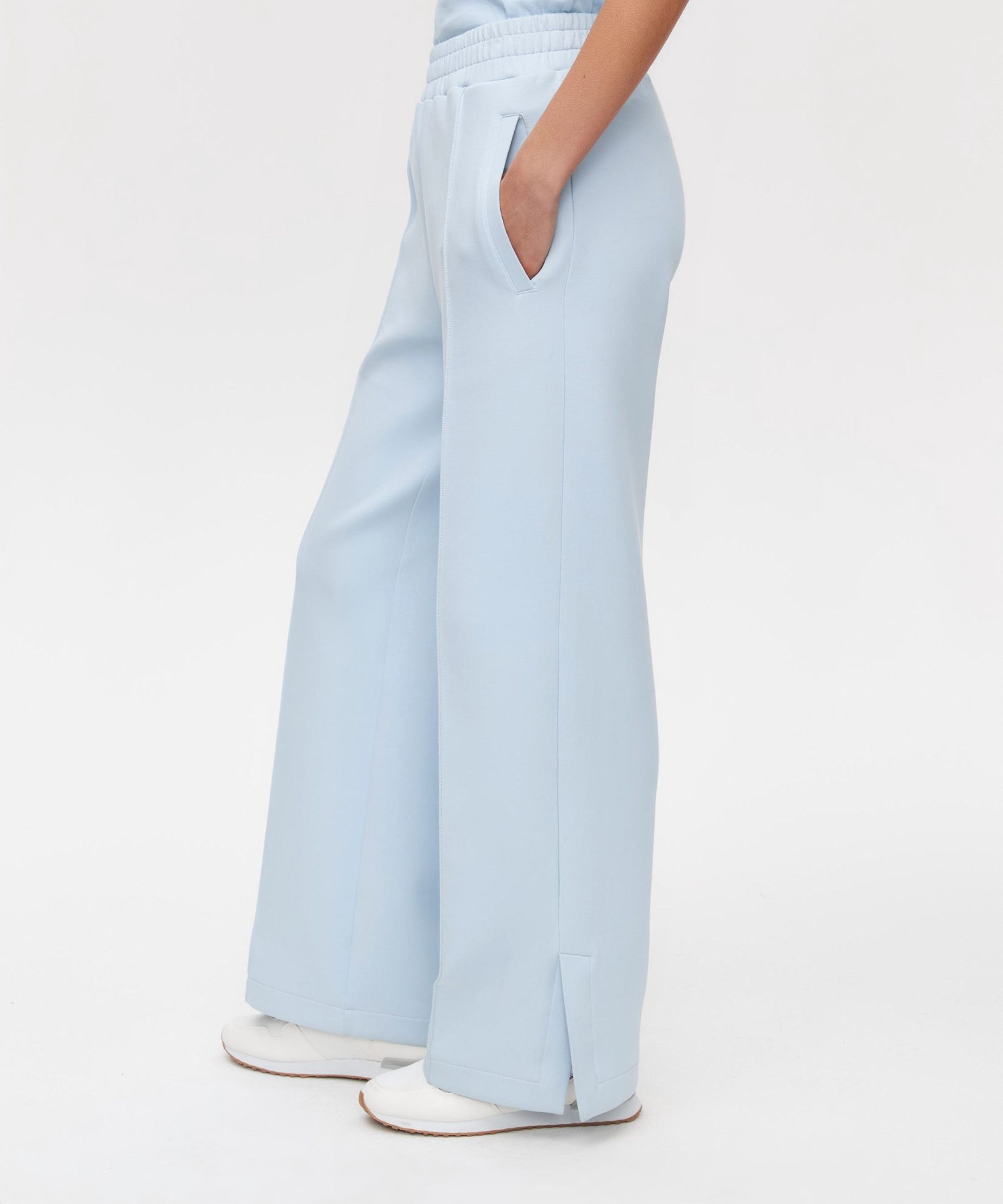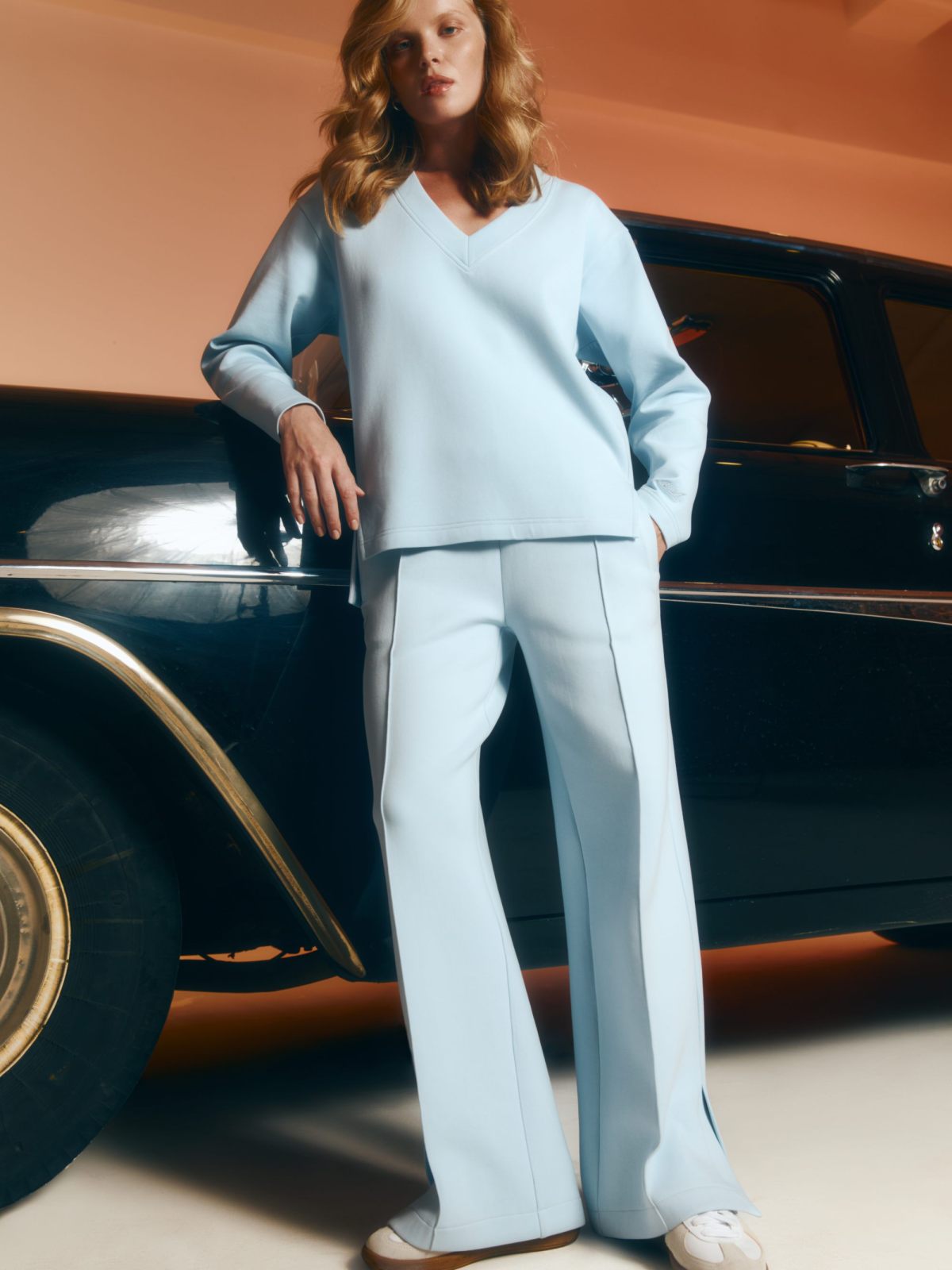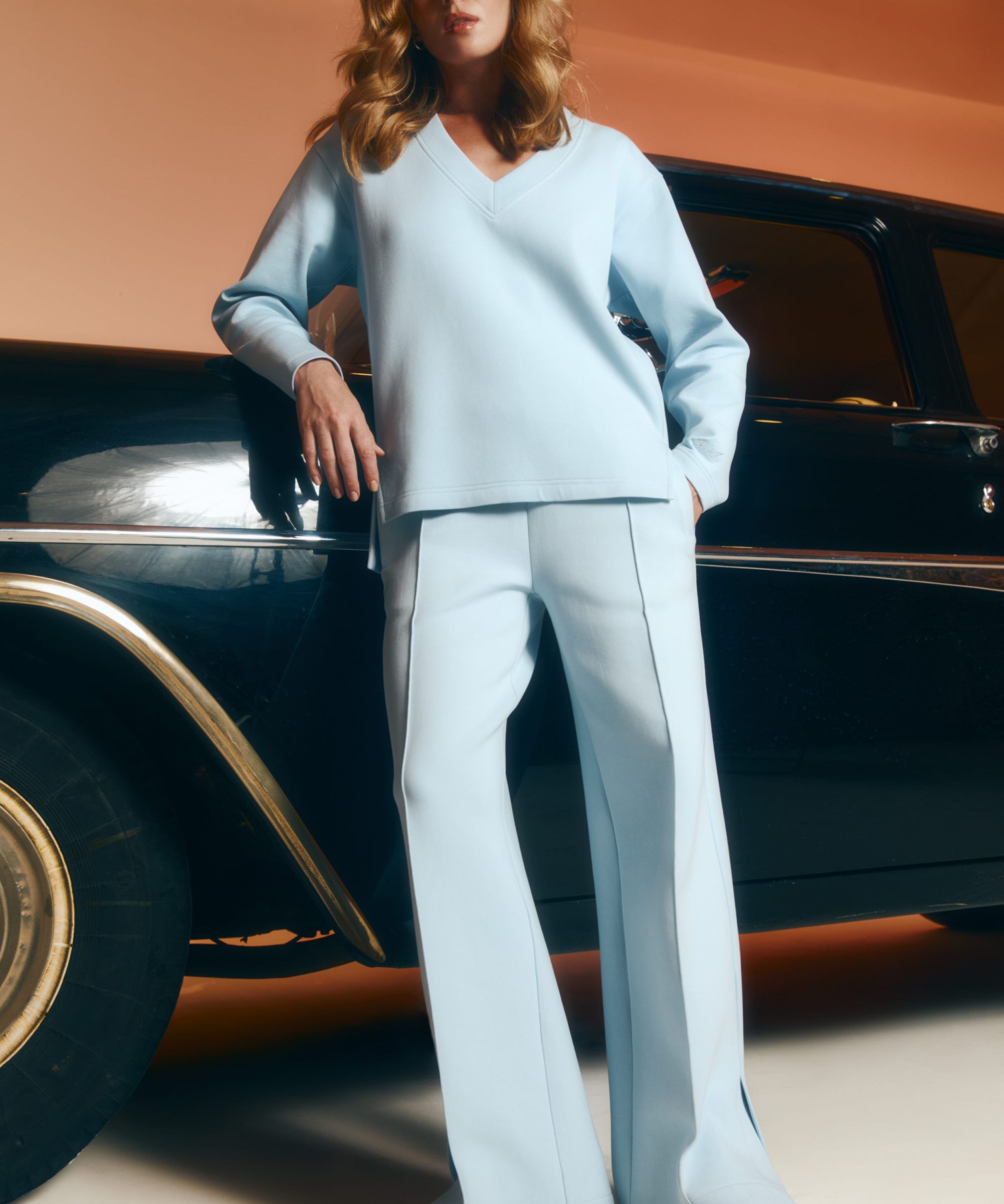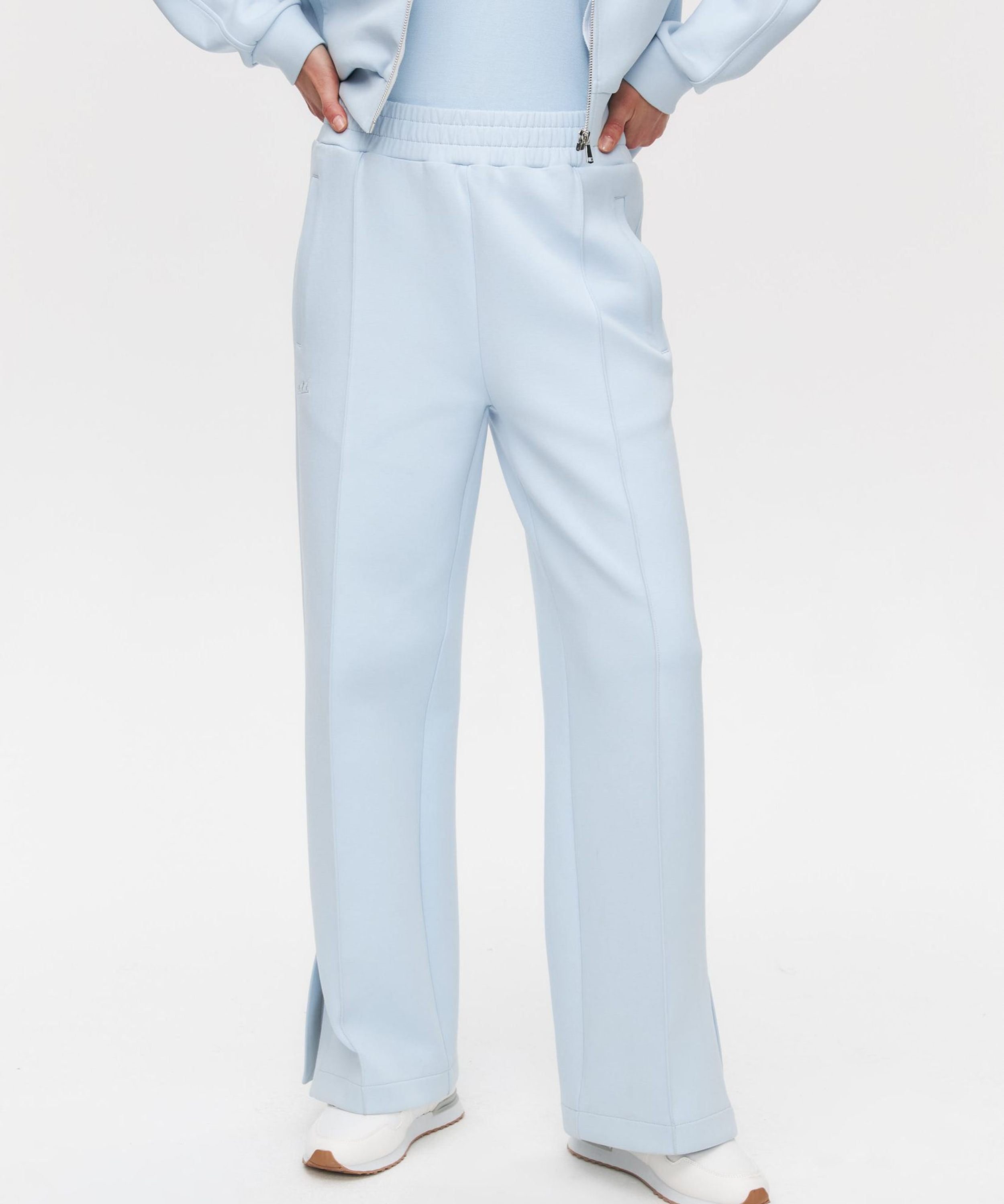 Женские широкие прямые брюки со стрелками в классическом стиле из новой коллекции Classic Pure выполнены из материала скуба, в состав которого входит 82% хлопка, 12% полиэстера, 6% эластана, за счет чего брюки отлично держат форму и долговечные в носке. Благодаря большой доле хлопка в изделии, данная скуба является гипоаллергенной. Посадка брюк - средняя. Брюки представлены в трех цветах: классический черный, нежный голубой и сочный красный. На левой ноге расположена лаконичная тональная вышивка с логотипом бренда. Внизу брюк по бокам имеются небольшие разрезы, что делает силуэт более женственным и игривым. В комплекте к брюкам в ассортименте имеются джемперы W5CLP33, худи на молнии с капюшоном W5CLP34 и жилеты W5CLP21. Костюм отлично подойдет не только для повседневных образов, но и для офиса, так как отлично сочетаются с классической белой рубашкой.