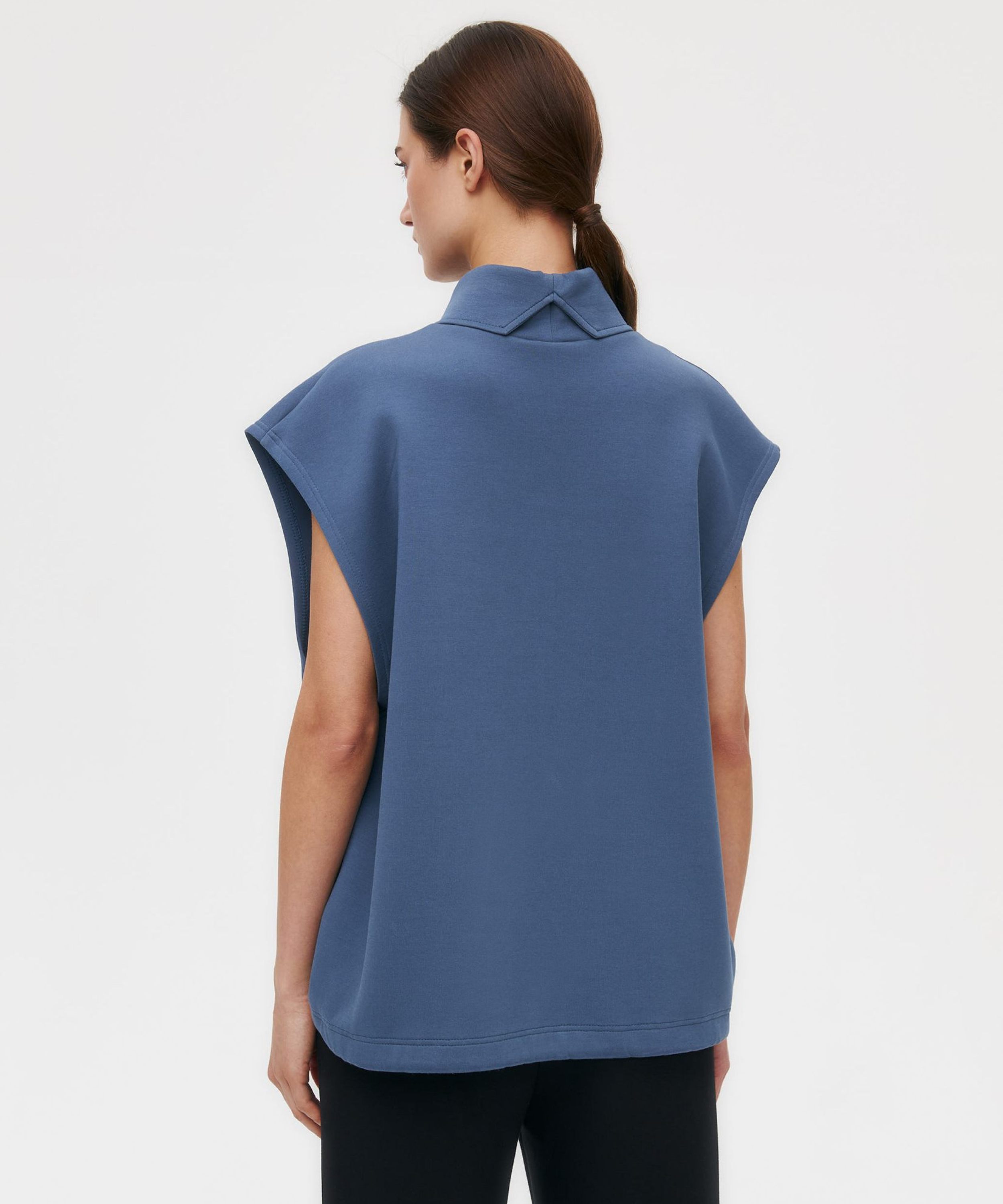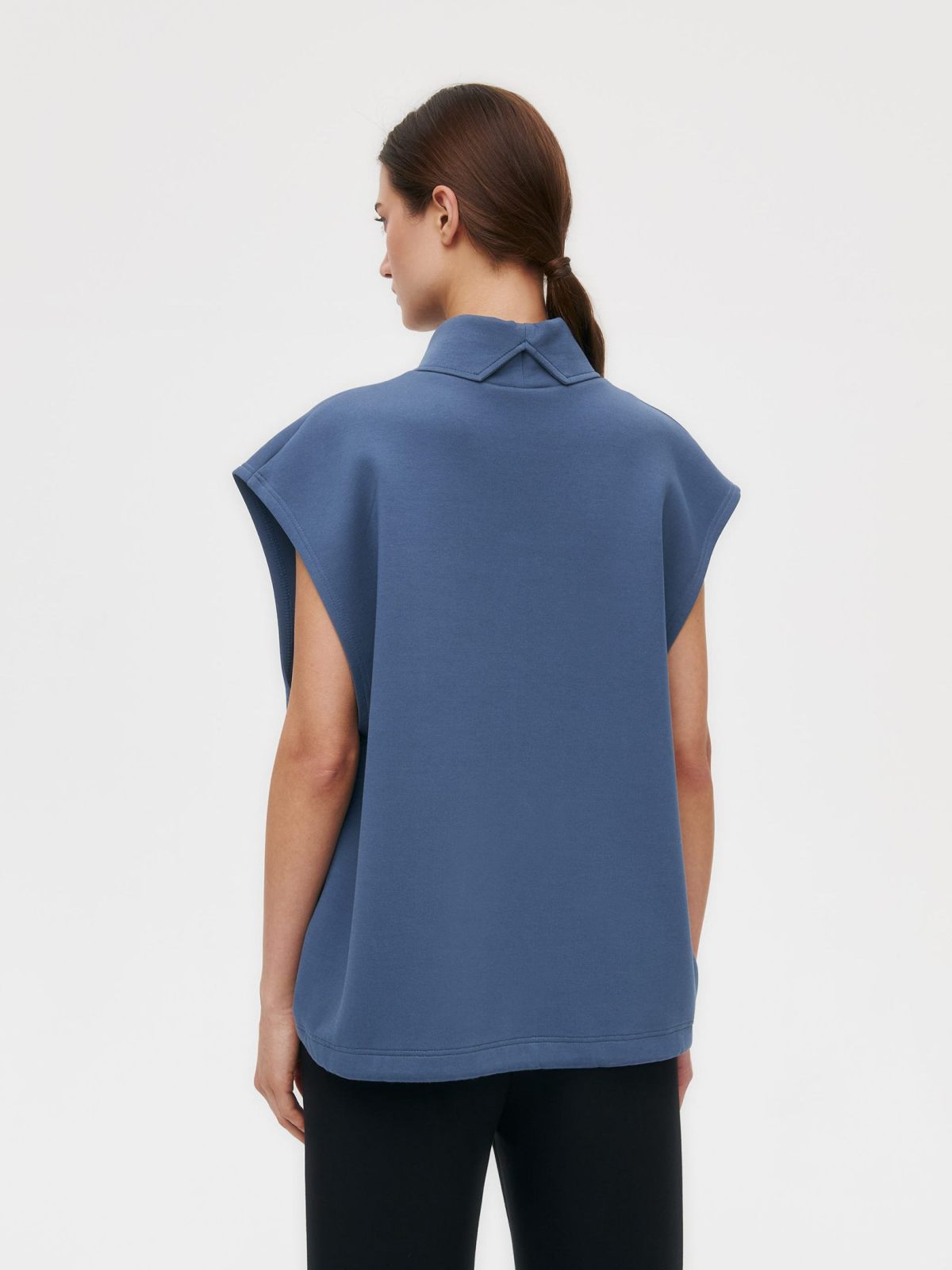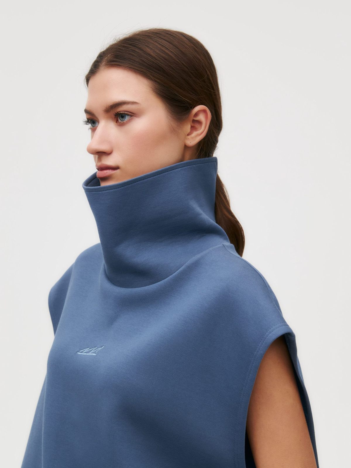 Oversize жилет необычного кроя из новой коллекции Classic Pure выполнен из материала скуба, в состав которого входит 82% хлопка, 12% полиэстера, 6% эластана, за счет чего жилет отлично держит форму и долговечный в носке. Благодаря большой доле хлопка в изделии, данная скуба является гипоаллергенной. Жилет представлен в двух цветах: классический черный и туманный синий. Жилет имеет высокий ворот, интересную деталь с задний стороны воротника, корд-систему утяжки по низу, что позволяет экспериментировать с силуэтом. По центру на груди расположена лаконичная тональная вышивка с логотипом бренда. Жилет отлично подойдет не только для повседневных образов, но и для офиса, так как отлично сочетается с классической белой рубашкой.