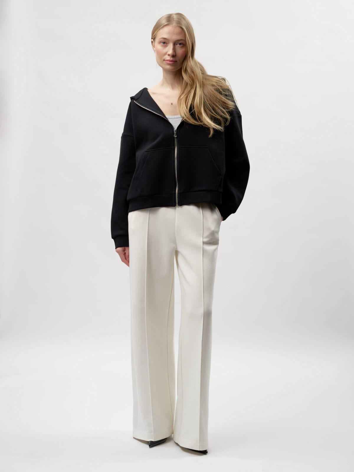 Женский худи на молнии свободного кроя из новой коллекции Classic Pure выполнен из материала скуба, в состав которого входит 82% хлопка, 12% полиэстера, 6% эластана, за счет чего джемпер отлично держит форму и долговечный в носке. Благодаря большой доле хлопка в изделии, данная скуба является гипоаллергенной. Джемпер представлен в двух цветах - нежный голубой и классический черный. На груди расположена лаконичная тональная вышивка с логотипом бренда. Худи имеет два боковых кармана. В комплекте к худи в ассортименте имеются брюки W5CLP84. Костюм отлично подойдет не только для повседневных образов, но и для офиса, так как отлично сочетаются с классической белой рубашкой.
