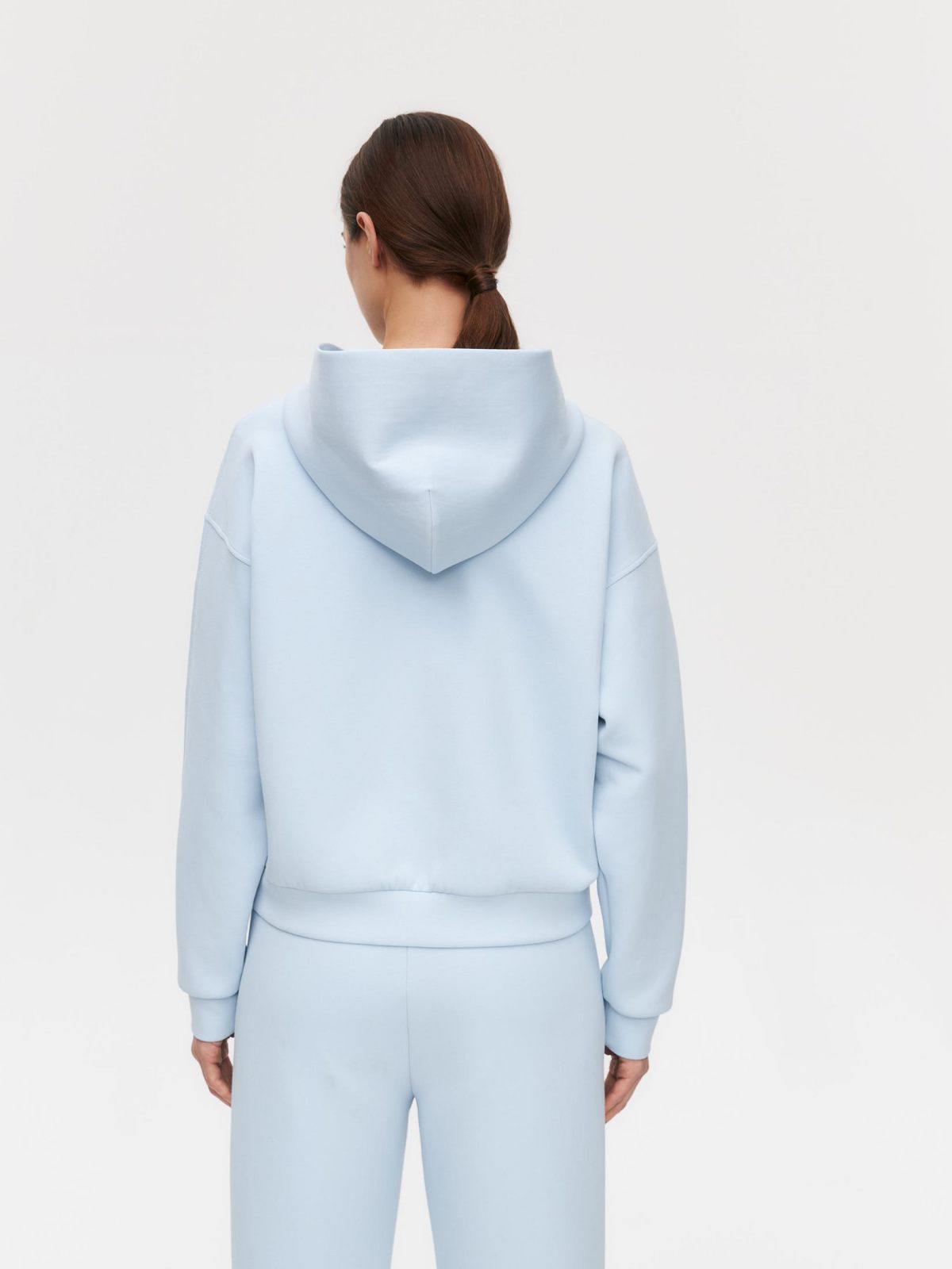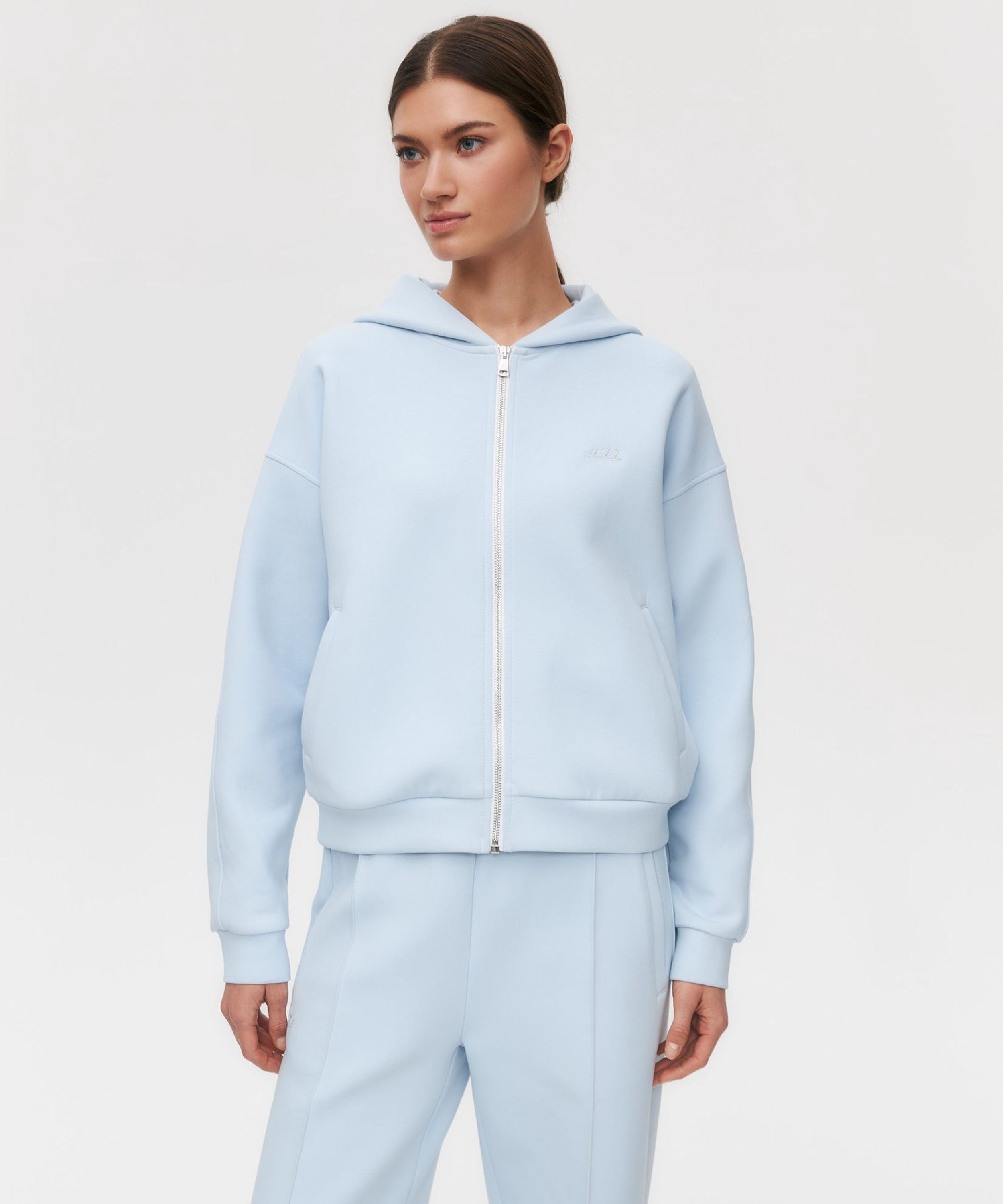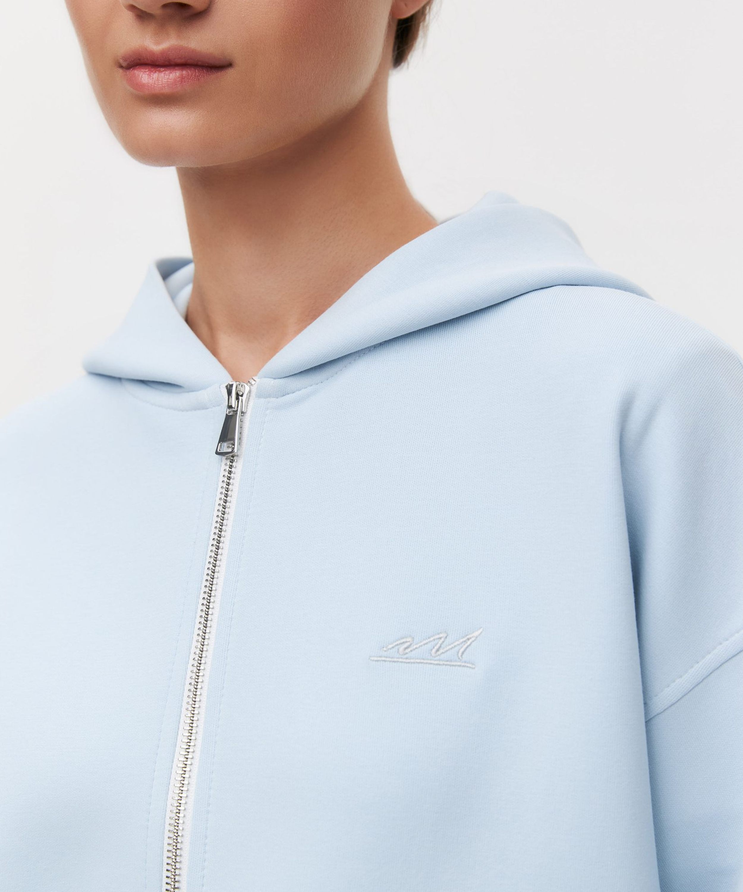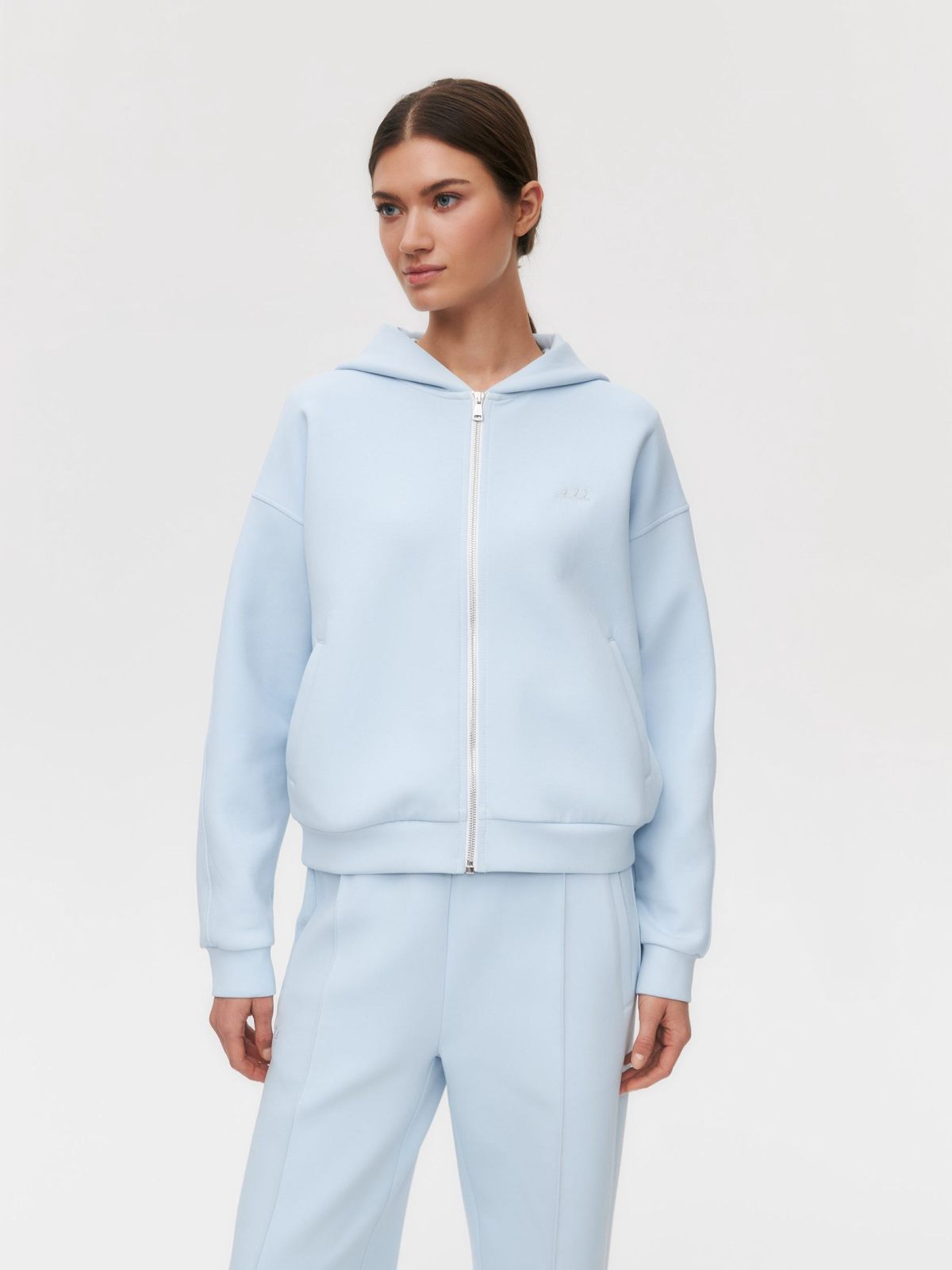 Женский худи на молнии свободного кроя из новой коллекции Classic Pure выполнен из материала скуба, в состав которого входит 82% хлопка, 12% полиэстера, 6% эластана, за счет чего джемпер отлично держит форму и долговечный в носке. Благодаря большой доле хлопка в изделии, данная скуба является гипоаллергенной. Джемпер представлен в двух цветах - нежный голубой и классический черный. На груди расположена лаконичная тональная вышивка с логотипом бренда. Худи имеет два боковых кармана. В комплекте к худи в ассортименте имеются брюки W5CLP84. Костюм отлично подойдет не только для повседневных образов, но и для офиса, так как отлично сочетаются с классической белой рубашкой.