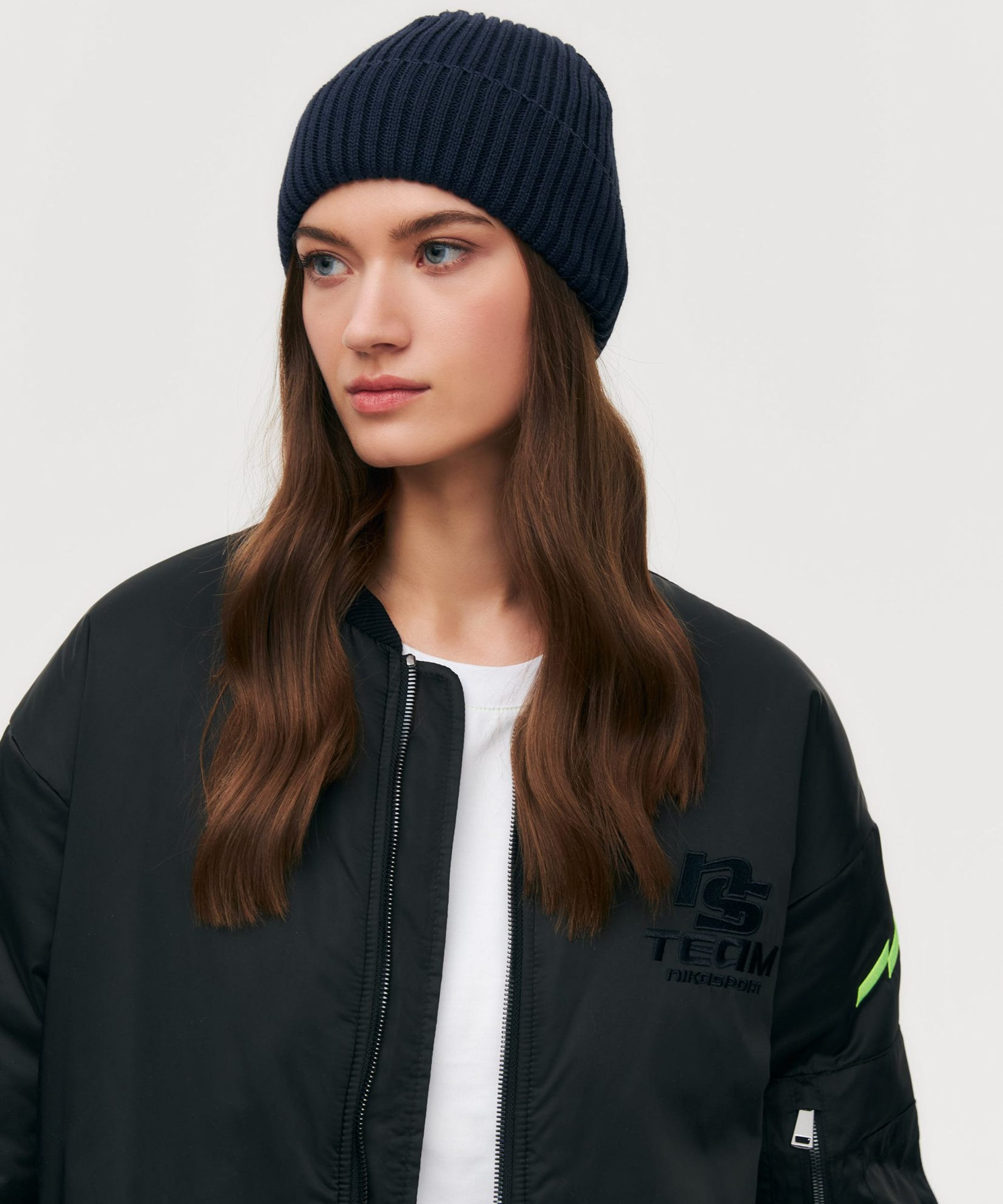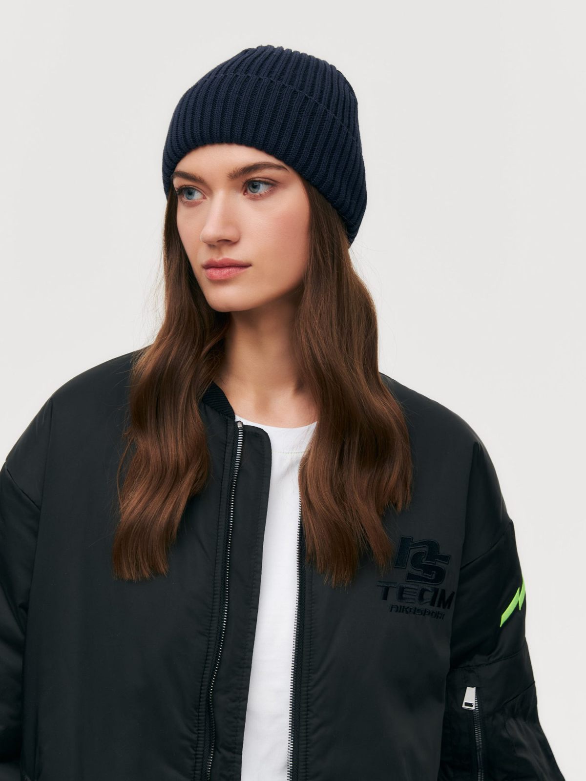 Классическая шапка с подворотом, при посадке полностью повторяет форму головы. Состав: 50% хлопок 50% акрил. Шапка представлена в двух цветах: темно-синий и черный.