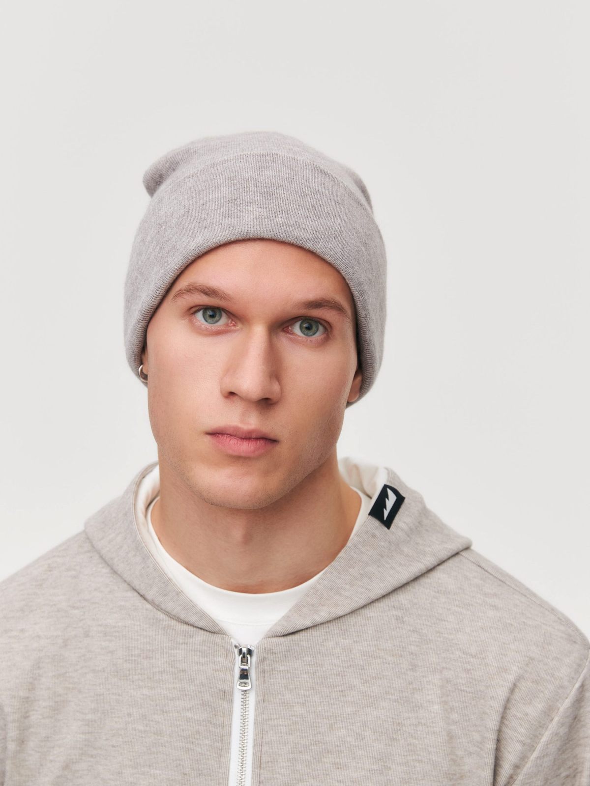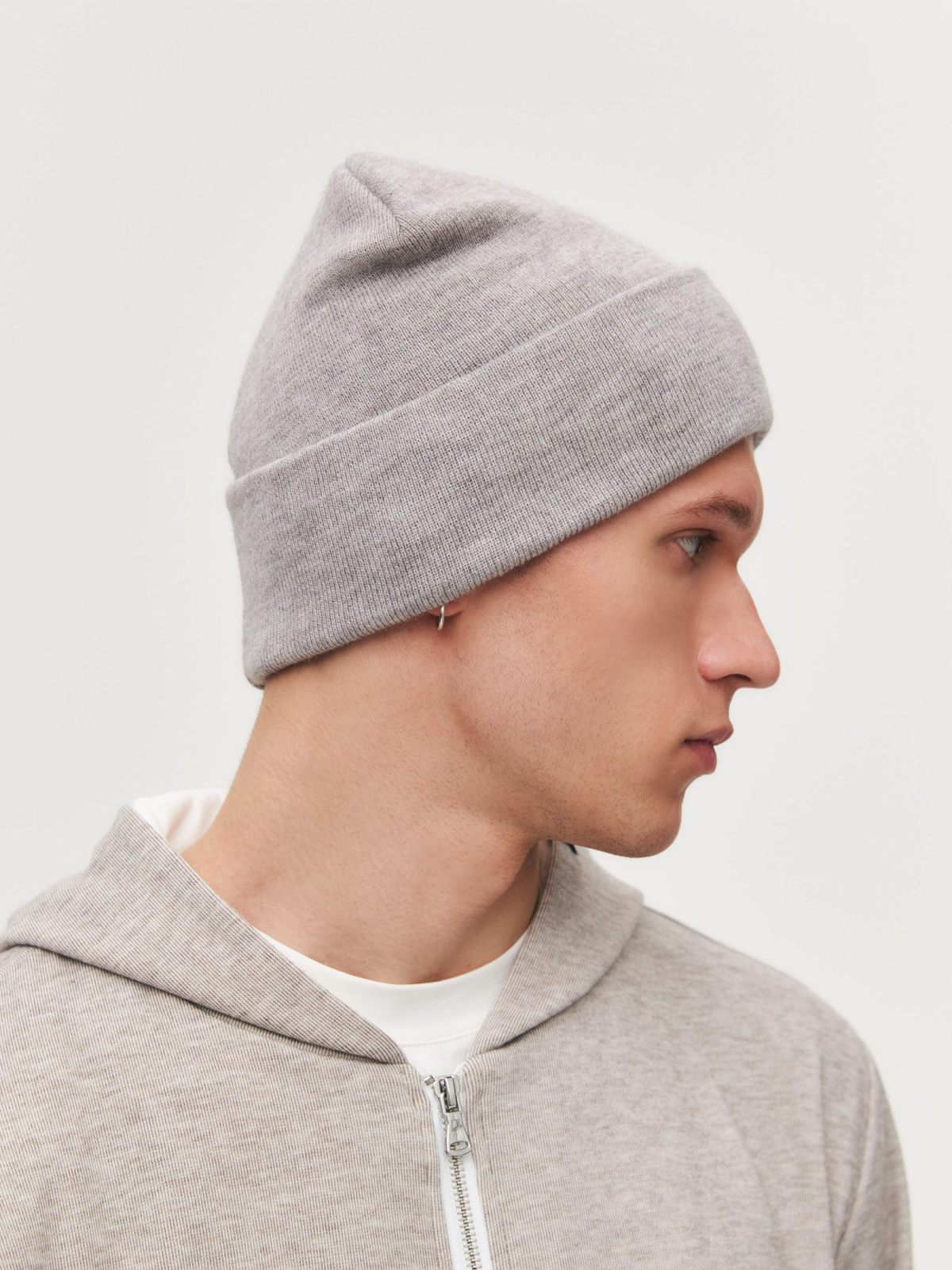Удлиненная шапка с подворотом. Состав: 50% хлопок 50% акрил. Шапка представлена в трех цветах: черный, темно-синий и бежевый.