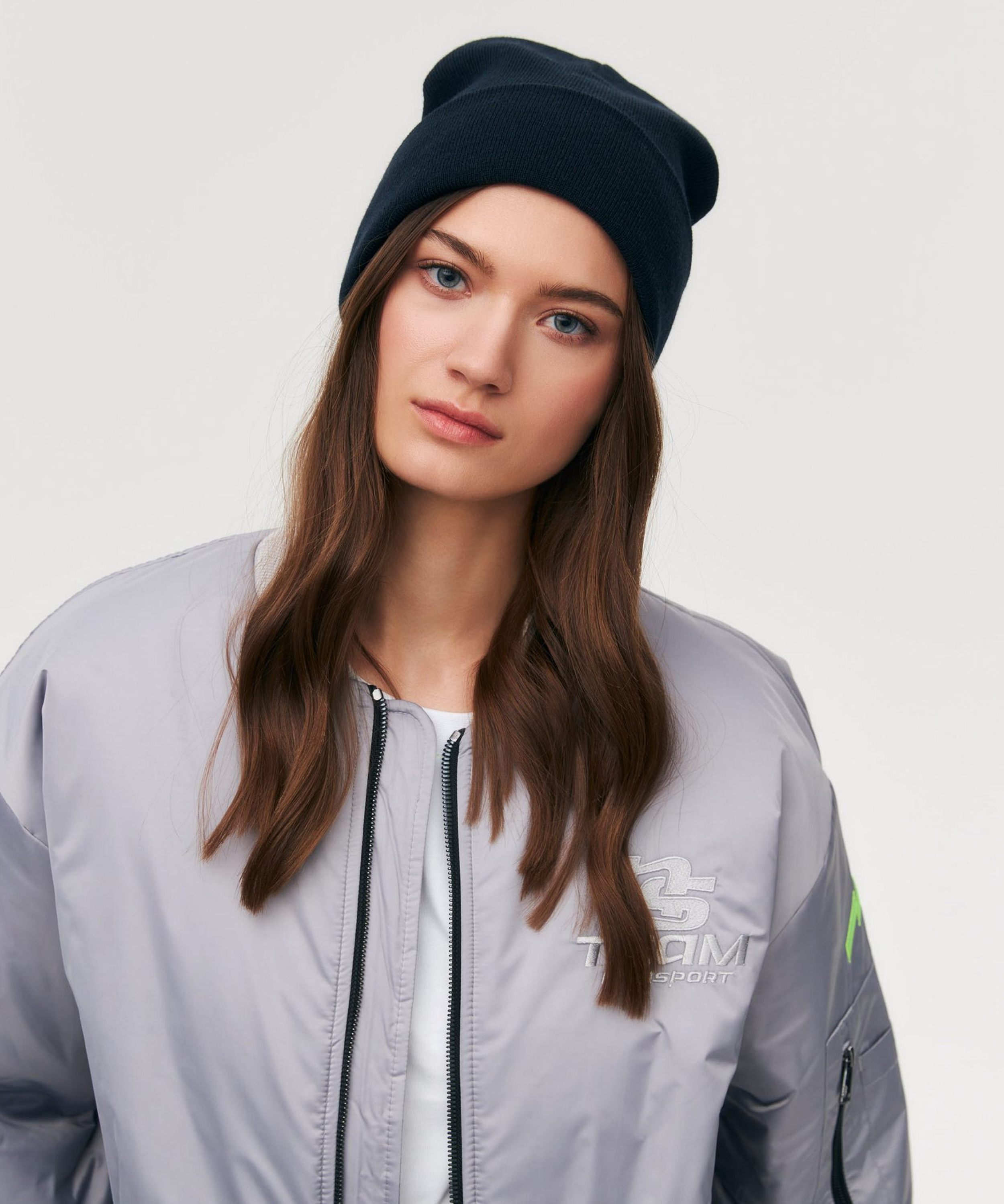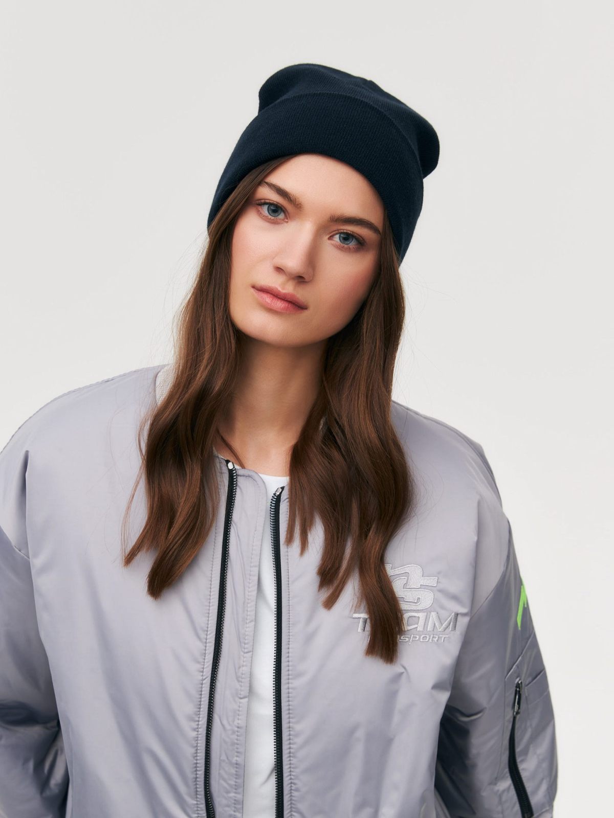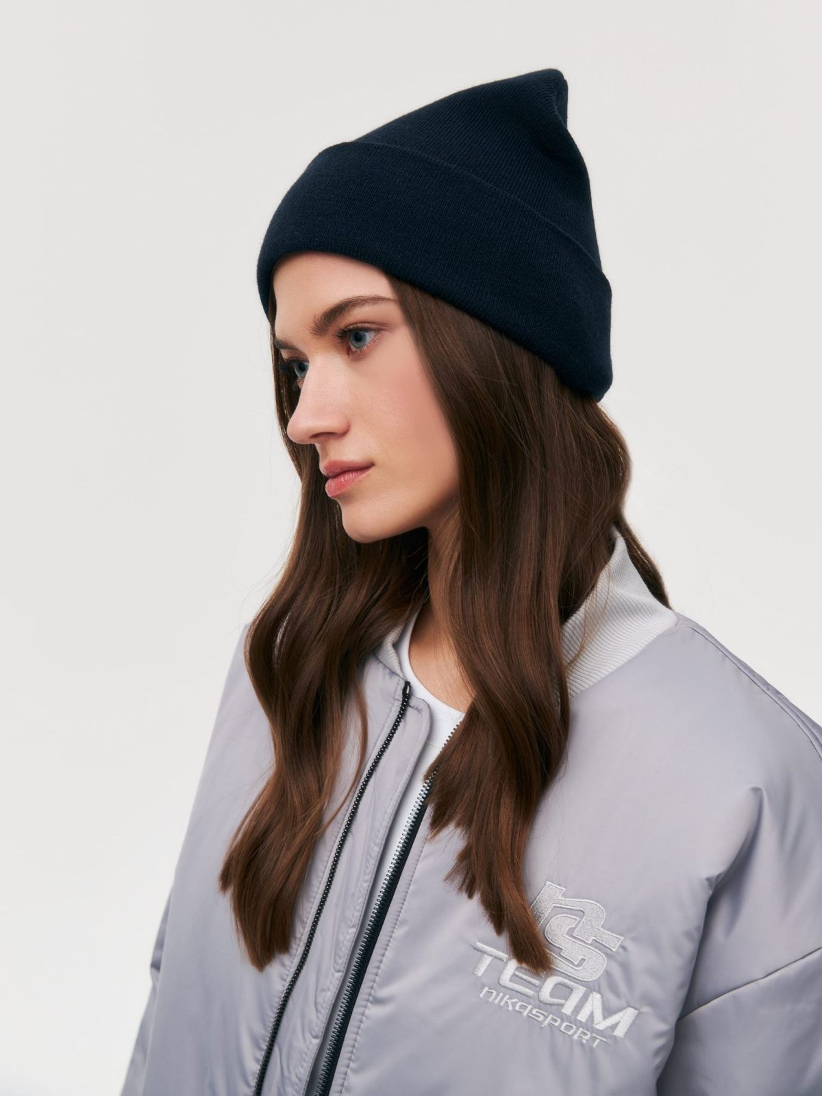 Удлиненная шапка с подворотом. Состав: 50% хлопок 50% акрил. Шапка представлена в трех цветах: черный, темно-синий и бежевый.