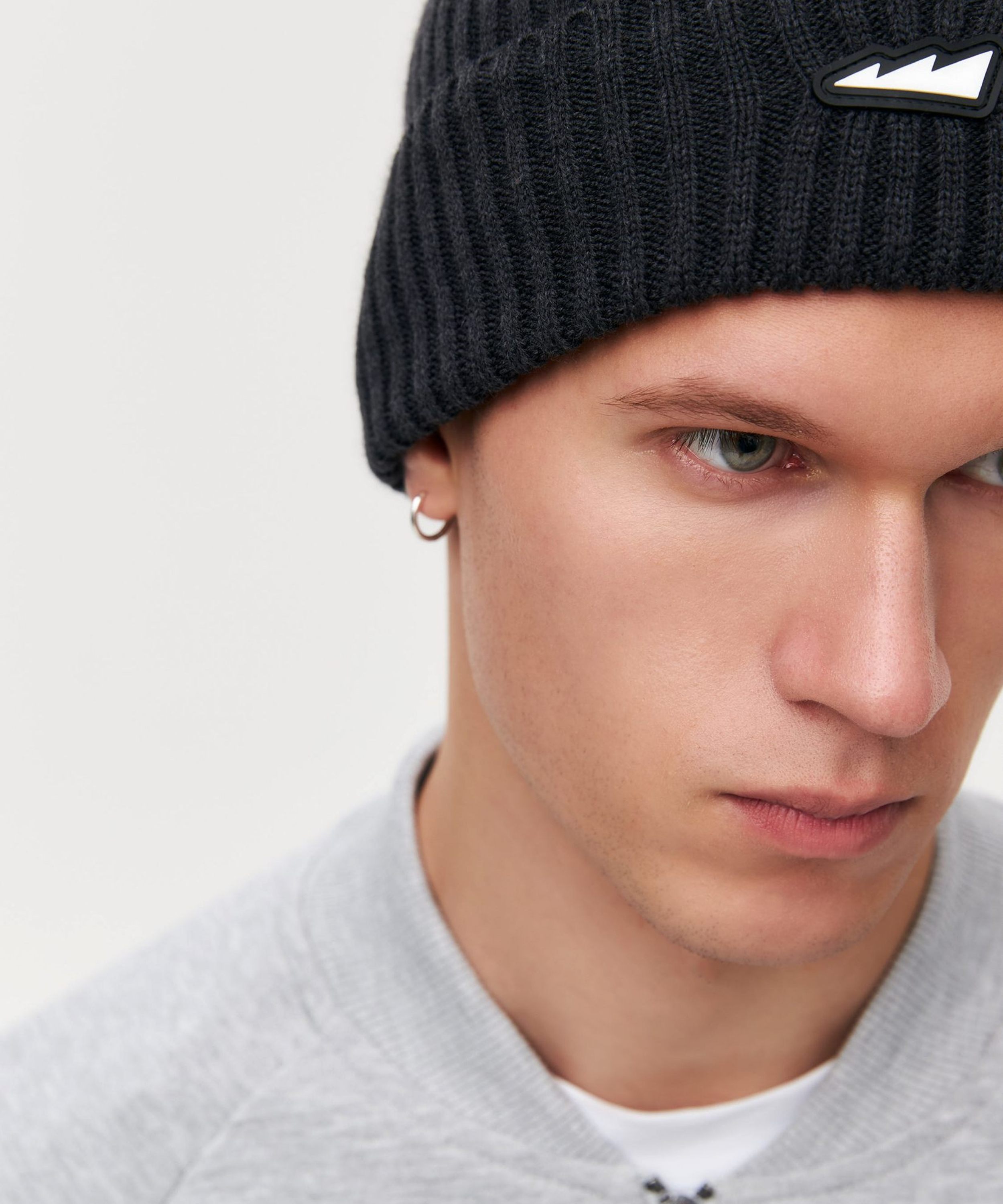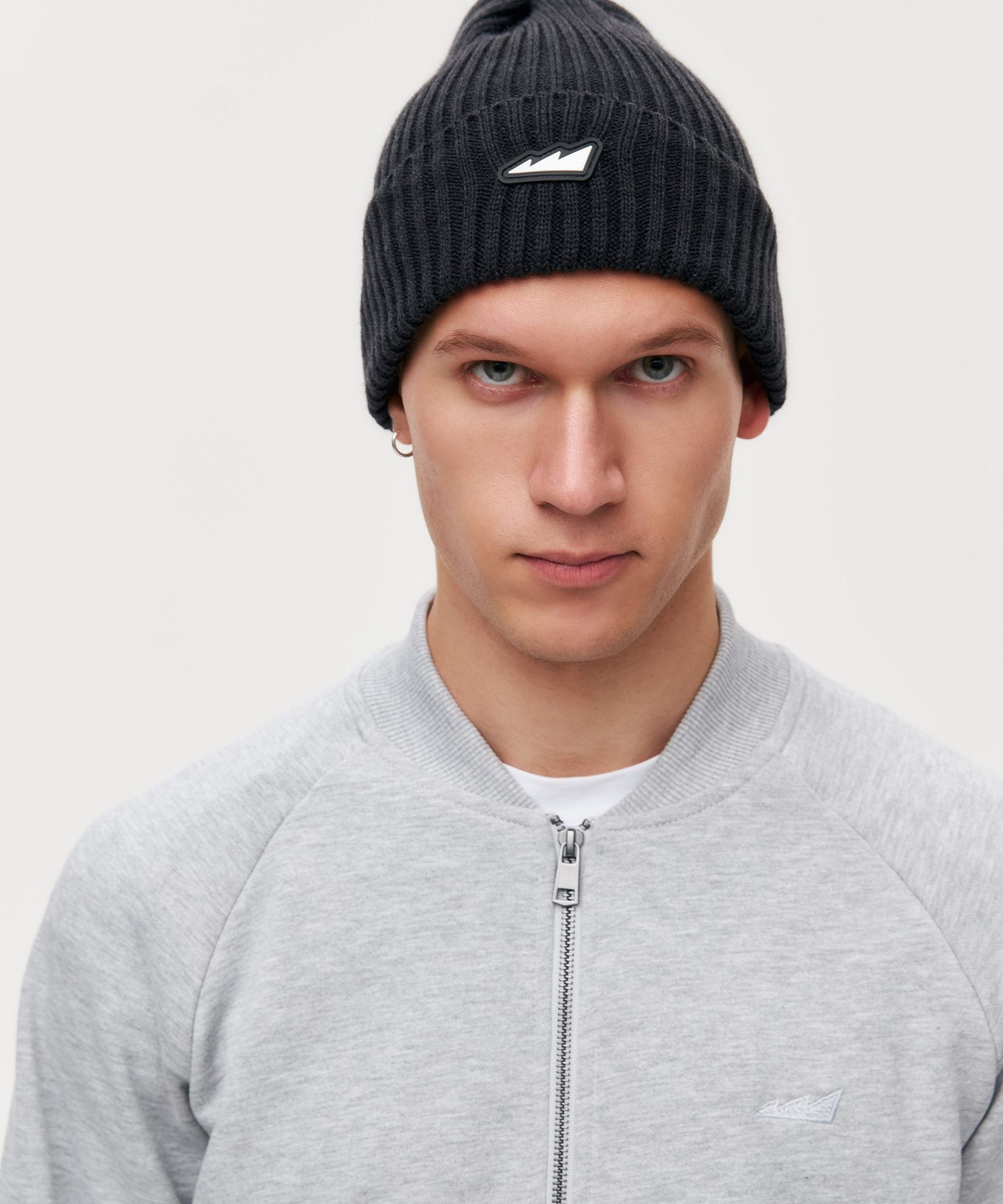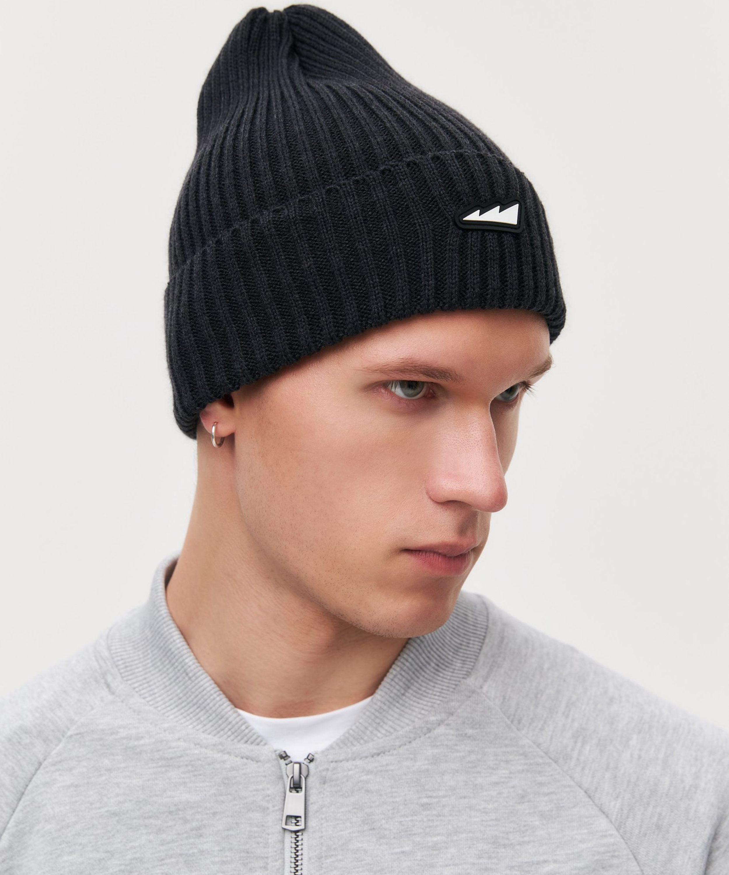 Классическая удлиненная шапка с подворотом. Состав:30% шерсть, 70% акрил. Фирменная деталь - силиконовый патч с логотипом бренда. Шапка представлена в четырех цветах: голубой, красный, бежевый и графит.