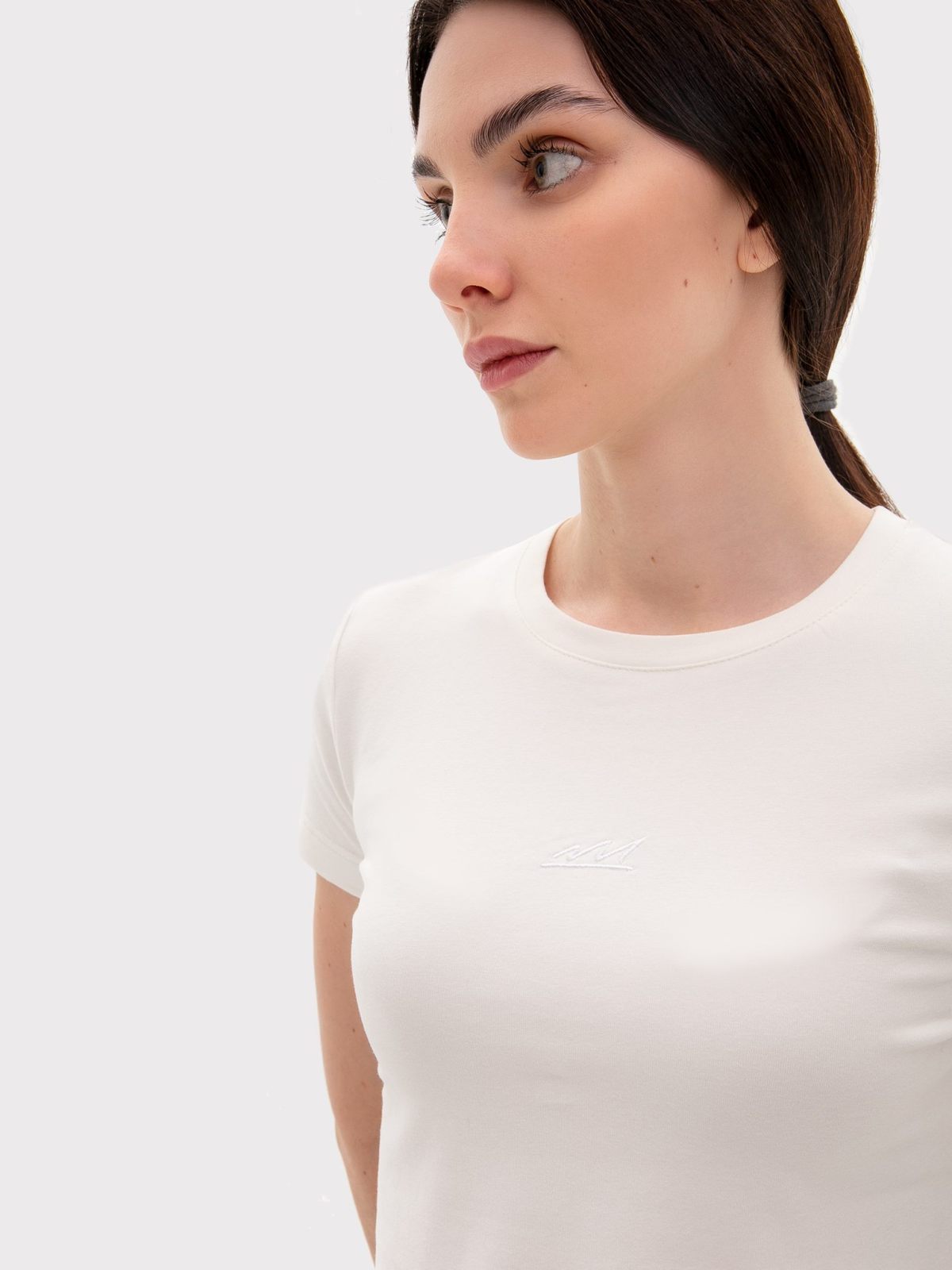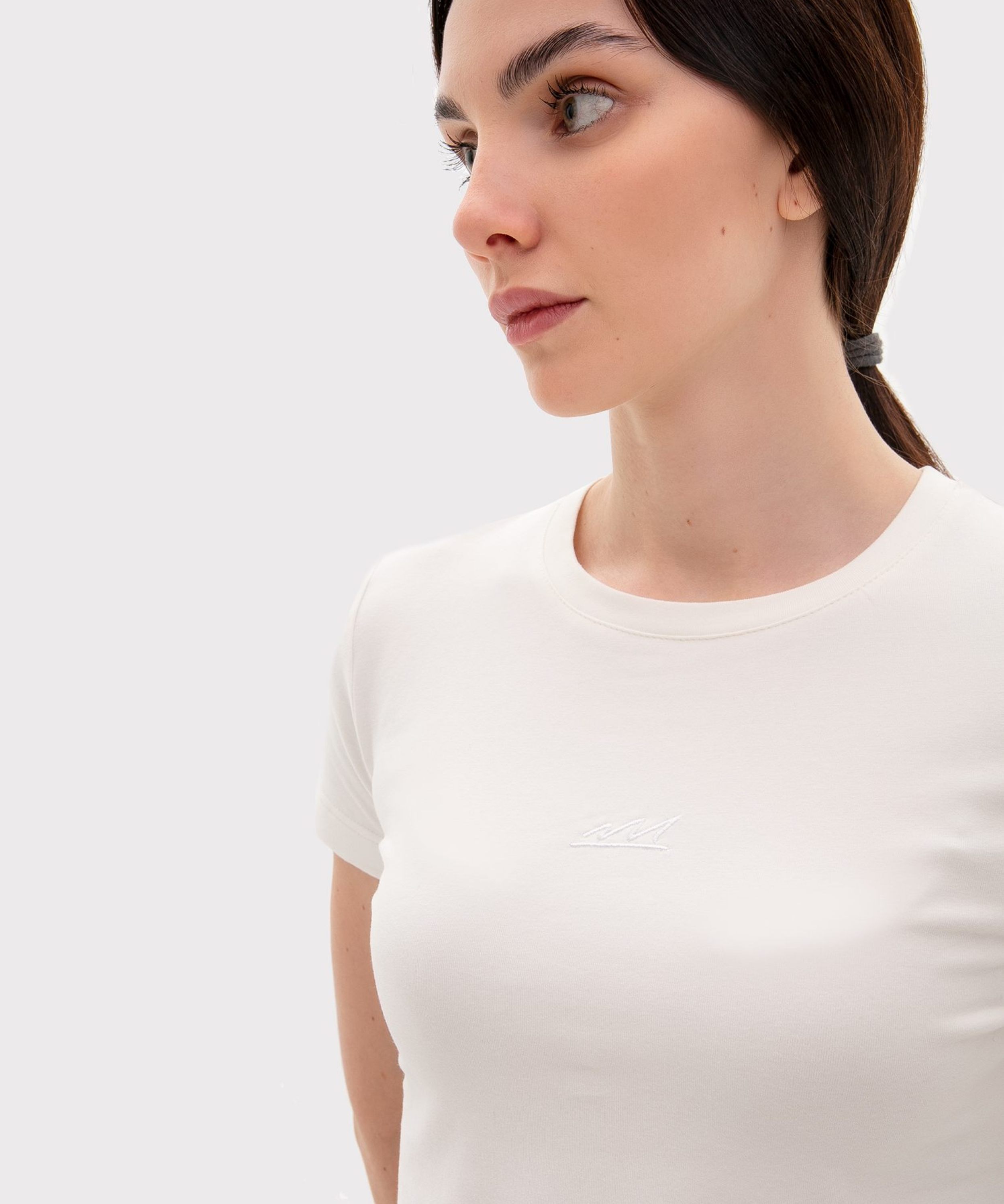 Женская укороченная футболка Pure силуэта Slim, выполнена из материала с эффектом peach, в состав которого входит 92% хлопка и 8 % эластана, за счет чего футболка отлично садится по фигуре и является невероятно мягкой и приятной к телу. На груди по центру расположена тональная лаконичная вышивка с логотипом бренда. Футболка отлично сочетается как со спортивными вещами, так и с классическим пиджаком, брюками и джинсами.