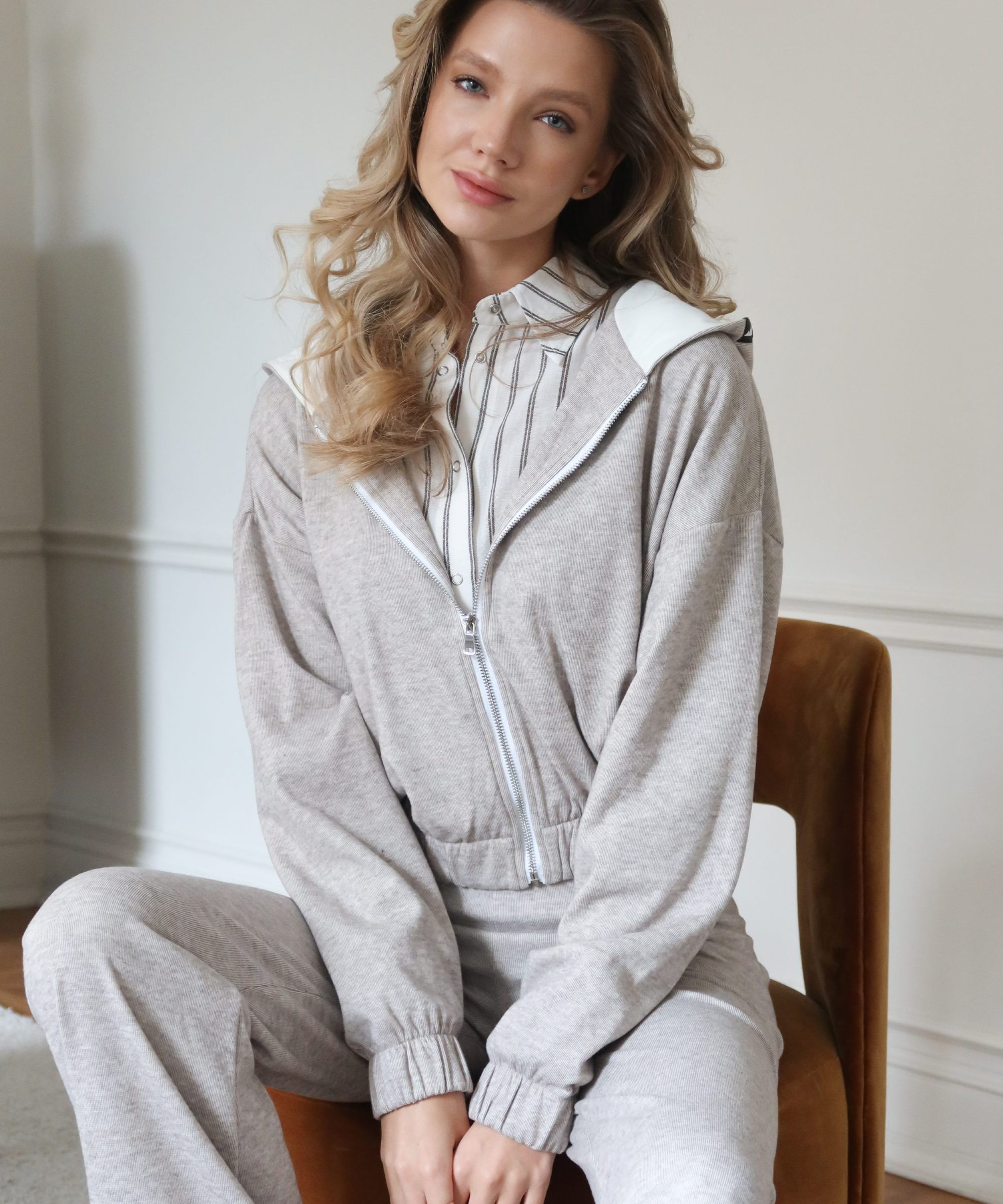 Укороченный худи на молнии свободного кроя выполнен из материала, в составе которого 67% полиэстера 25% вискозы и 8% эластана, подкладка капюшона сделана из материала с эффектом peach, за счет чего худи невероятного мягкий и комфортный. Внизу худи собран на резинку шириной 5 см, что обеспечивает отличную посадку. На капюшоне расположен лаконичный жаккардовый флажок с логотипом бренда. Худи представлен в двух классических цветах: серый и бежевый меланж. Комплектом к худи в ассортименте представлены брюки W5HOM84. Отличный выбор для комфортного образа в спортивном стиле на каждый день.