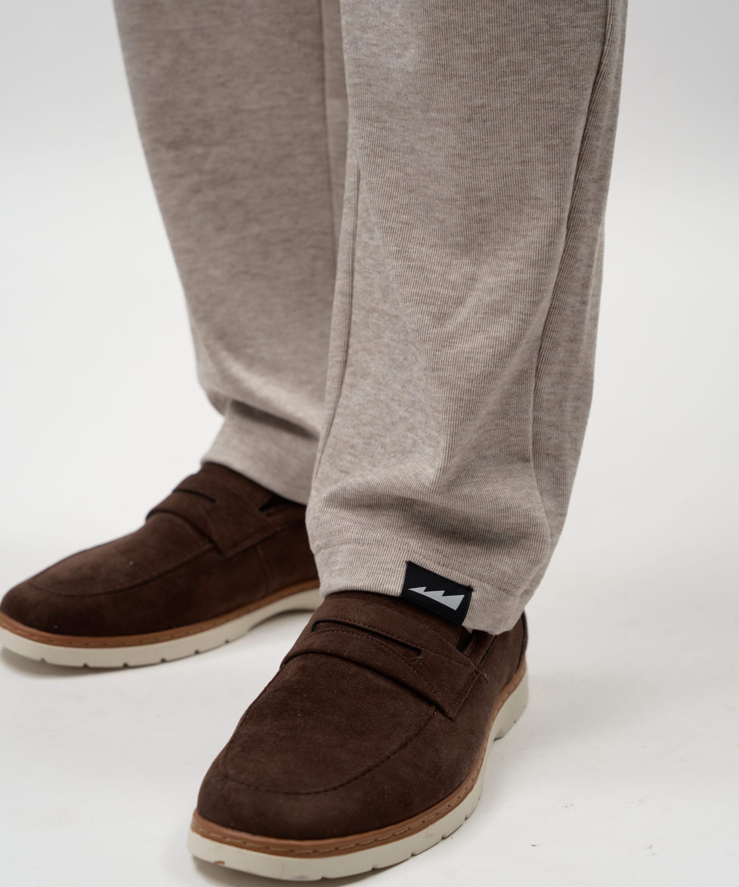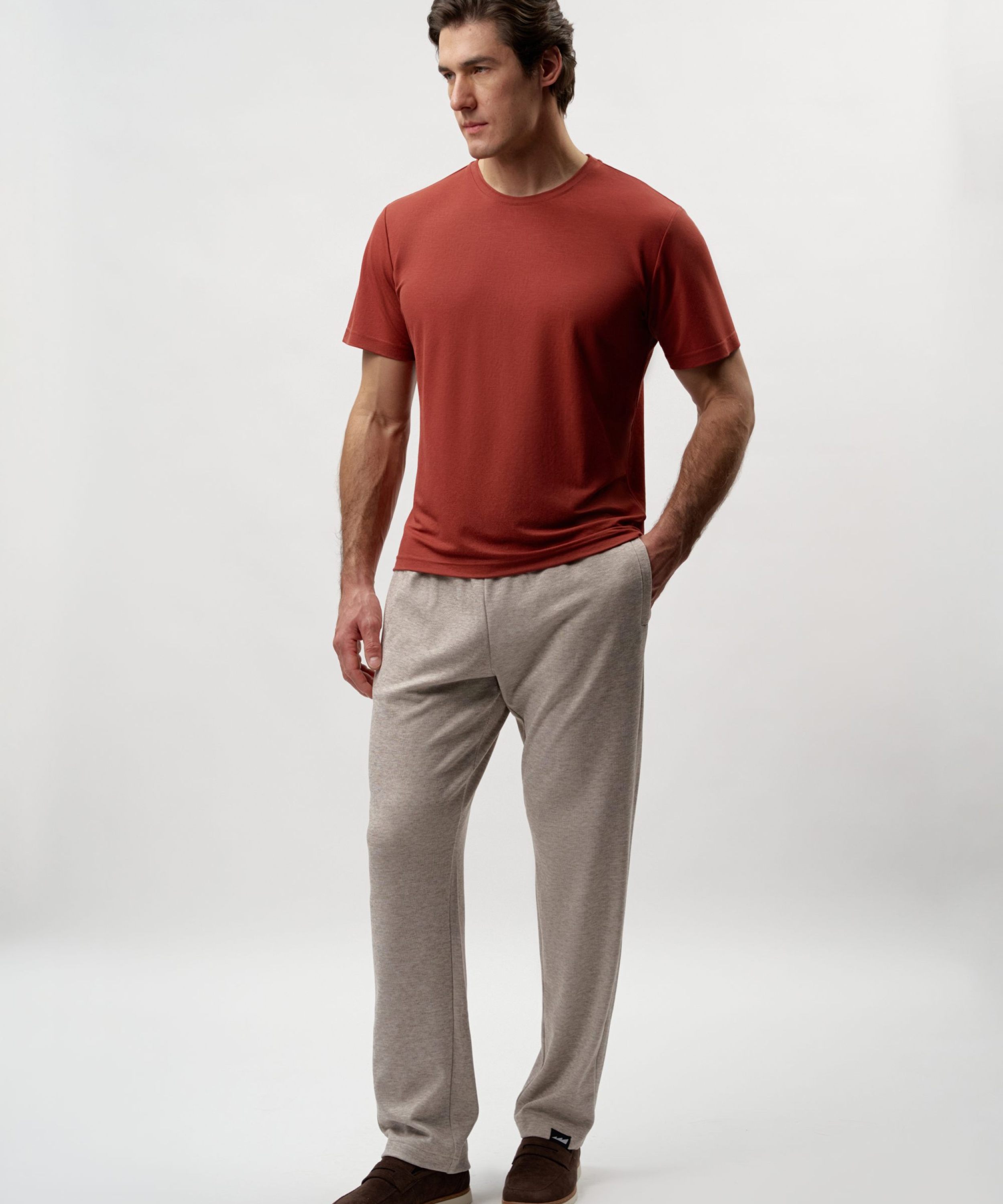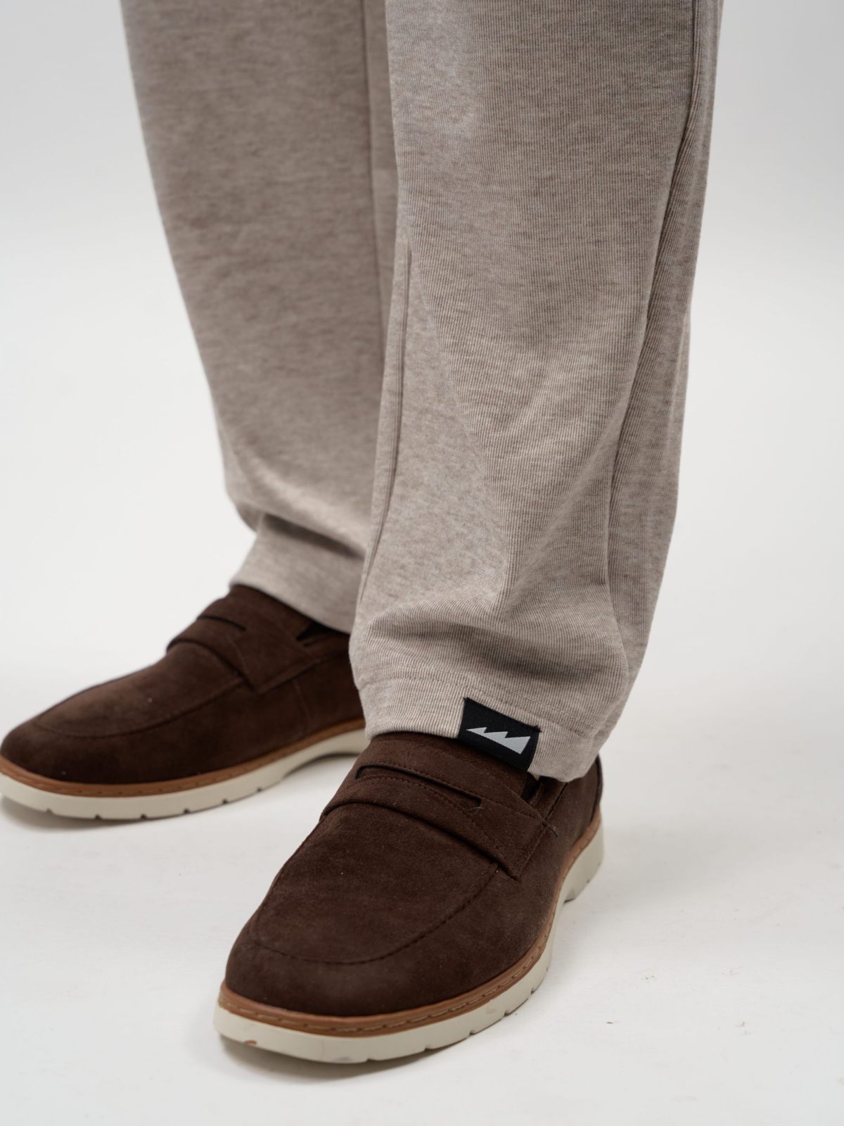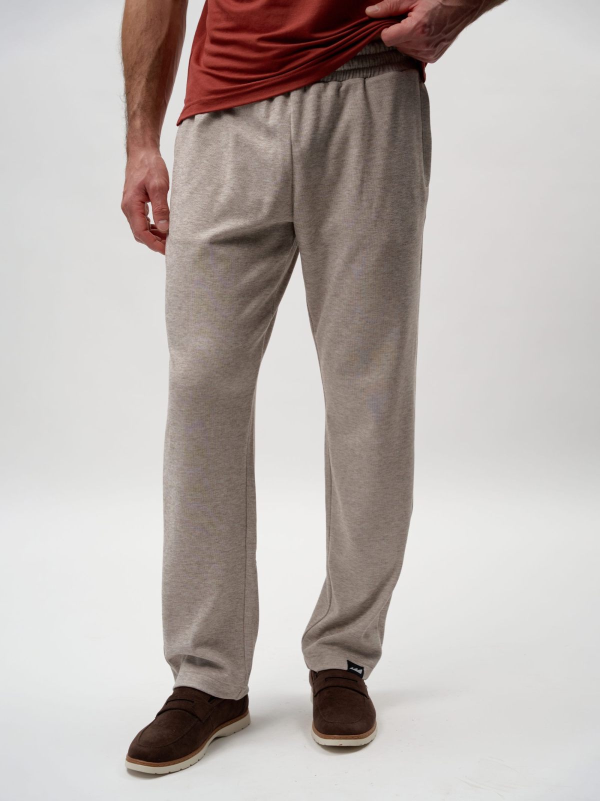 Прямые брюки выполнены из материала, в составе которого 67% полиэстера 25% вискозы и 8% эластана, за счет чего брюки невероятного мягкие и комфортные. На брюках внизу с левой стороны расположен лаконичный жаккардовый флажок с логотипом бренда. Брюки представлены в двух классических цветах: серый и бежевый меланж. Комплектом к брюкам в ассортименте имеется худи M5HOM34. Отличный выбор для комфортного образа в спортивном стиле на каждый день.