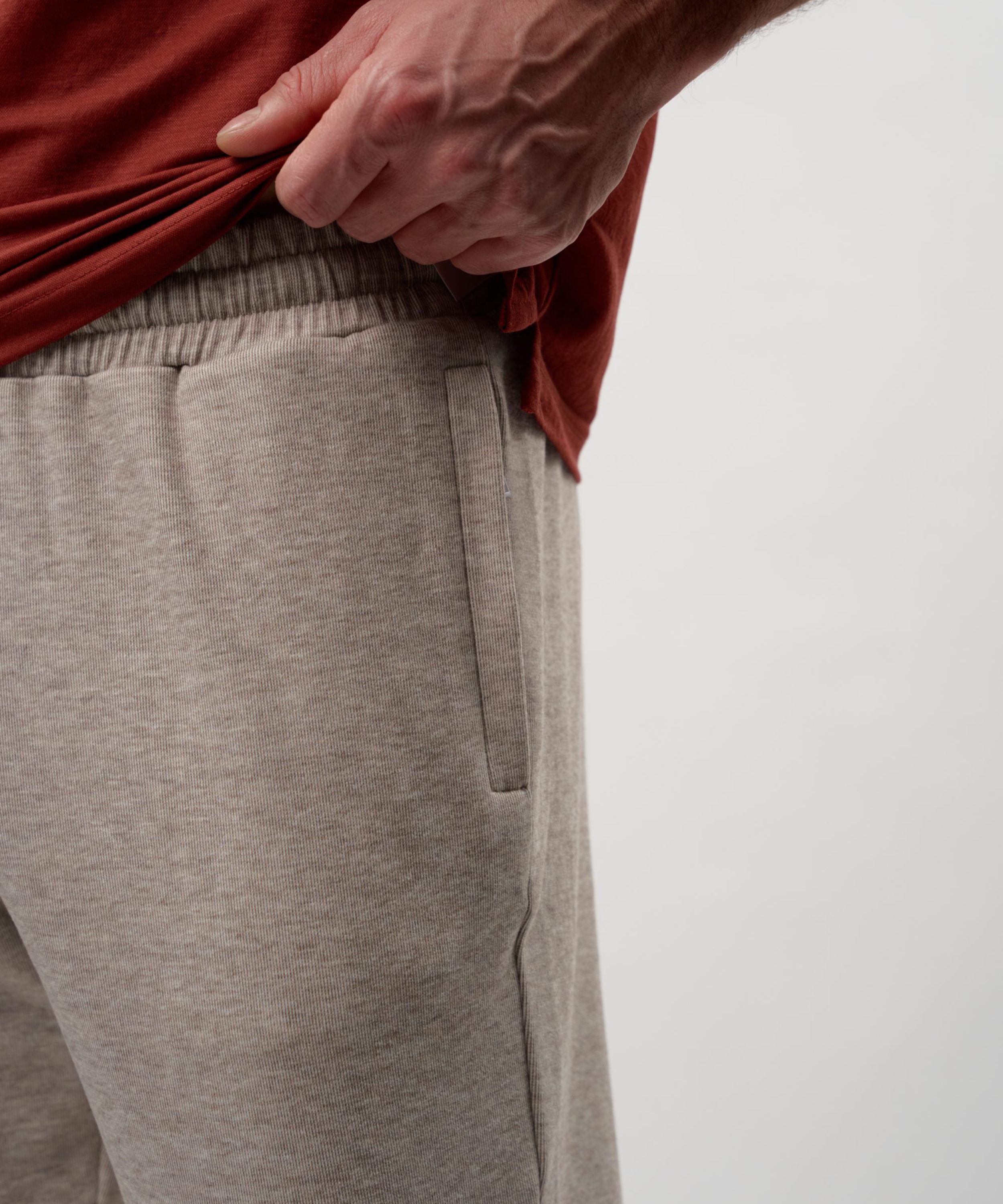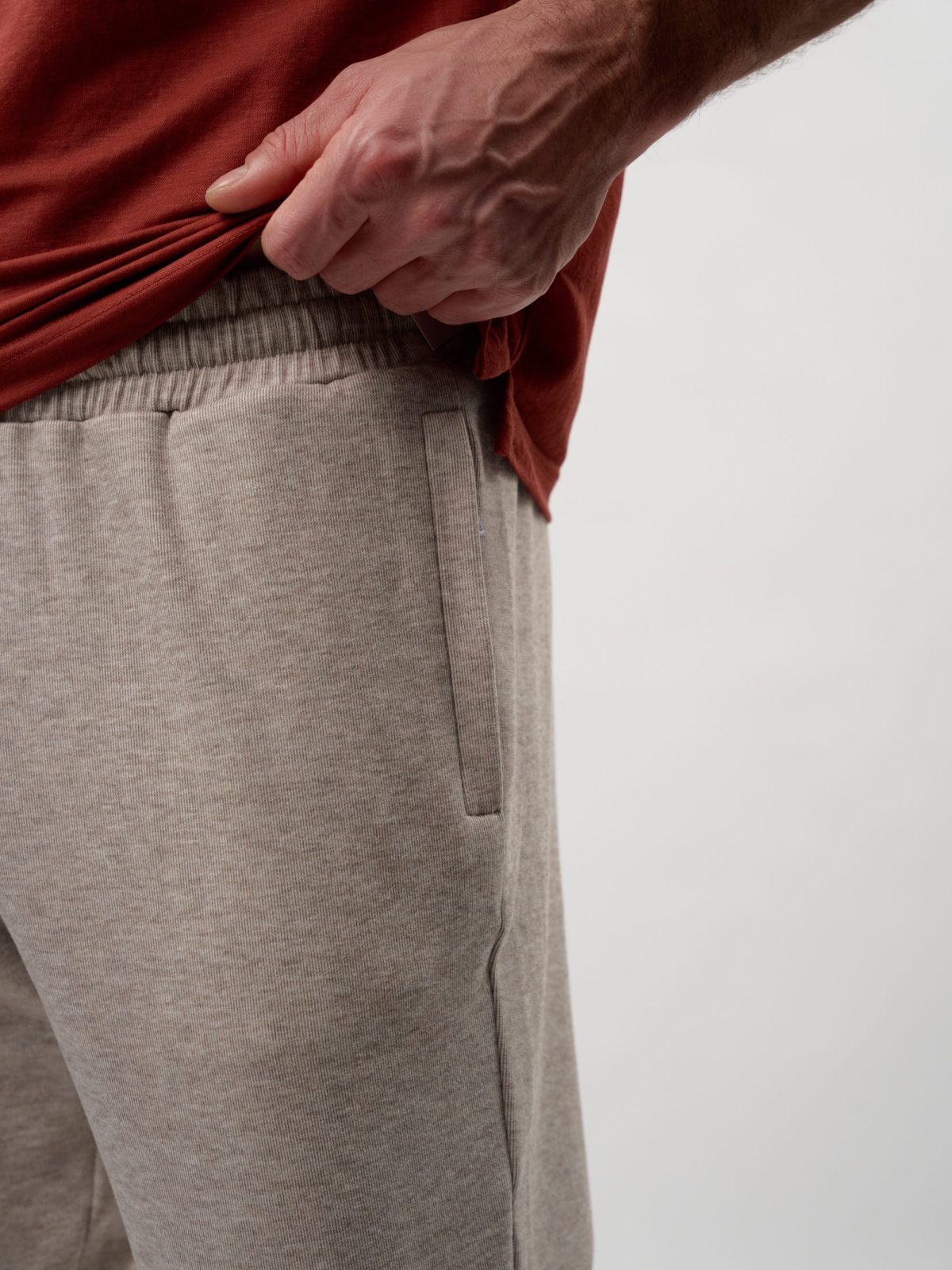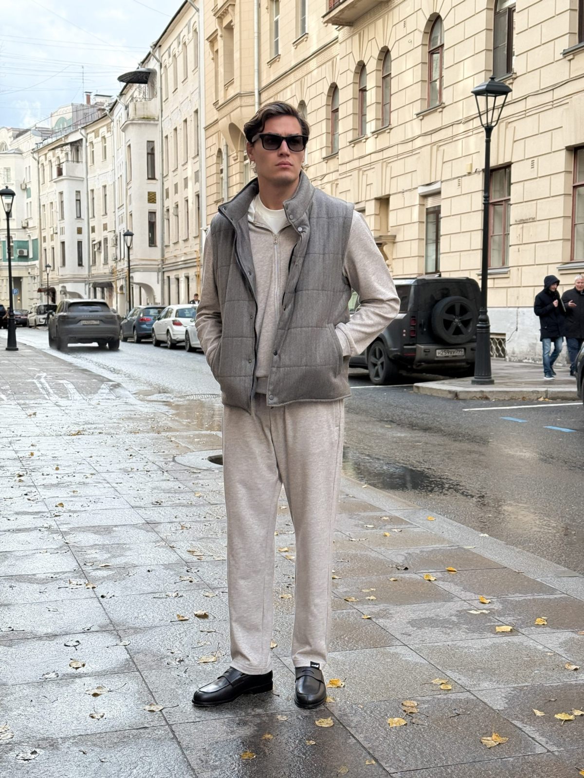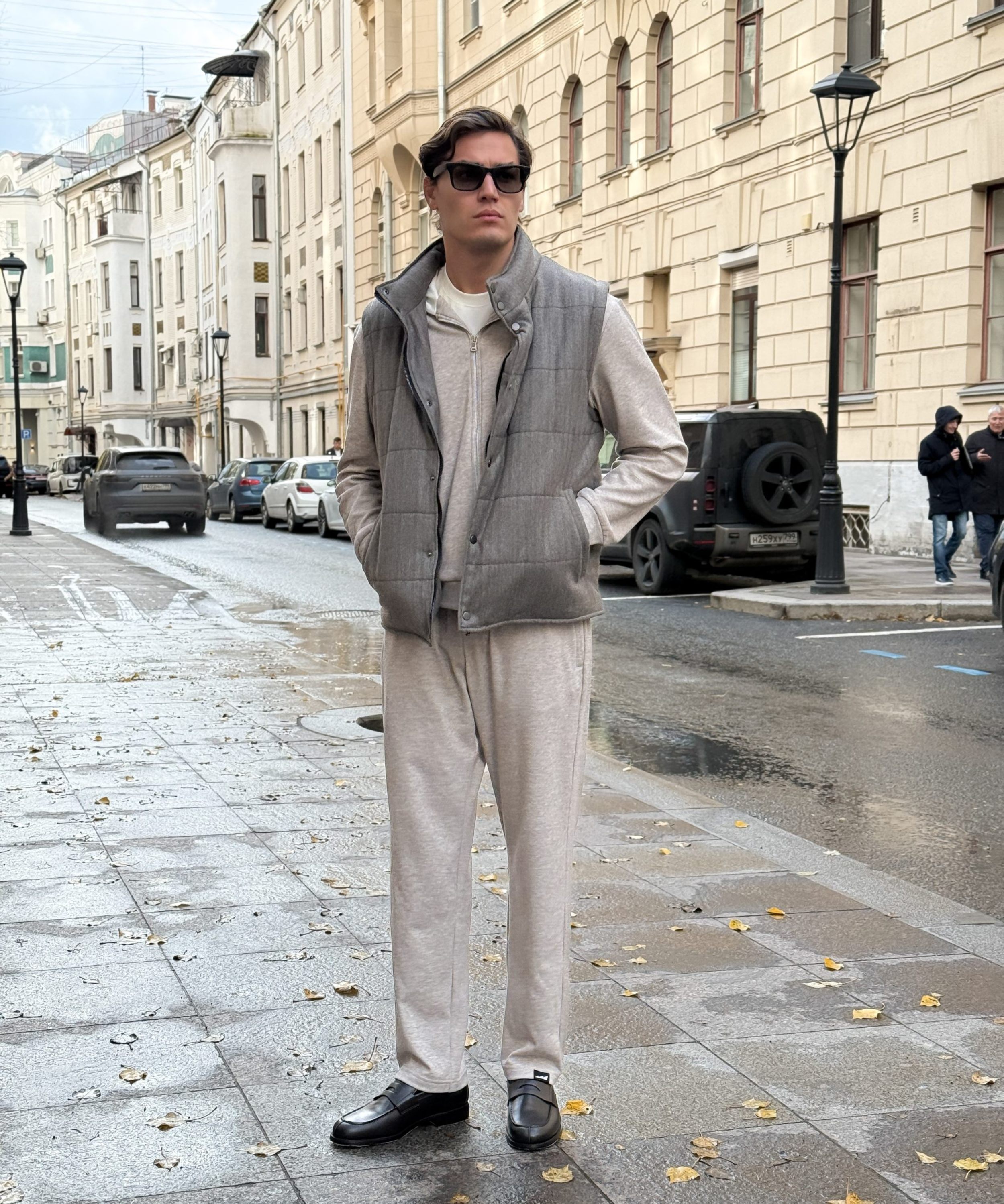 Прямые брюки выполнены из материала, в составе которого 67% полиэстера 25% вискозы и 8% эластана, за счет чего брюки невероятного мягкие и комфортные. На брюках внизу с левой стороны расположен лаконичный жаккардовый флажок с логотипом бренда. Брюки представлены в двух классических цветах: серый и бежевый меланж. Комплектом к брюкам в ассортименте имеется худи M5HOM34. Отличный выбор для комфортного образа в спортивном стиле на каждый день.