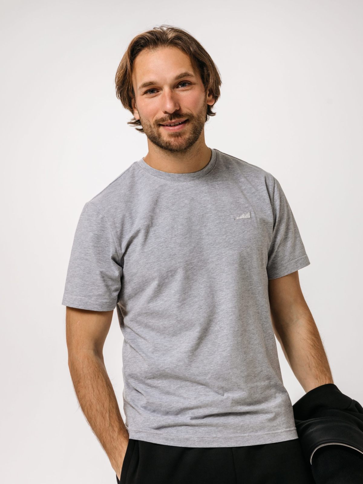 Мужская футболка классического силуэта Regular. Выполнена из материала, в составе которого 90% хлопка и 10% эластана, за счет чего футболка лучше держит форму. На груди расположена стильная вышивка-логотип. Модель представлена в 3 цветах - базовый белый, темно-синий и серый меланж. Легко сочетается как со спортивной так и с повседневной одеждой как база для ваших образов.