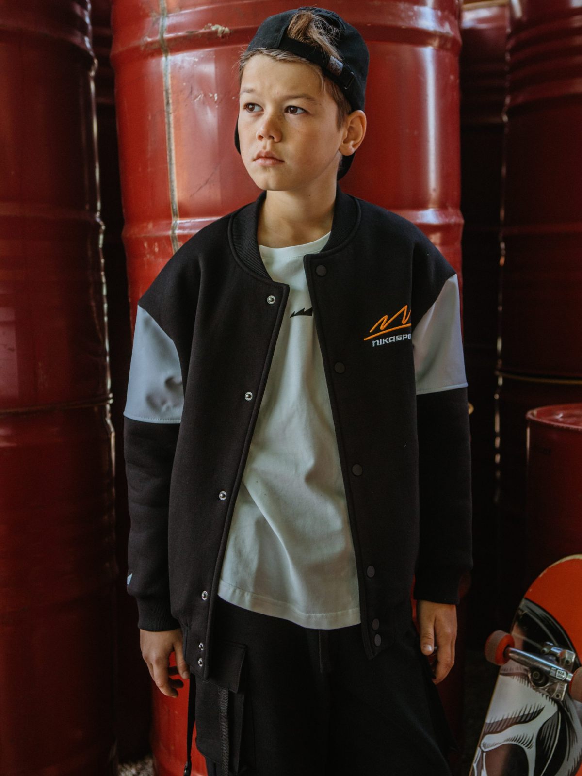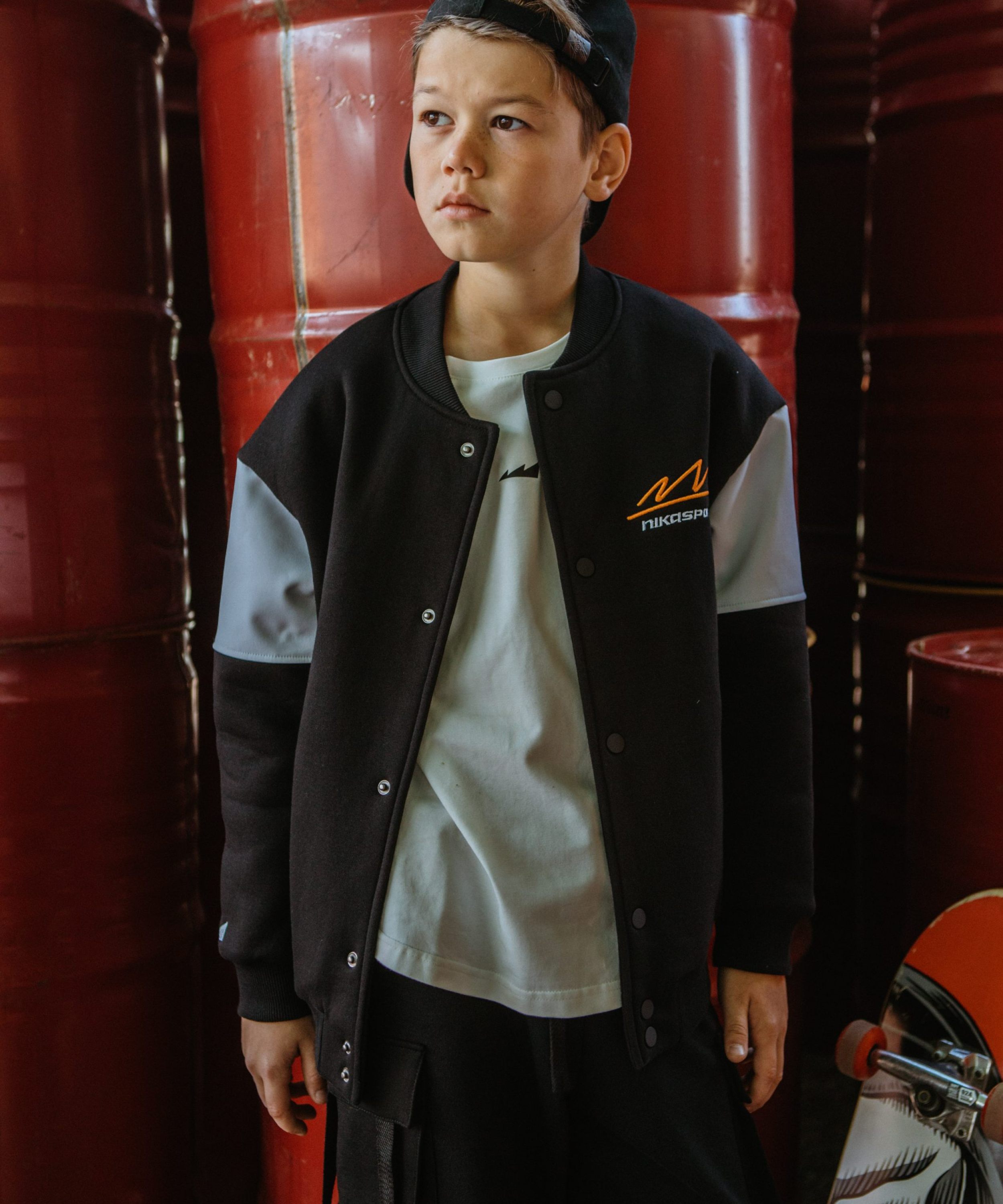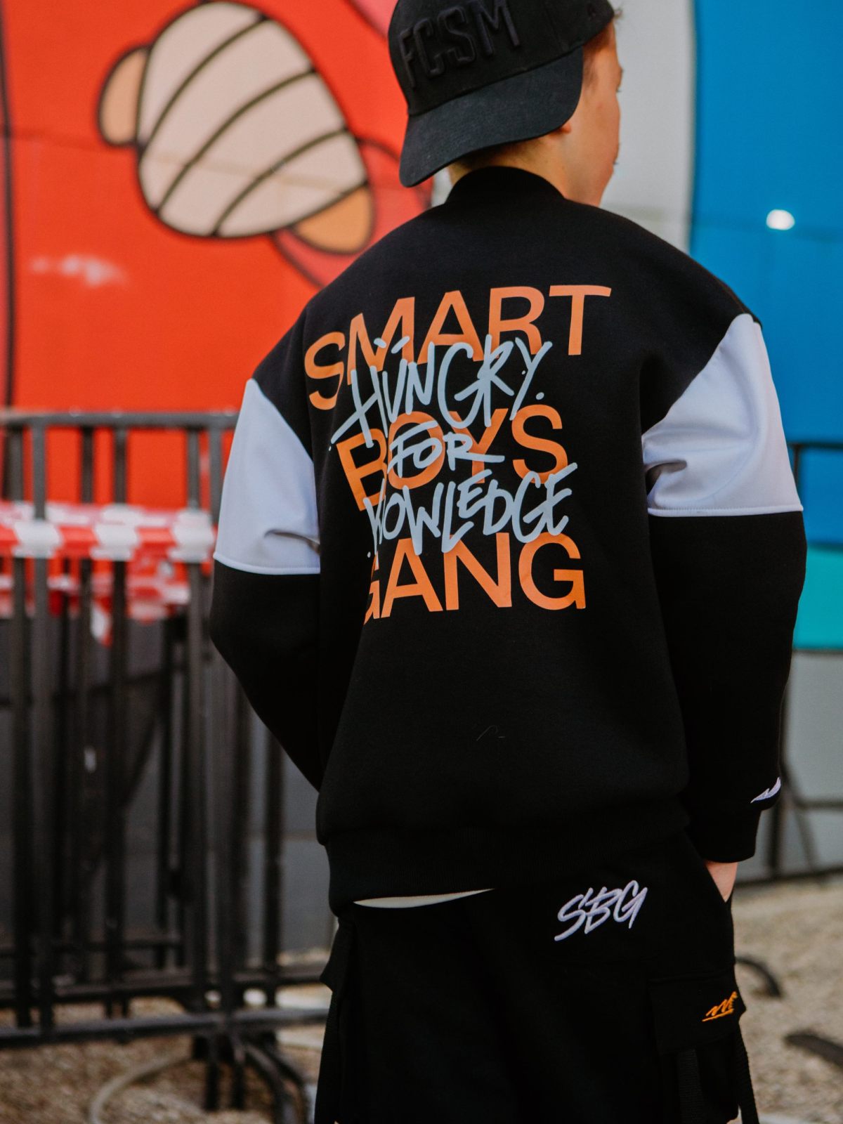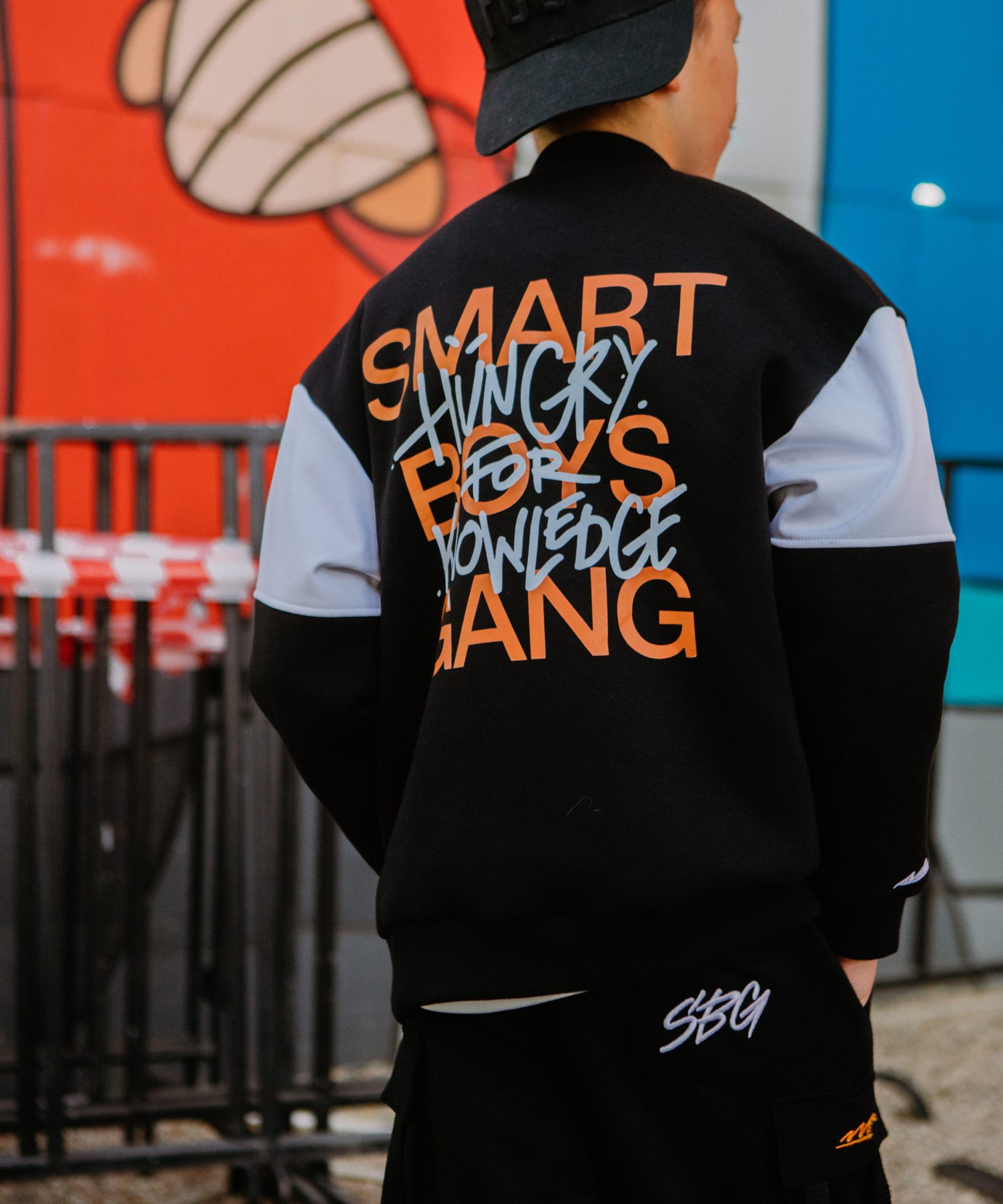 Детский бомбер на кнопках прямого силуэта из коллекции SBG. Выполнен из материала, в составе которого 80% хлопка и 20% полиэстера, что обеспечивает отличную посадку и долговечность изделия. Стильная принтованная подкладка, в составе 45% вискозы и 55% полиэстера - гладка, мягкая отлично пропускающая воздух. На груди и на правом рукаве расположены дизайнерские вышивки-логотипы. На спине большой граффити-принт с названием коллекции "Smart Boys Gang" - стиль дерзости и бунтарства для целеустремленных парней! Два глубоких кармана для личных вещей, эластичный воротник-резинка, необычный крой с контрастными рукавами, универсальный черный цвет делают эту модель незаменимой для повседневных образов.