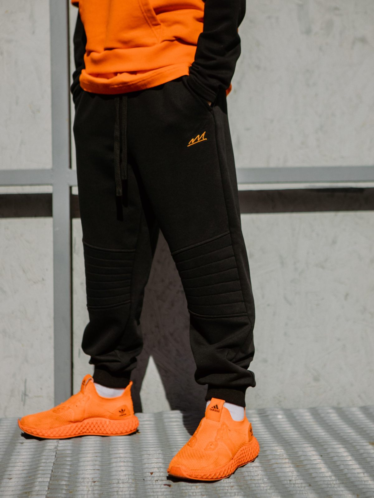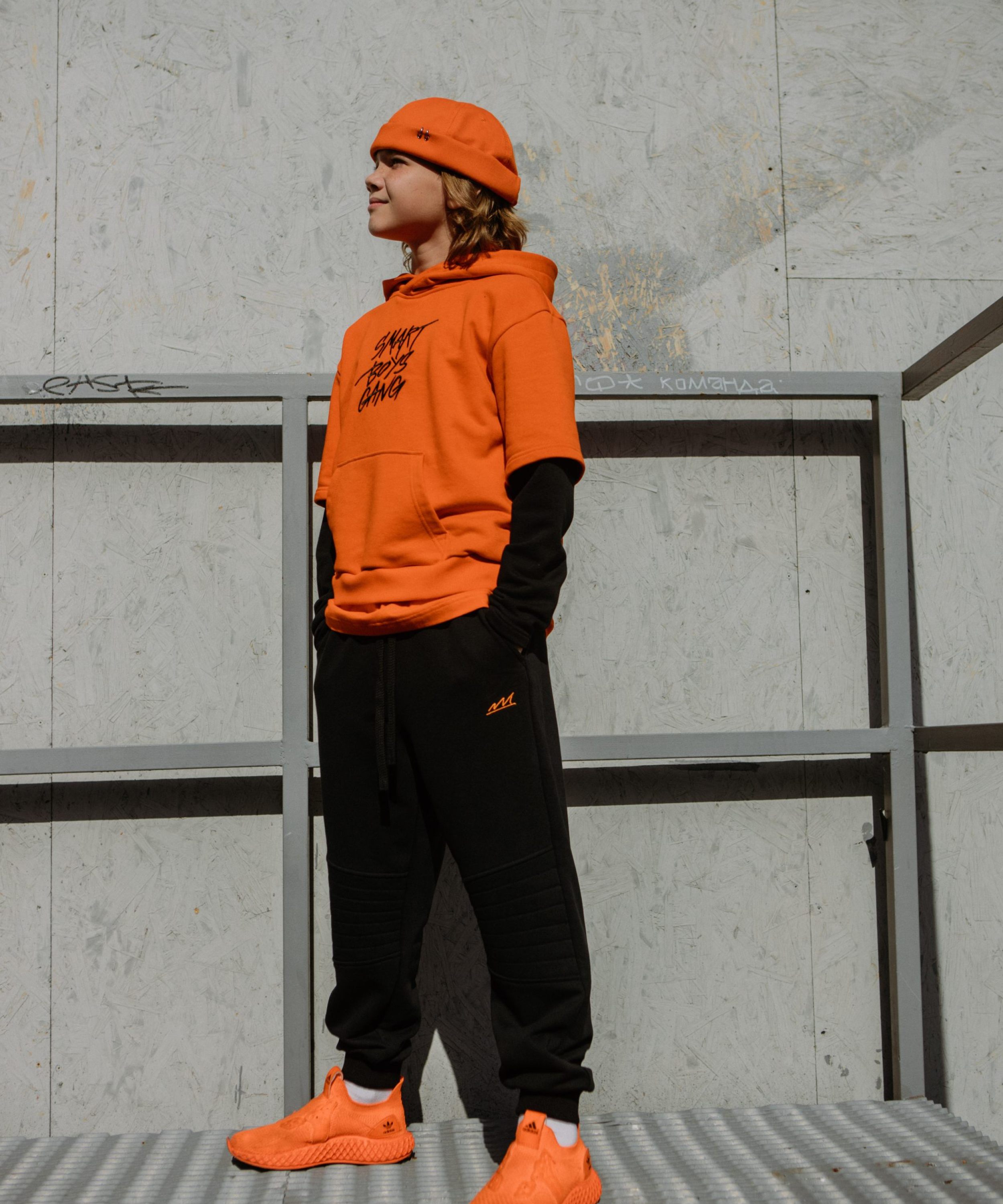 Детские брюки-джоггеры прямого силуэта из коллекции Smart Boys Gang - стиль дерзости и бунтарства для целеустремленных парней! Выполнены из материала, в составе которого 80% хлопка и 20% полиэстера, что обеспечивает долговечность изделия. Особенностями модели являются плотный и мягкий материал, усиленные вставки на коленях, шнур в поясе для регулировки посадки и контрастная вышивка-логотип на левой ноге. Представлены в 2 цветах: классическом черном и ярком оранжевом. Все что нужно для комфортного и запоминающегося образа.