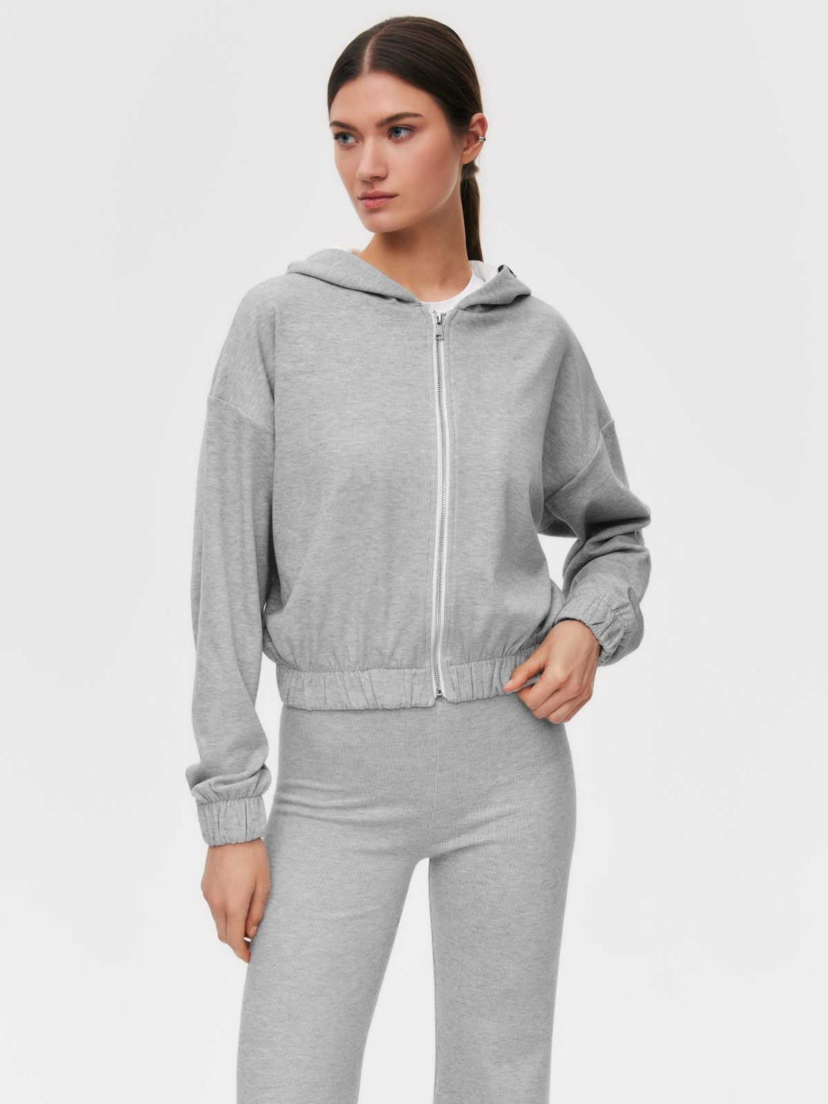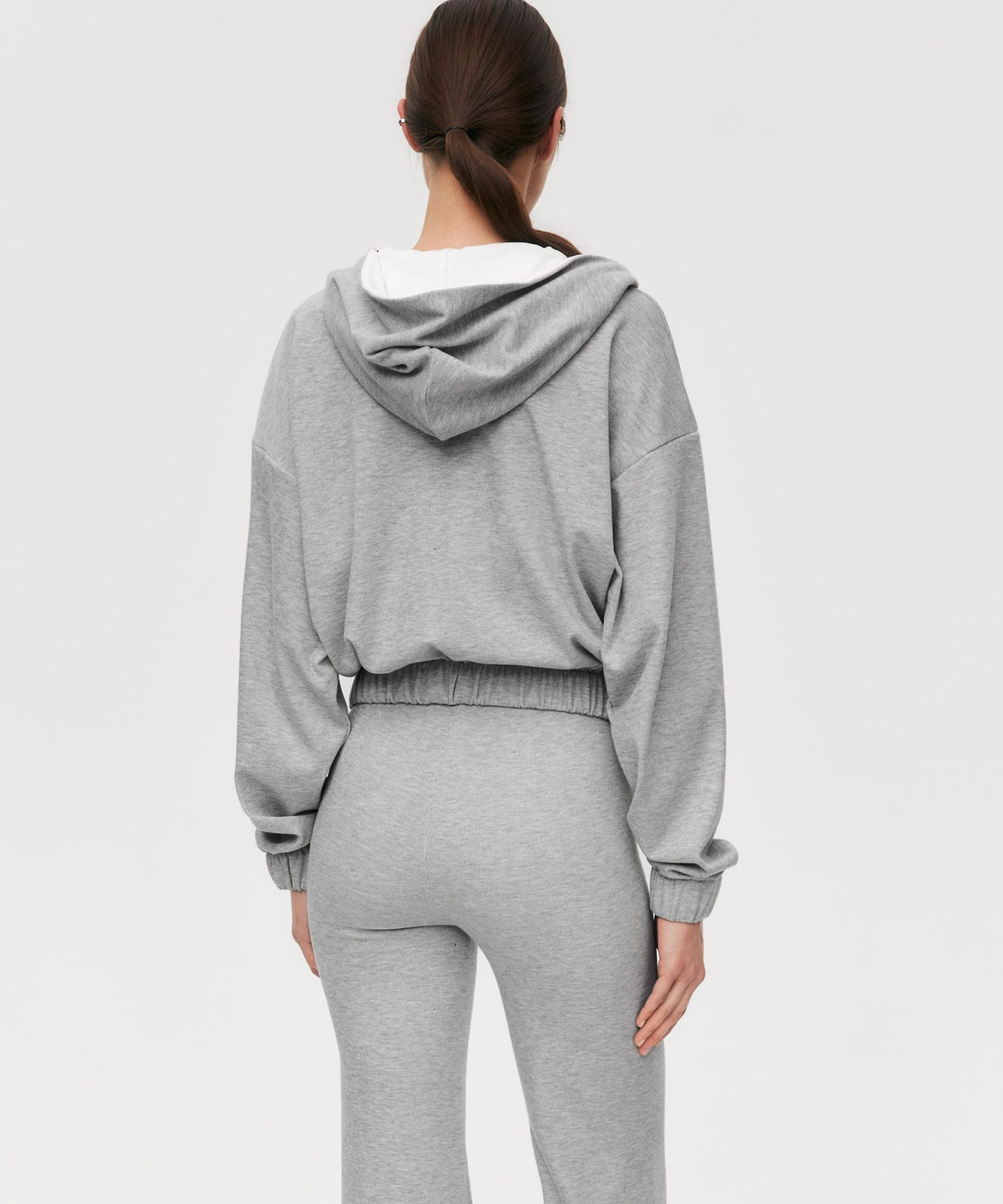 Укороченный худи на молнии свободного кроя выполнен из материала, в составе которого 67% полиэстера 25% вискозы и 8% эластана, подкладка капюшона сделана из материала с эффектом peach, за счет чего худи невероятного мягкий и комфортный. Внизу худи собран на резинку шириной 5 см, что обеспечивает отличную посадку. На капюшоне расположен лаконичный жаккардовый флажок с логотипом бренда. Худи представлен в темно-сером цвете. Комплектом к худи в ассортименте представлены брюки W5HOM84. Отличный выбор для комфортного образа в спортивном стиле на каждый день.