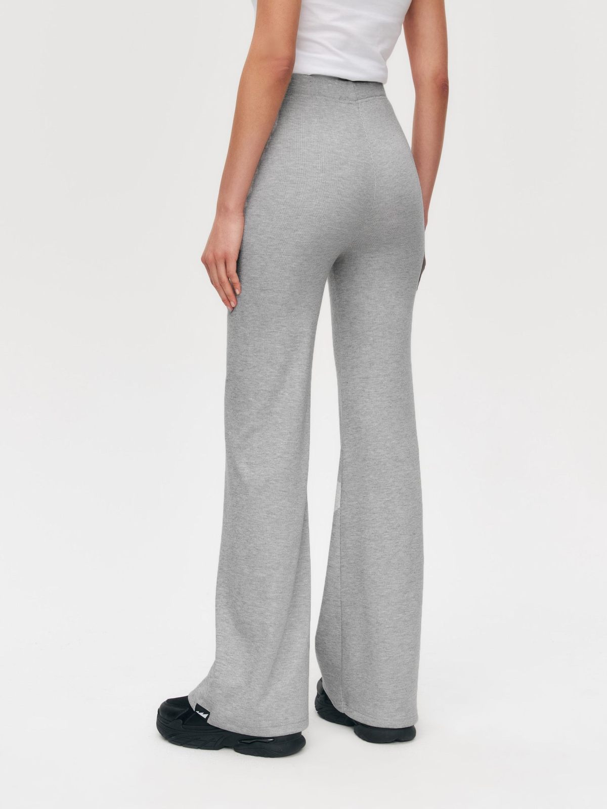 Расклешенные брюки с высокой посадкой выполнены из материала, в составе которого 67% полиэстера 25% вискозы и 8% эластана, за счет чего брюки невероятного мягкие и комфортные. На брюках внизу с левой стороны расположен лаконичный жаккардовый флажок с логотипом бренда. Брюки представлены в темно-сером цвете. Комплектом к брюкам в ассортименте имеется худи W5HOM34. Отличный выбор для комфортного образа в спортивном стиле на каждый день.