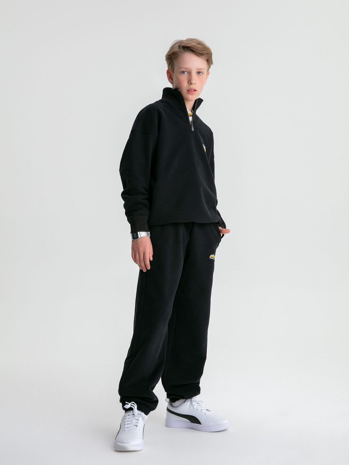 Детские брюки-джоггеры "Рони" из коллеции Legendary Drop, вдохновленной эпохой Y2K, выполнены из материала с эффектом peach, в составе которого 90% хлопка 10% полиэстера, за счет чего обеспечивают отличную посадку и долговечность изделия, а так же невероятно мягкие и приятные на ощупь. Брюки имеют свободный крой. На поясе есть хлопковый шнурок в тон для регулировки посадки. Слева расположен принт с логотипом бренда.