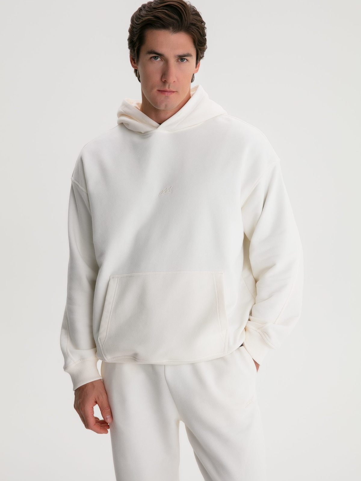 Худи "Сеул" свободного кроя из коллекции Classic выполнено из материала с эффектом peach, в состав которого входит 90% хлопка 10% полиэстра, за счет чего худи отлично держит форму и долговечно в носке. Материал невероятно мягкий и приятный на ощупь. Уникальный крой отлично подчеркивает любую форму плеч. Худи имеет карман-кенгуру и 3D вышивку с логотипом бренда на груди. В ассортименте к худи представлены брюки M5CLP83-ECR. Уютный мягкий костюм на прохладную летнюю погоду.