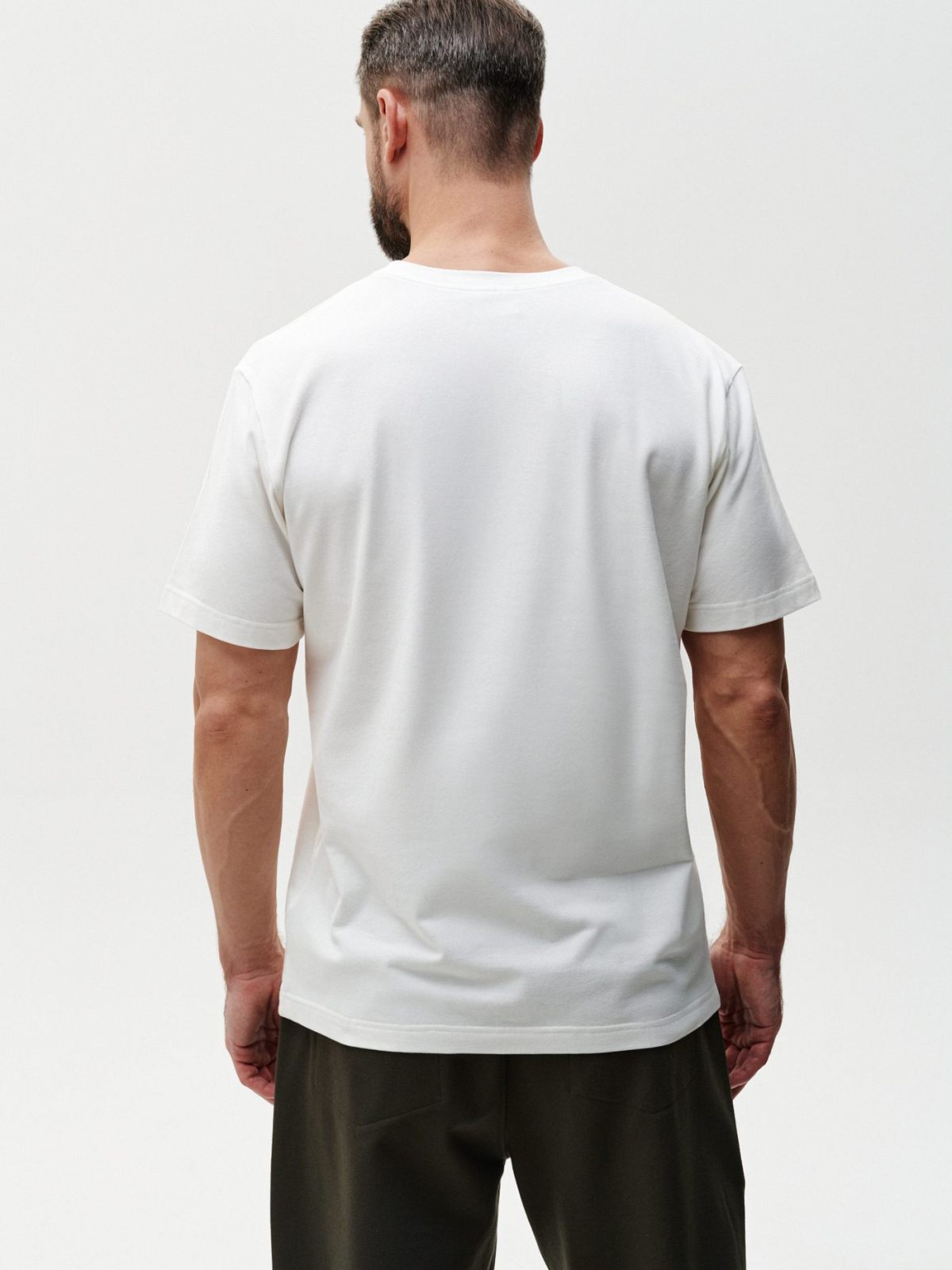 Мужская футболка классического прямого кроя выполнена из материала, в состав которого входит 92% хлопка и 8% эластана, за счет чего футболка более эластичная и лучше держит форму. На груди расположена тональная вышивка-логотип. Модель представлена в классических цветах: серый меланж, темно-синий, экрю, ваниль и черный. Футболка легко сочетается как со спортивной так и с повседневной одеждой, и является незаменимой в вашем базовом гардеробе.
