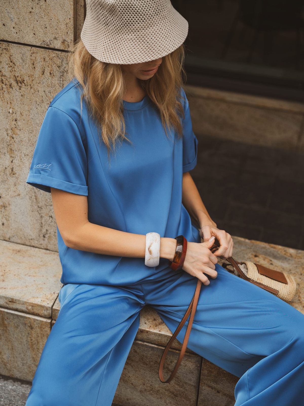 Легкая блузка с эффектом шелка из коллекции Gardenika. Материал очень приятный к телу и имеет эффект охлаждения. На правом рукаве расположена лаконичная тональная вышивка с логотипом бренда. К блузке в ассортименте представлены брюки W3GN84. Костюм отлично подойдет на жаркую летнюю погоду.