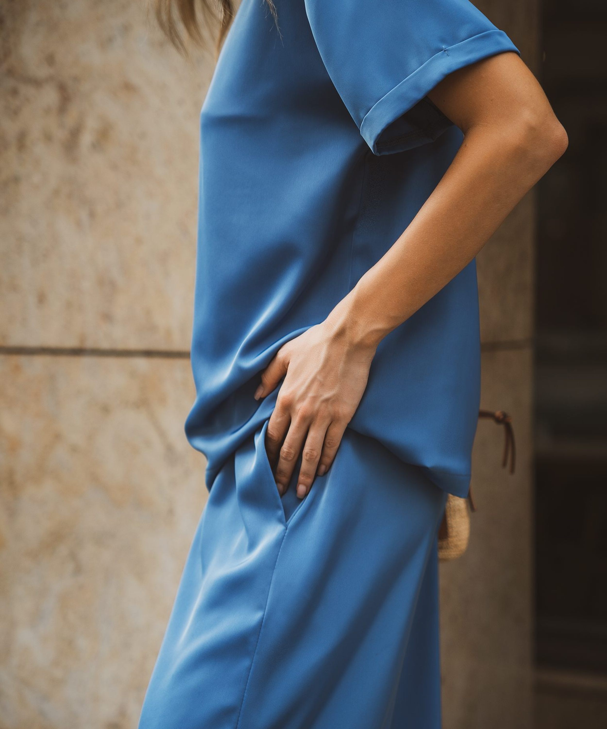 Легкие широкие брюки с эффектом шелка из коллекции Gardenika. Материал очень приятный к телу и имеет эффект охлаждения. К брюкам в ассортименте представлена блузка W3GN55. Костюм отлично подойдет на жаркую летнюю погоду.