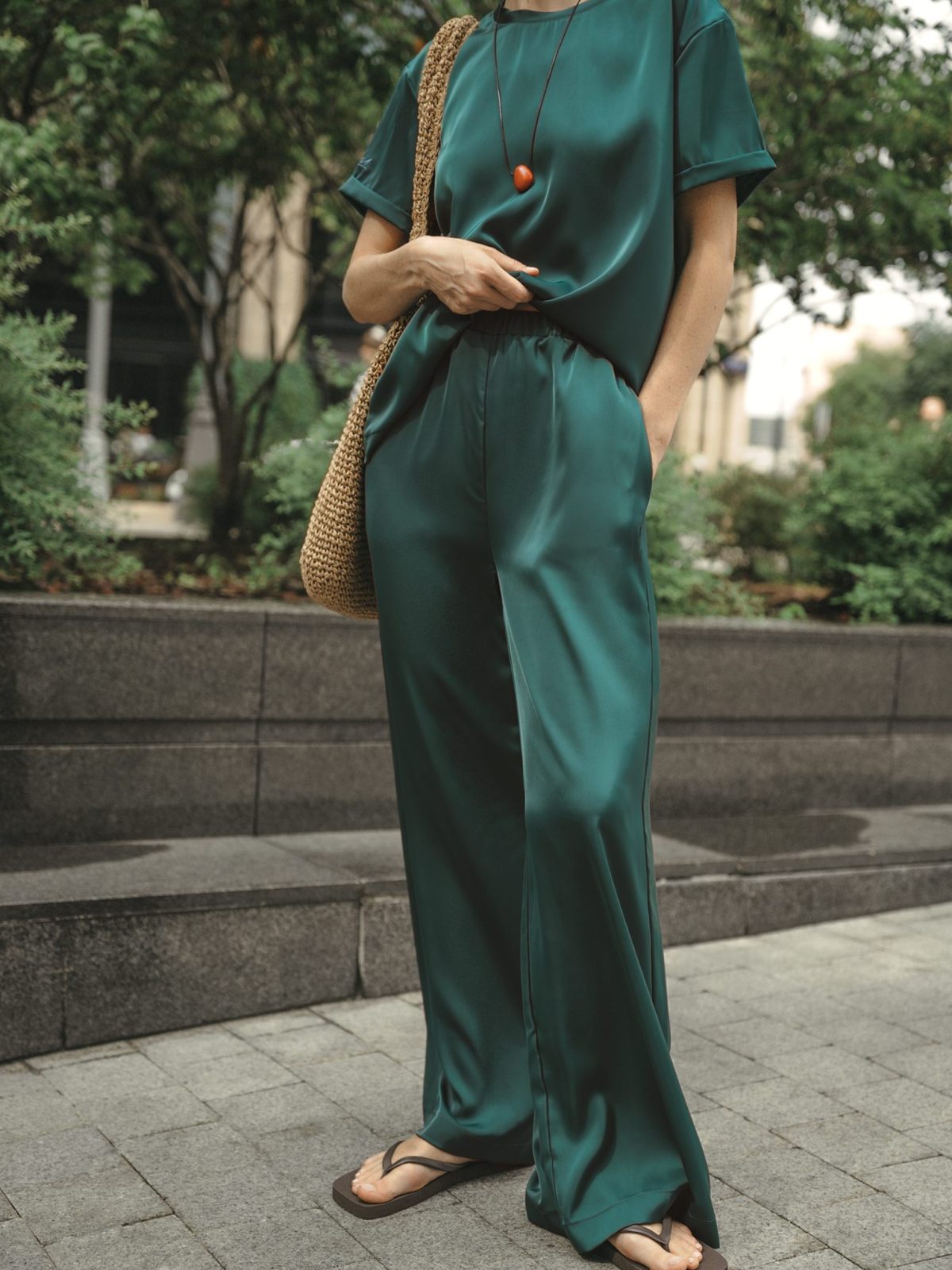 Легкие широкие брюки с эффектом шелка из коллекции Gardenika. Материал очень приятный к телу и имеет эффект охлаждения. К брюкам в ассортименте представлена блузка W3GN55. Костюм отлично подойдет на жаркую летнюю погоду.