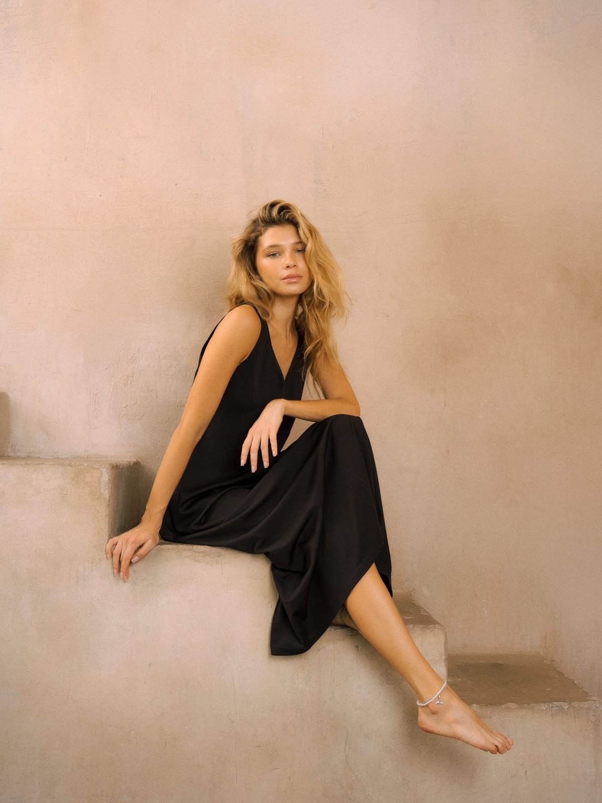 Платье-макси "Ветер" свободного кроя из коллекции Pure выполнено из материала, в составе которого 60% вискозы, 31% нейлона и 9% спандекса. Материал легкий, приятный к телу, отлично подходит на летнюю погоду. V-вырез и широкие лямки отлично подчеркивают плечи и зону декольте. Крой платья расширяется от талии к низу, что делает юбку летящей. Хорошо сочетается как с кардиганами, так и с толстовками и джемперами.