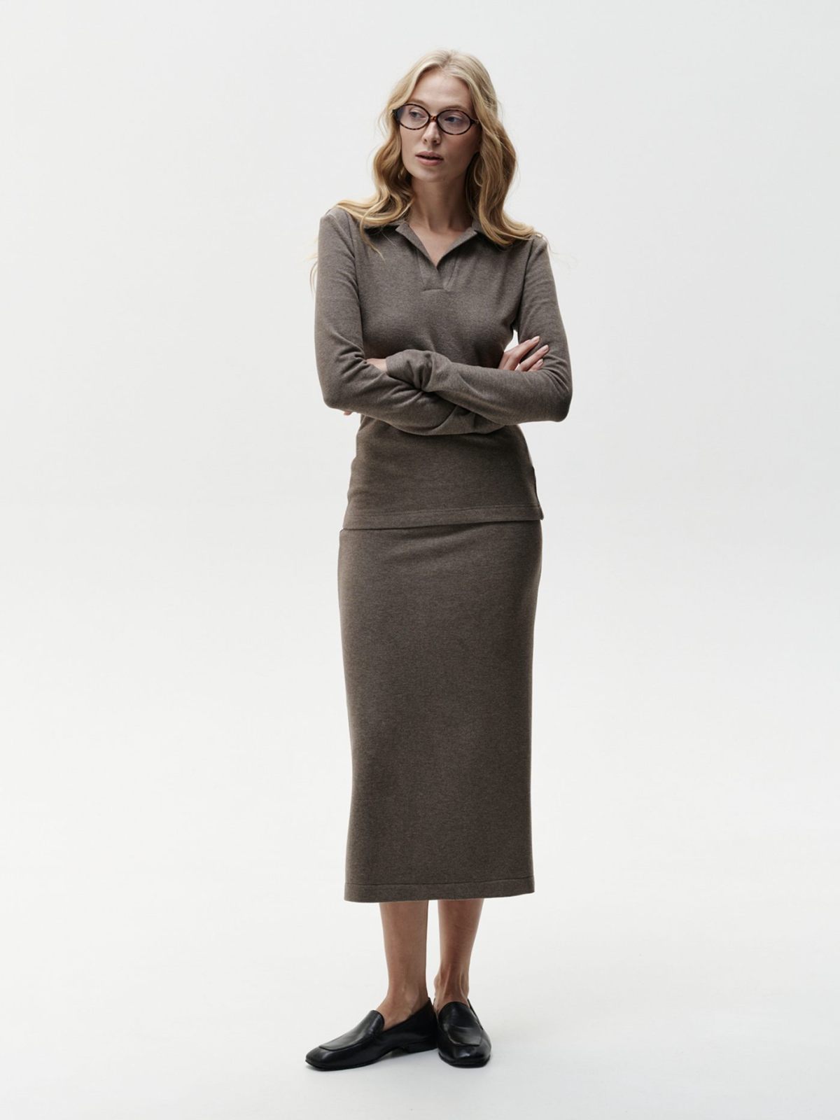 Удлиненная юбка-карандаш "Габриэль" из коллекции Office Core выполнена из мягкого материала с вискозой и хлопком. Материал очень приятный к телу. Сзади имеется лаконичный разрез, что добавляет комфорта при ходьбе. В комплекте к юбке в ассортименте представлен лонгслив-поло 1W2OC48E1-25CAP68. Улавливая тренды этой осени, мы создали удобный костюм в стиле Office Core, который можно сочетать с разной обувью и пиджаками oversize. В костюме "Габриэль" можно пойти в офис, сочетая его с туфлями, а после работы, сменив обувь на кеды, встретиться с подругой в кафе и при этом оставаться в тренде и комфорте.